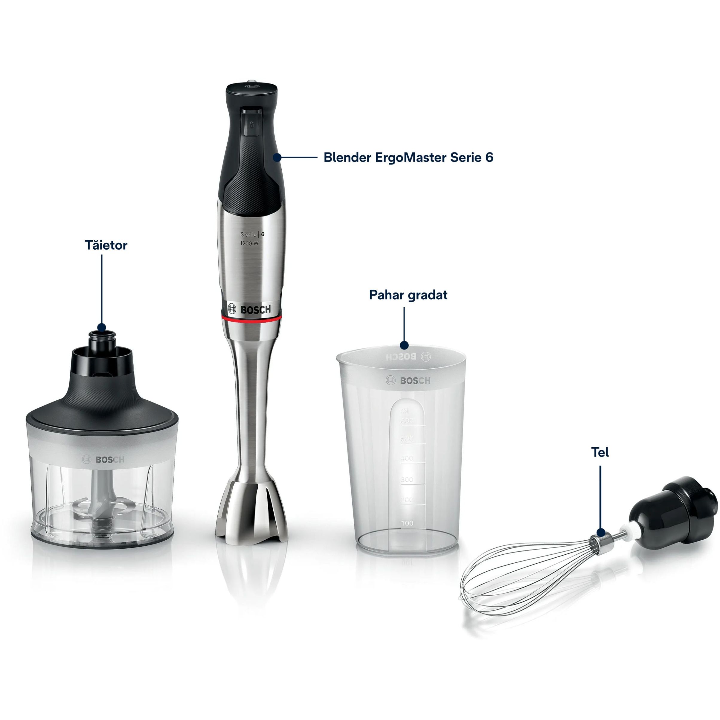 - Cuțit cu 4 lame și AntiSplash (previne stopirea accidentală)