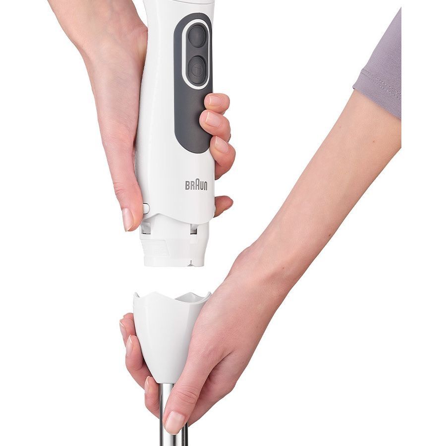 Bucurati-va de texturi cremoase si mixare fara efort pana si a celor mai dure ingrediente. Acest mixer vertical este dotat cu tehnologia Powerbell Plus, conceputa cu o lama de frezare suplimentara pentru o extra taietura per rotatie, care amesteca si paseaza alimente intregi in cateva secunde, rezultand o textura cremoasa si super fina. Sistemul EasyClick patentat va permite sa faceti clic pur si simplu pentru a va bucura de mai multa versatilitate in timp ce gatiti. Doua butoane, o singura miscare pentru schimbarea rapida si usoara a tuturor accesoriilor. Designul sau ergonomic si butoanele mai mari permit o indepartare mai usoara a accesoriului, care poate fi pus in masina de spalat vase.