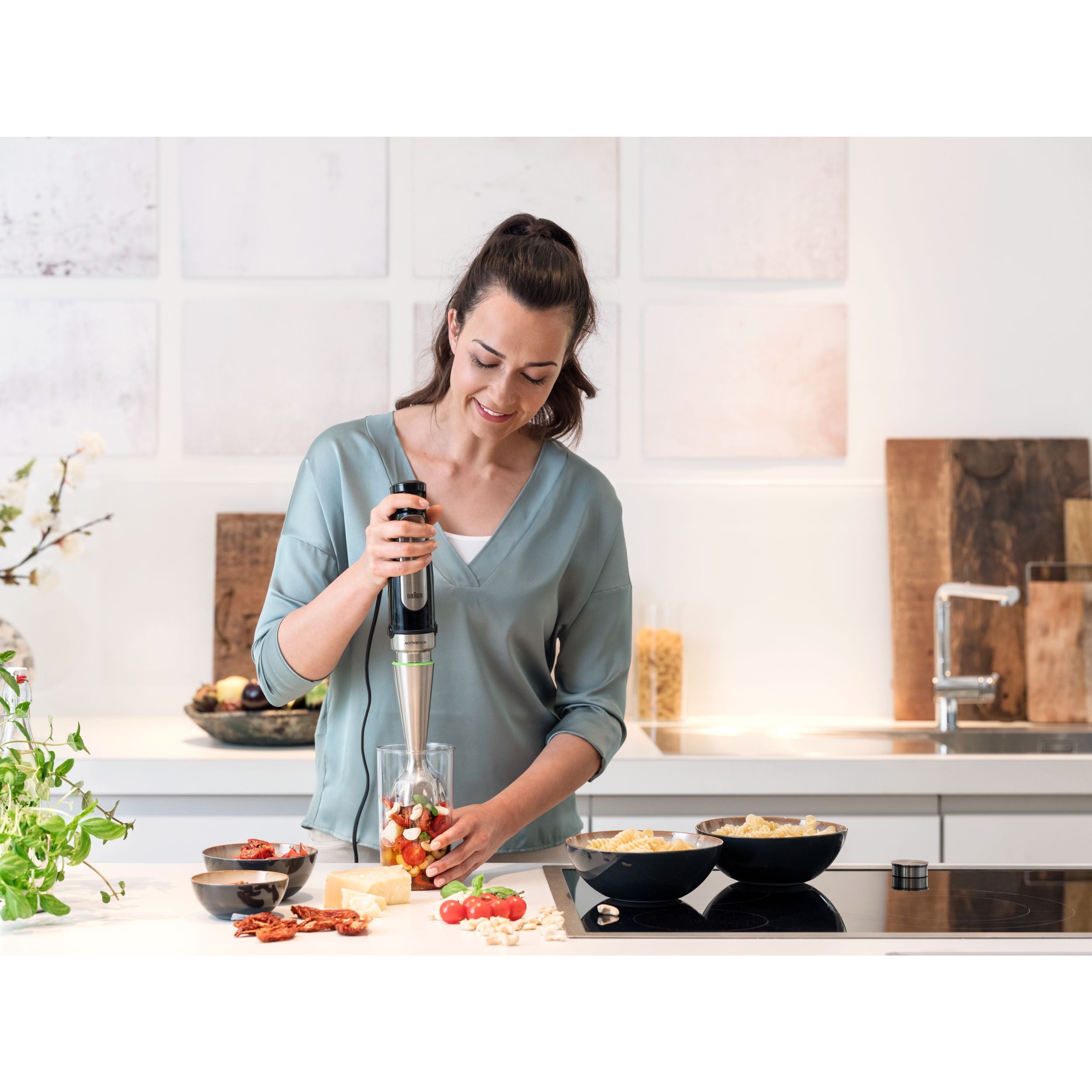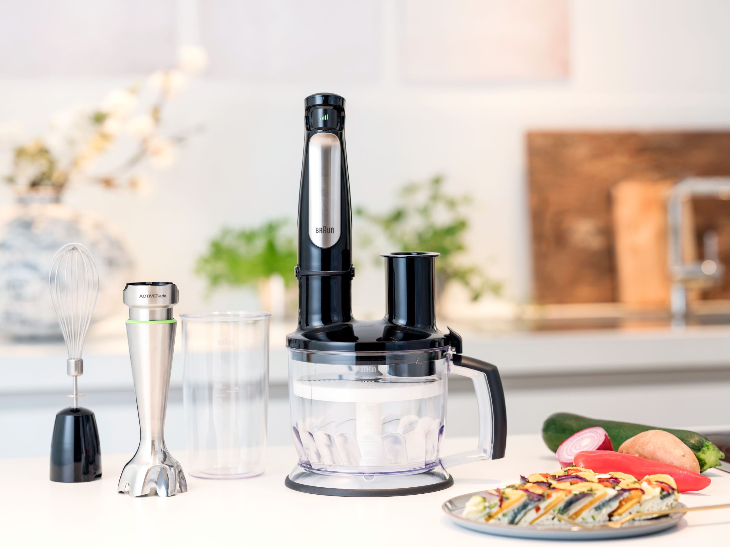 Toacă fără efort nuci, ghimbir sau alte ingrediente dificil de mărunțit,datorită sistemului unic BRAUN ActiveBlade, care se deplasează în sus și în jos. Axul inovator vă oferă o suprafață de tăiere cu 250% mai activă.*