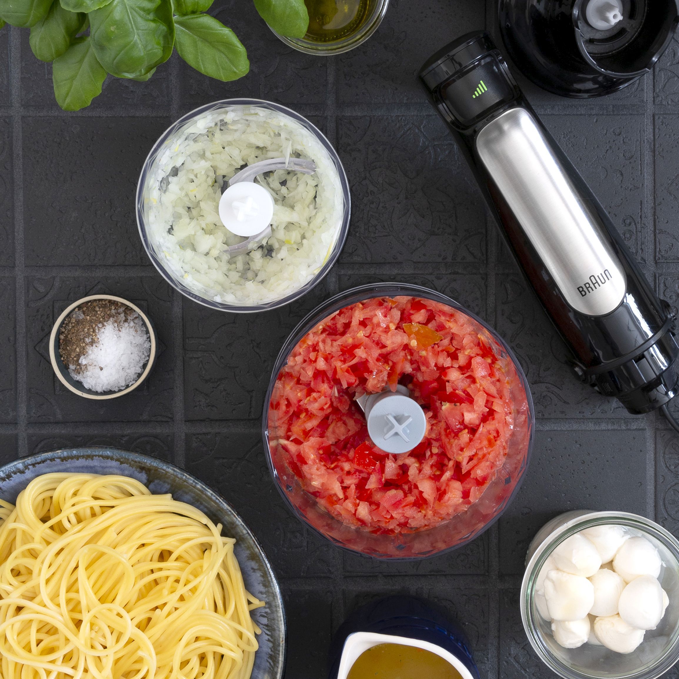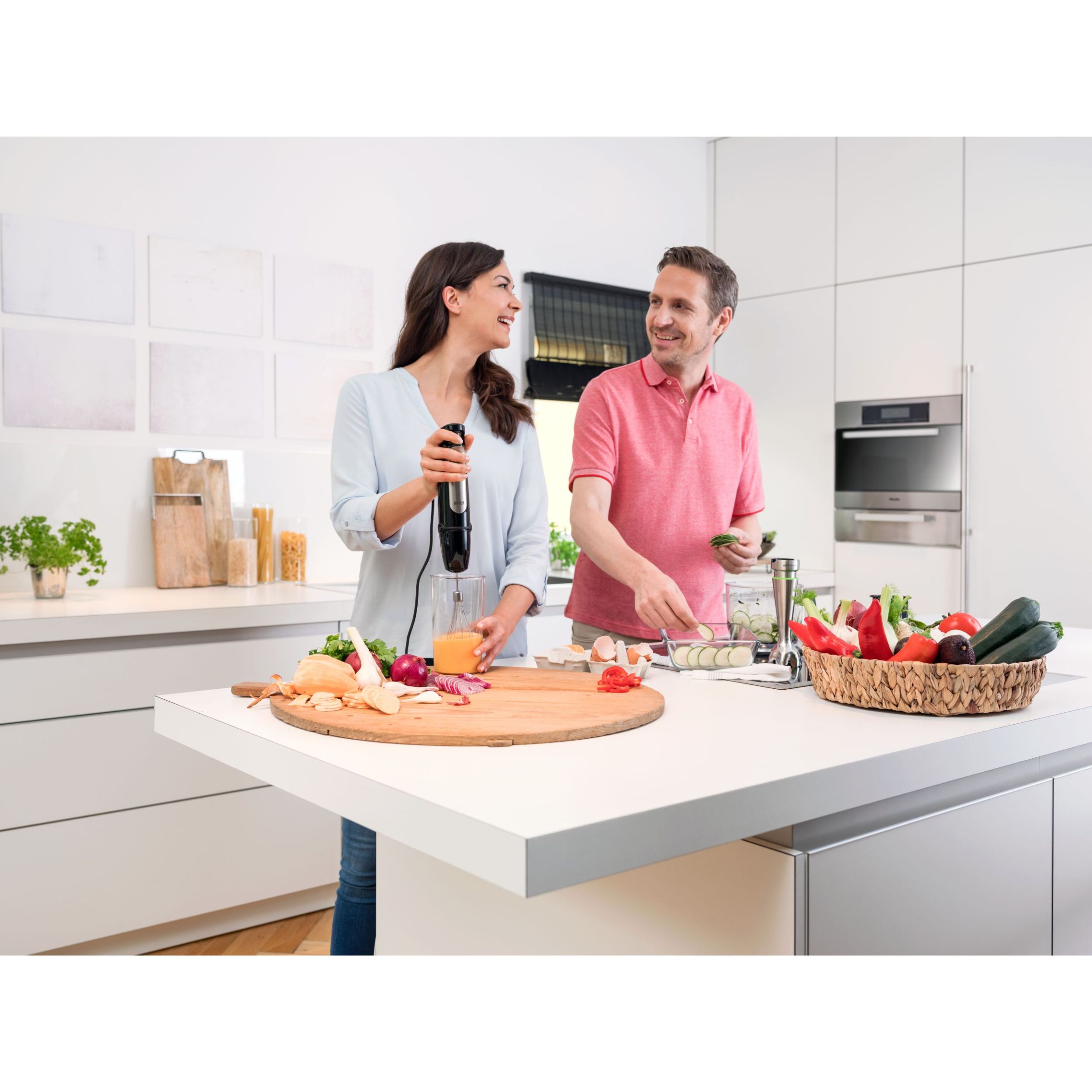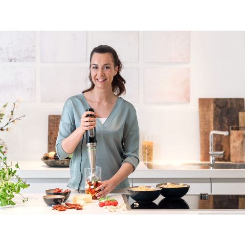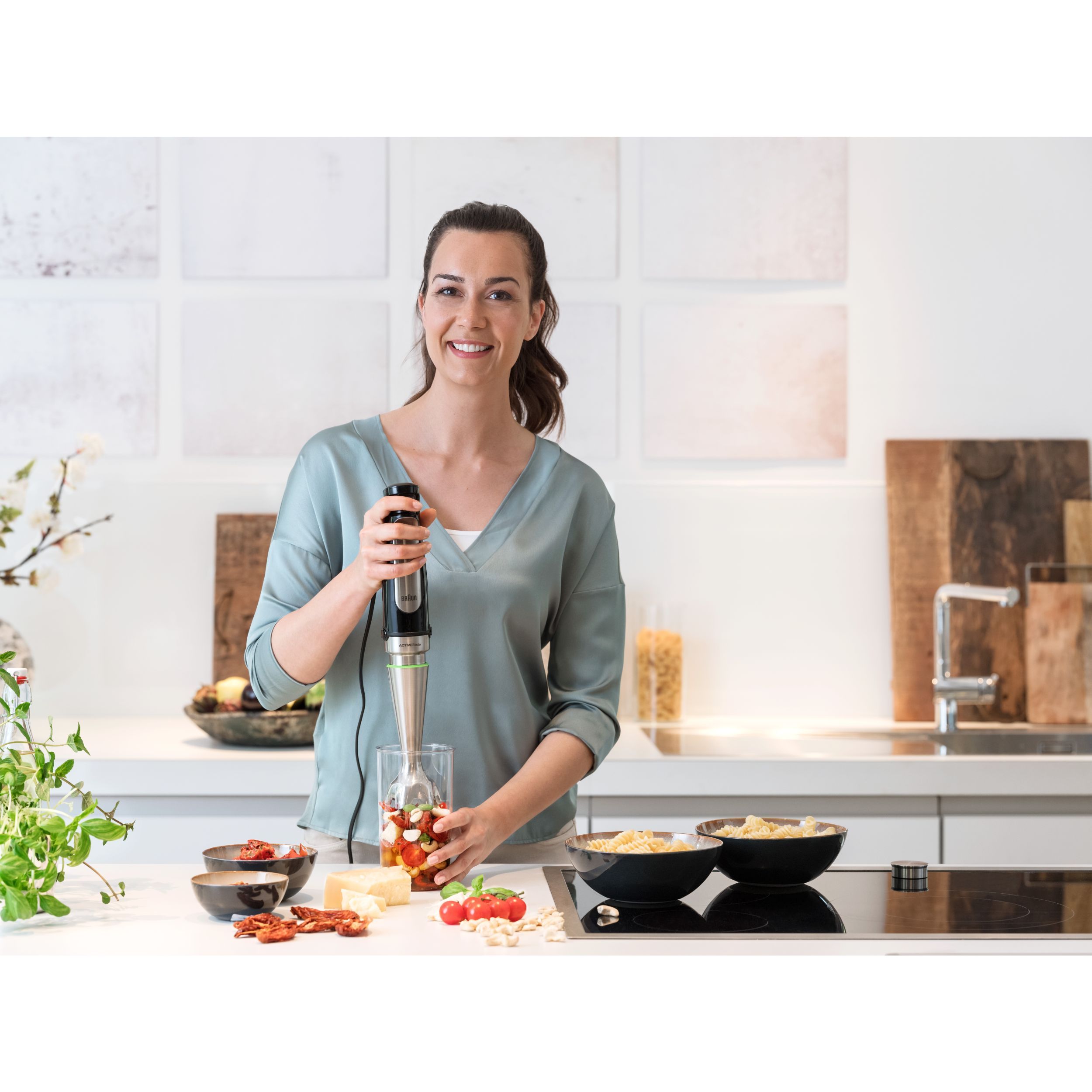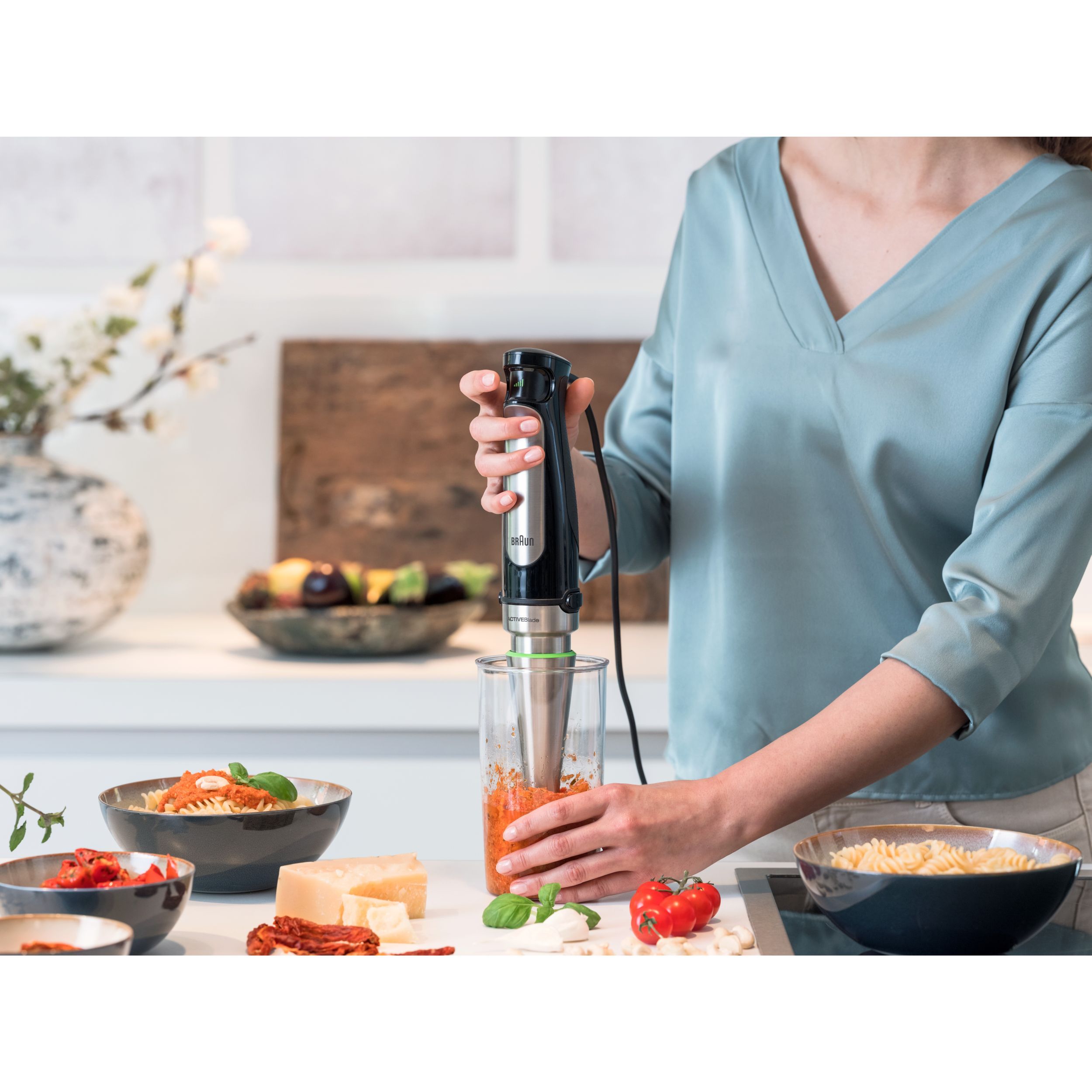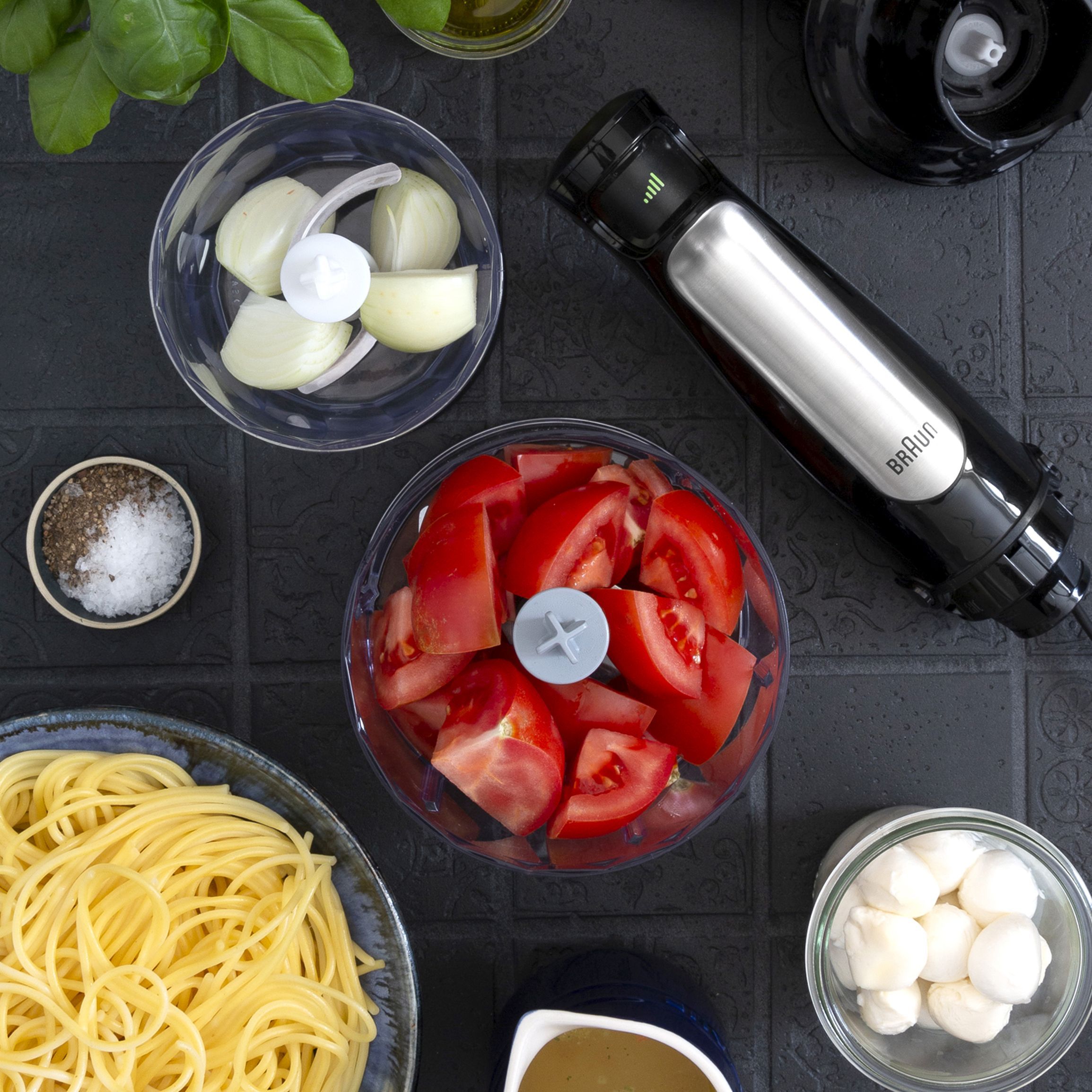 Toacă fără efort nuci, ghimbir sau alte ingrediente dificil de mărunțit,datorită sistemului unic BRAUN ActiveBlade, care se deplasează în sus și în jos. Axul inovator vă oferă o suprafață de tăiere cu 250% mai activă.*