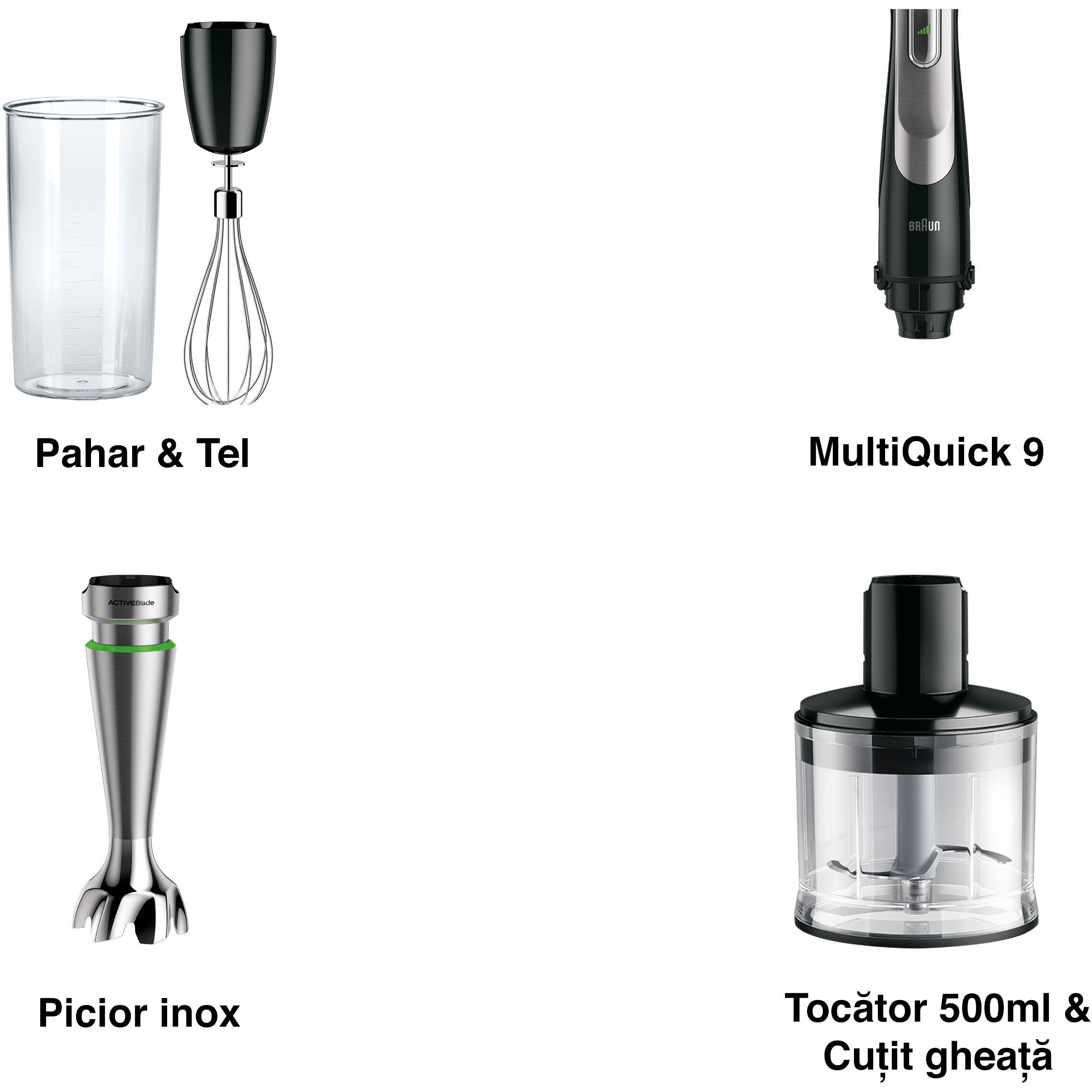 Blender de mână BRAUN MultiQuick 9 MQ9147X, 1000~1200W (variabilă și Pulse), Lame ActiveBlade, Active PowerDrive, iMode, Advanced SmartSpeed, SplashControl, Cablu 1.2m, Premium Black