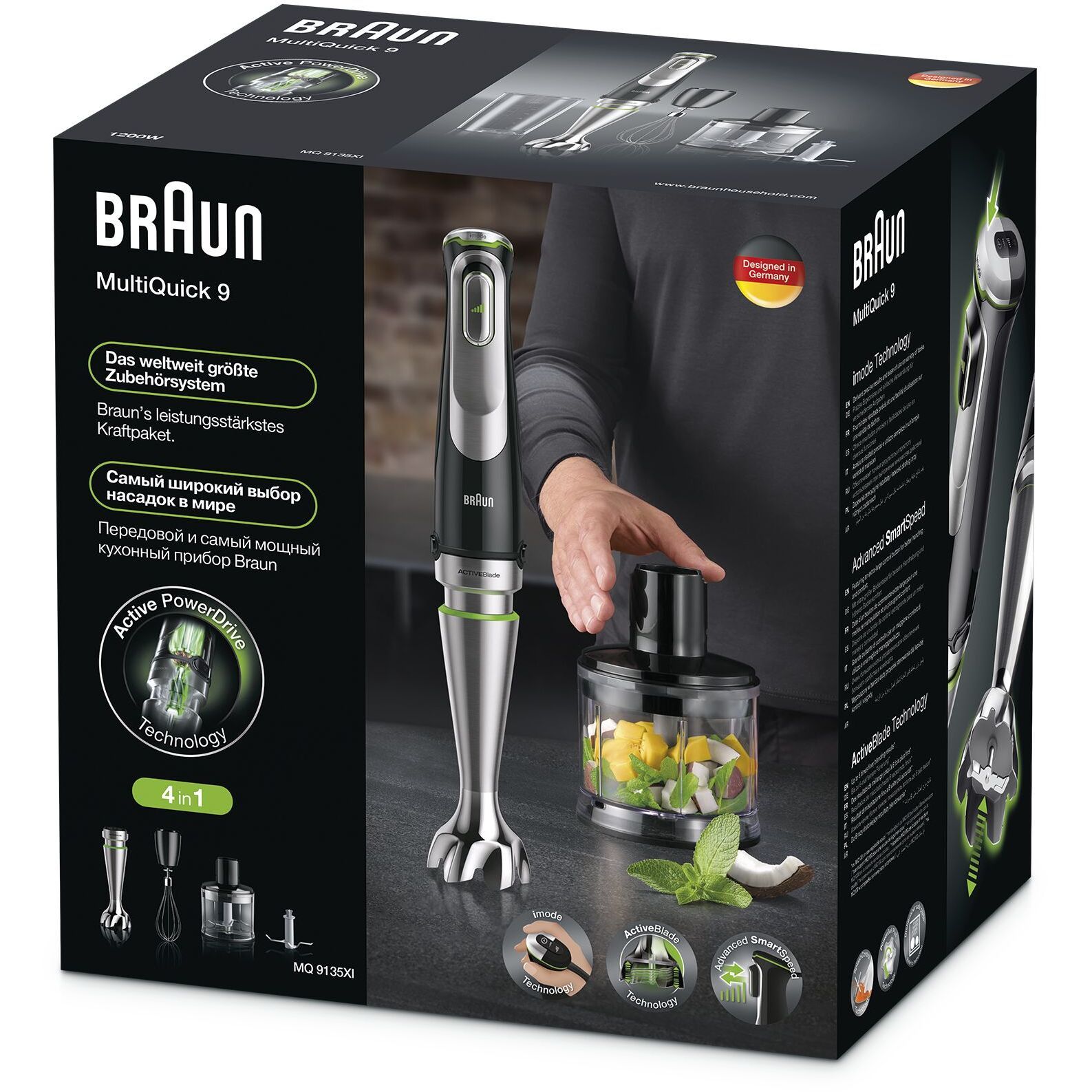 Blender de mână BRAUN MultiQuick 9 MQ9135XI, 1000~1200W (variabilă și Pulse), Lame ActiveBlade, Active PowerDrive, iMode, Advanced SmartSpeed, SplashControl, Cablu 1.2m, Premium Black