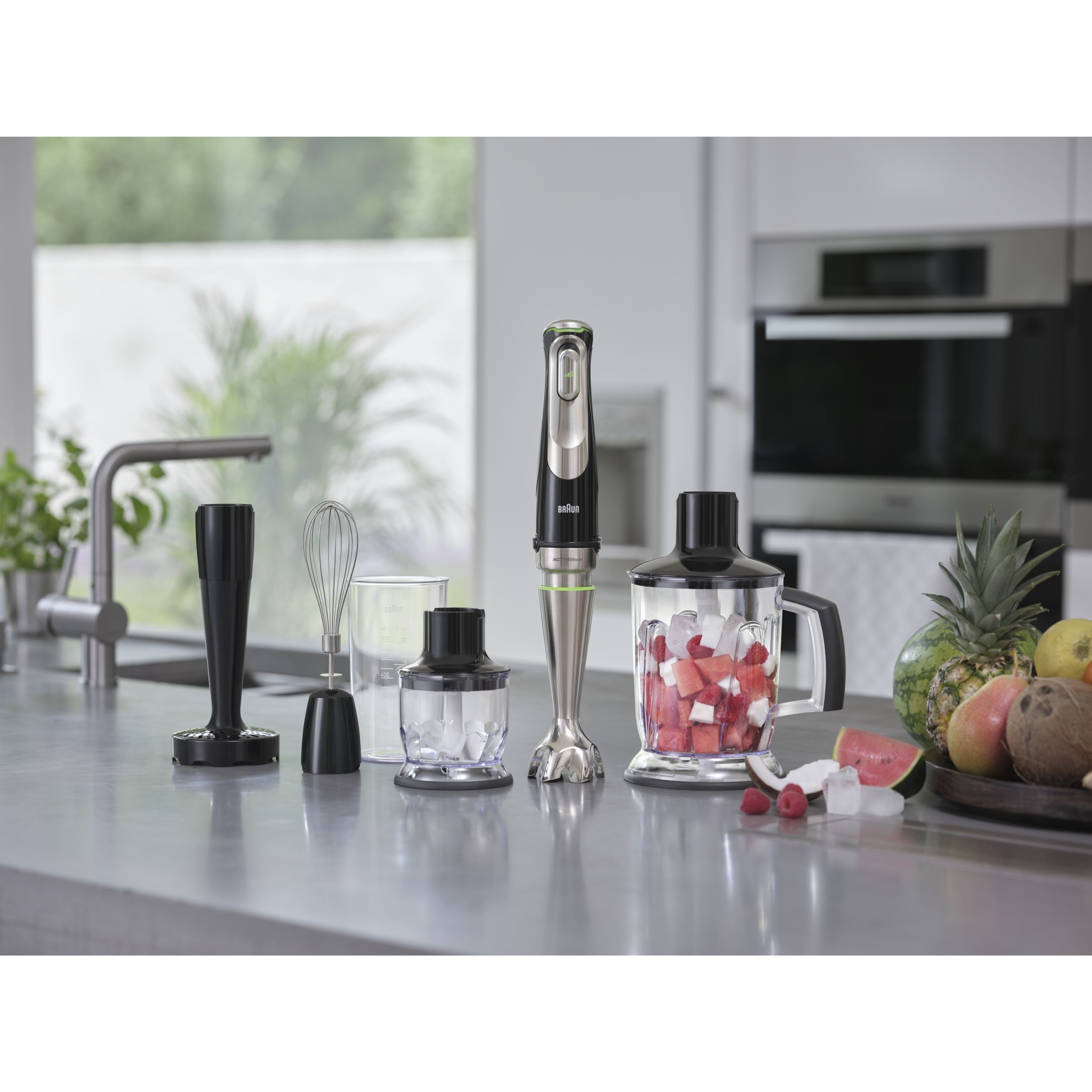 Blender de mână BRAUN MultiQuick 9 MQ9195XLI - 0X22111581, 1000~1200W (variabilă, Pulse), Lame ActiveBlade, Active PowerDrive, iMode, Advanced SmartSpeed, SplashControl, Cube Cutter 9mm, C1.2m, Premium Black