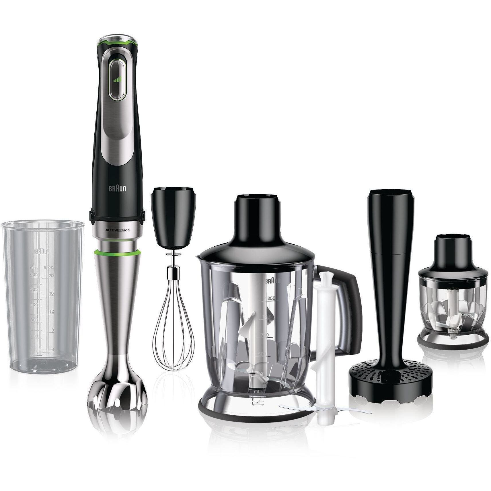 Blender de mână BRAUN MultiQuick 9 MQ9138XI - 0X22111379, 1000~1200W (variabilă și Pulse), Lame ActiveBlade, Active PowerDrive, iMode, Advanced SmartSpeed, SplashControl, Cablu 1.2m, Premium Black