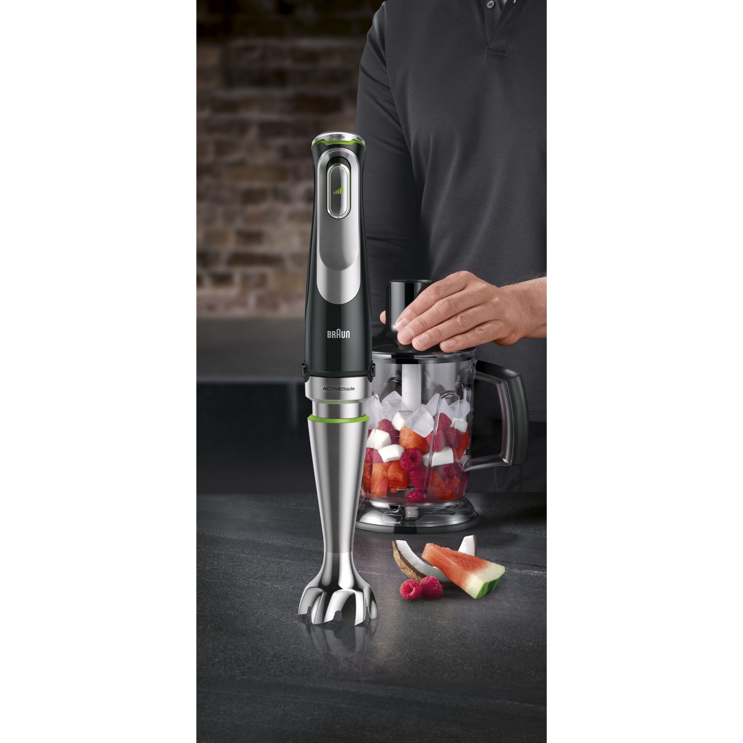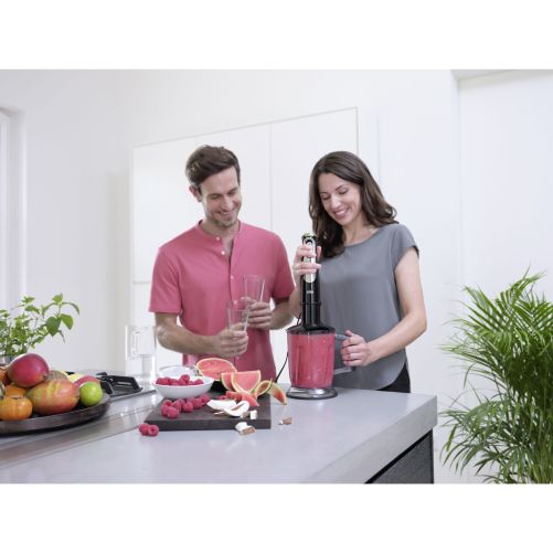 Vă prezentăm caracteristici noi, de ultimă generație, precum tehnologia Active PowerDrive care are ca rezultat o performanță cu până la 60% mai rapidă* datorită motorului de 1200W și tehnologiei ActiveBlade, cu lame care se deplasează în sus și în jos pentru a transforma ușor cele mai tari ingrediente în cele mai delicioase creații culinare. Și cu noua tehnologie imode, puteți alege între 3 moduri de viteză: pulsare, scăzută și înaltă, pentru a personaliza puterea de amestecare în intervale practice de viteză adaptate tuturor activităților.