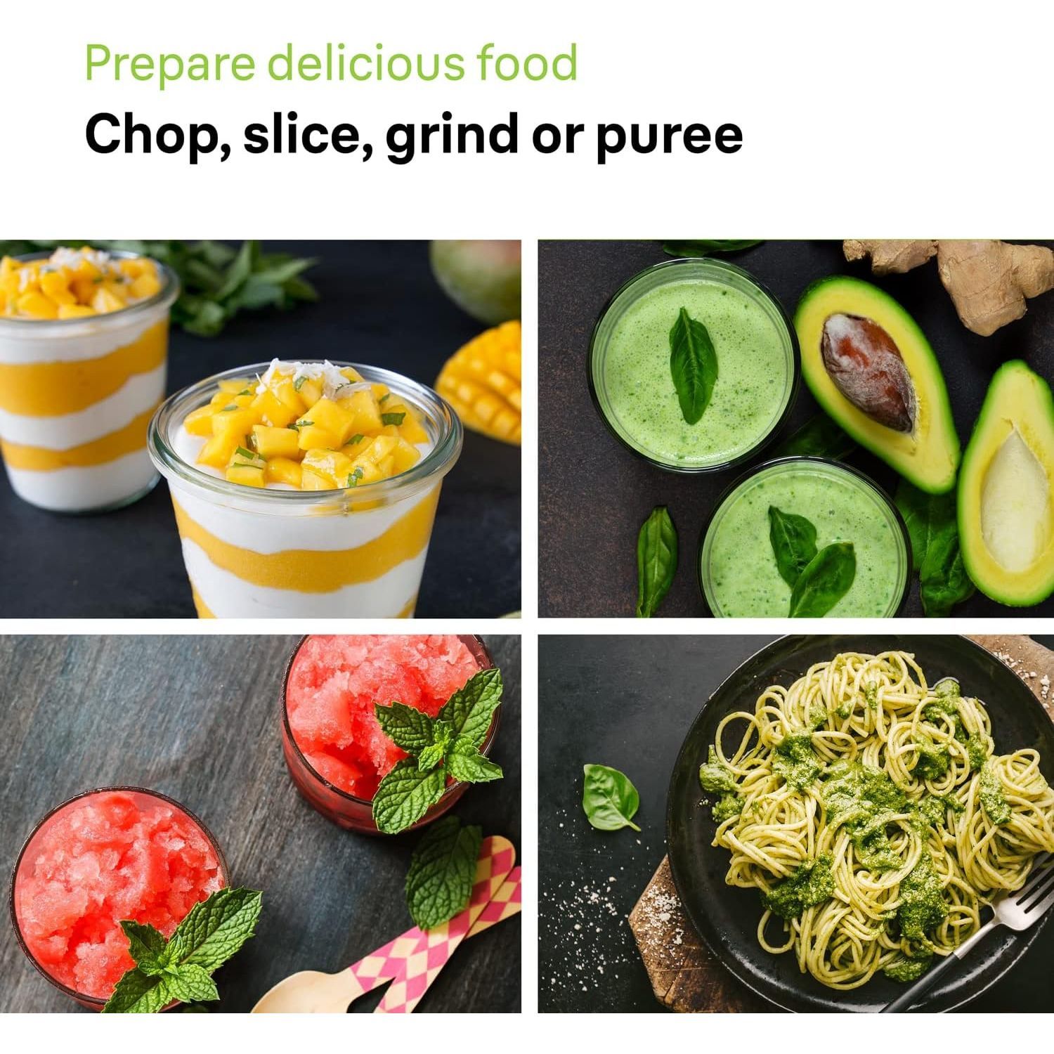 Nou și îmbunătățit, cu o performanță cu 20% mai rapidă⁷: toacă carne, brânză tare, nuci, verdeață și chiar și cuburi de gheață, în doar câteva secunde.