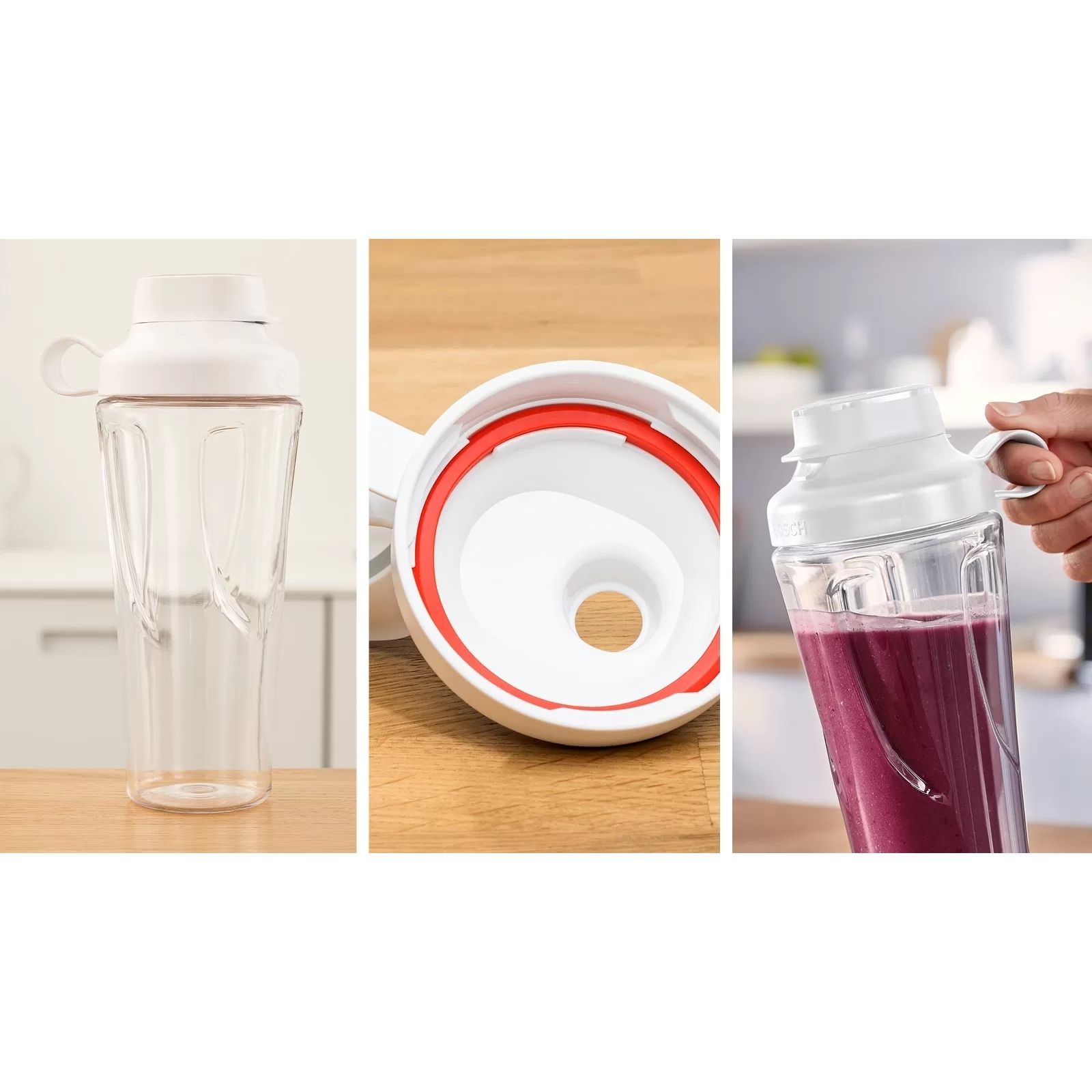 Bucură-te de calitate superioară și de o durată lungă de funcționare datorită celor peste 100 de ore de testare echivalente cu prepararea a 10.000 de căni de smoothie. Performanța constantă este asigurată de materialele de calitate superioară, de producția in Europa și de îndelungata expertiză Bosch, pasează direct în sticla ToGo cu protecție antiscurgere și ia smoothie-ul cu tine oriunde mergi.