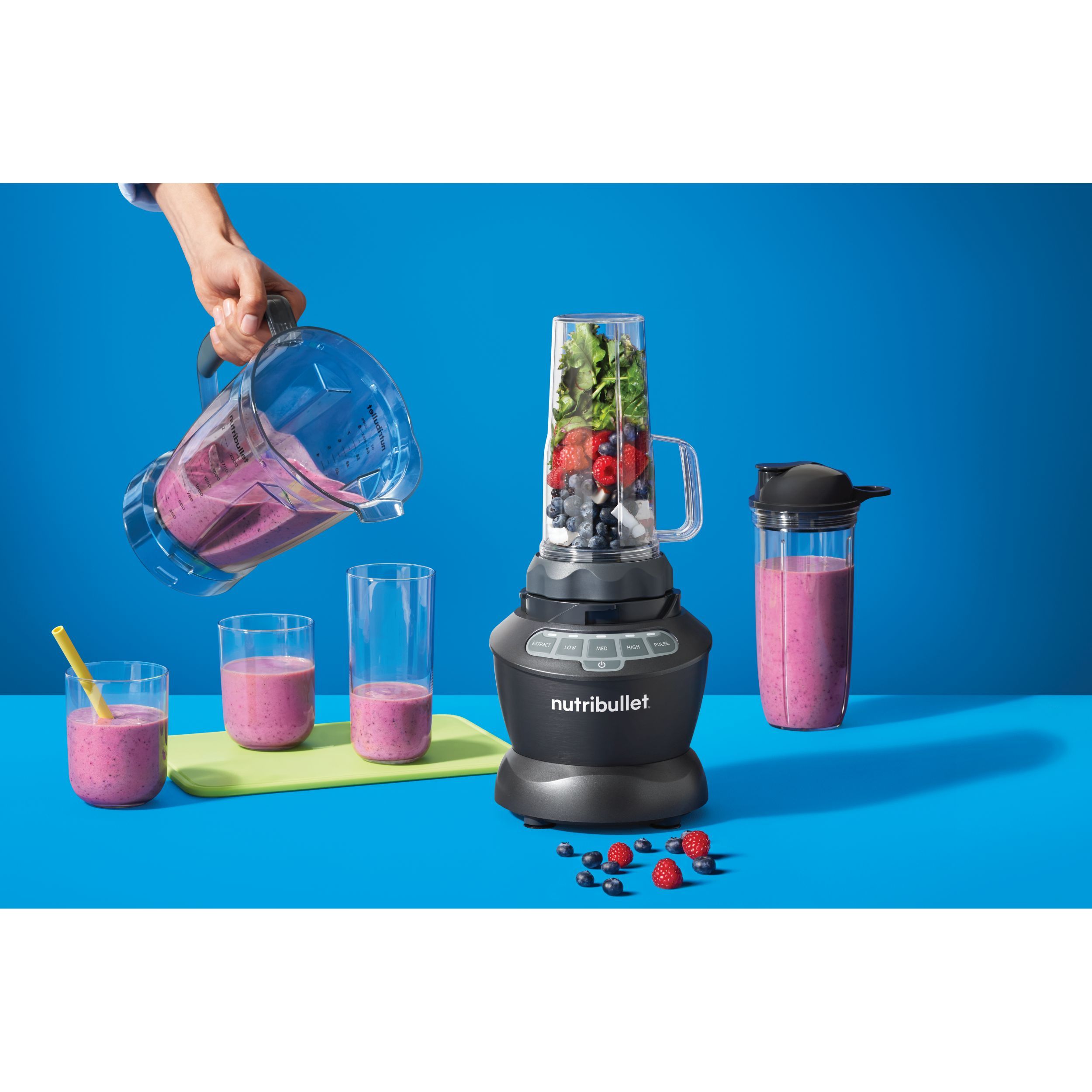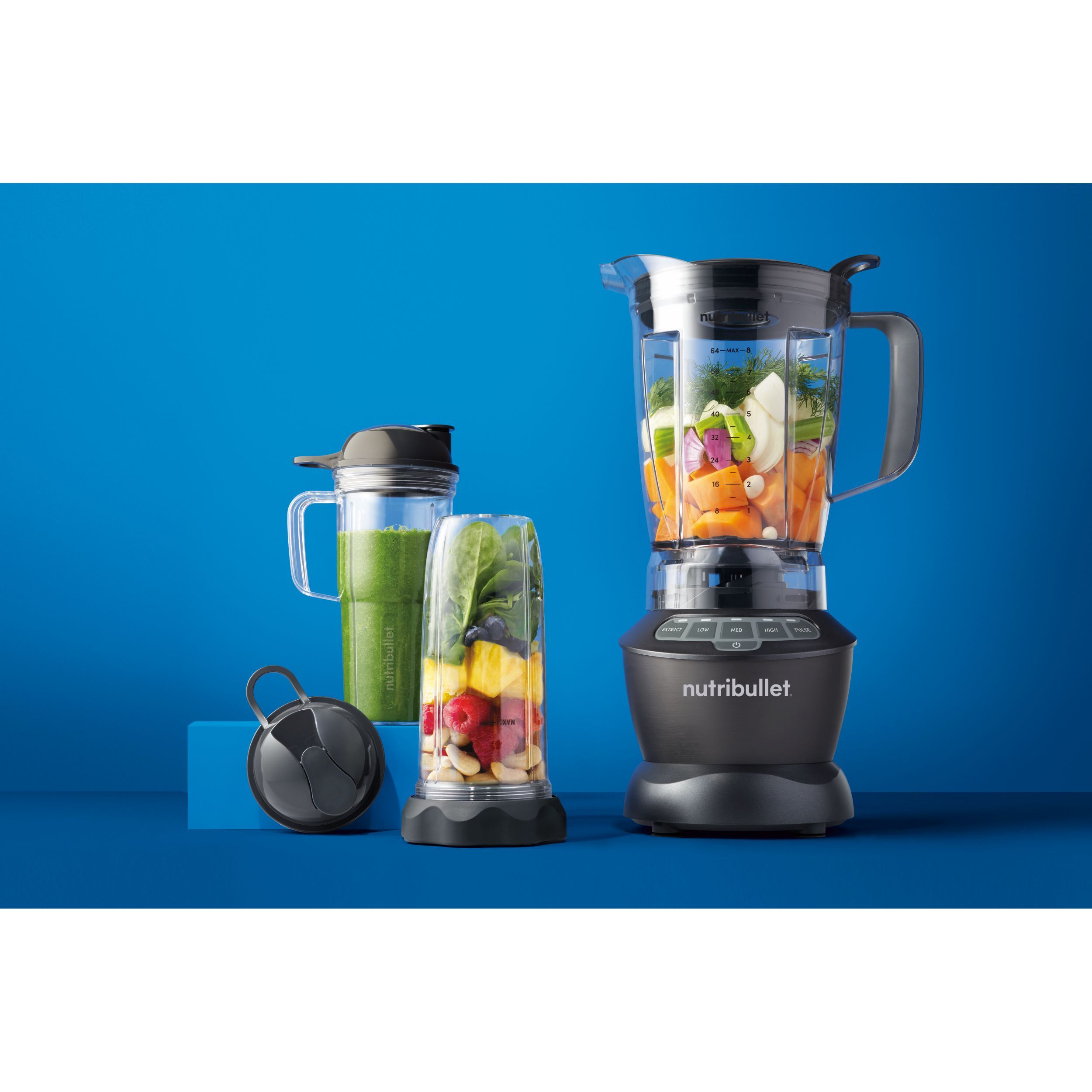 Încăpător și ușor de curățat, performant, cu un design liniar și un motor de 1200W, nutribullet Blender Combo este un blender versatil care poate pregăti totul, de la smoothie-uri simple la supe gustoase și multe altele. Se adaptează cantităților dumneavoastră datorită carafei de 1.8 litri pentru capacități mari și cănilor sale pentru utilizare individuală. Blenderul nutribullet garantează precizie maximă și posibilități excelente de control: amestecați la viteze diferite, extrageți nutrienții și folosiți rezistența la căldură pentru a pregăti o gamă variată de rețete. În plus, are inclusă o selecție de accesorii pentru a vă duce experiența nutribullet la următorul nivel. Include:
