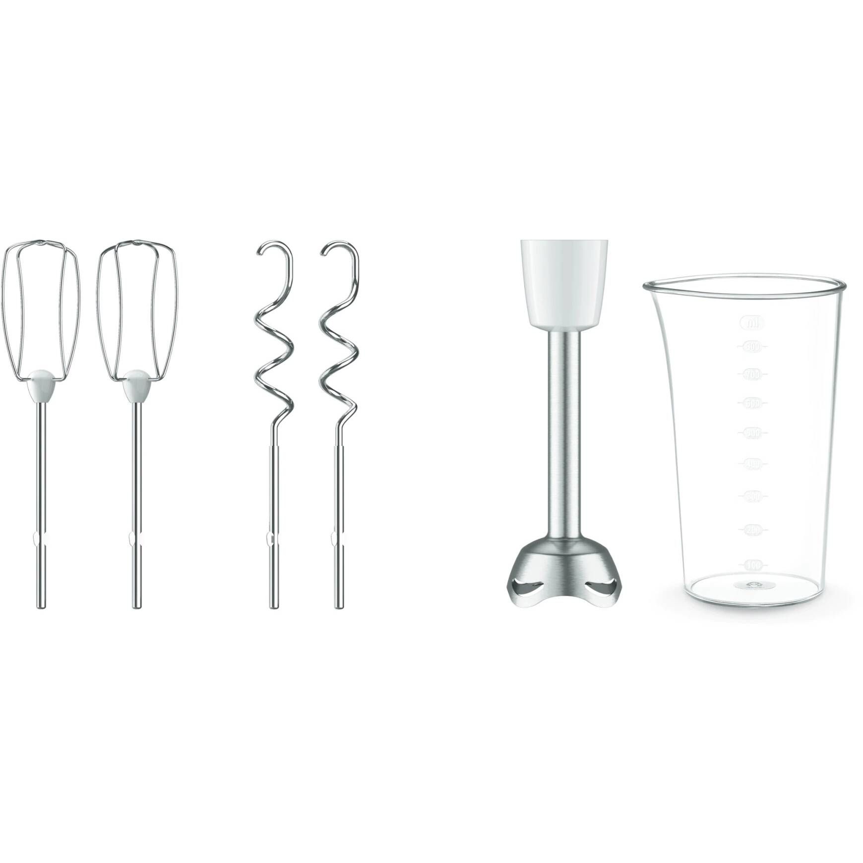 2 x Tel; 1 x Pahar gradat; 1 x Picior pasator; 2 x Carlig aluat; 1 x Mixer de mână. |