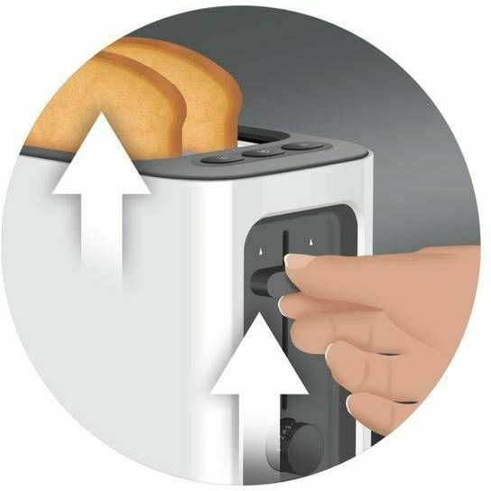 Datorită sistemului de ridicare aferent prăjitorului, puteți scoate în siguranță feliile de pâine din aparat.