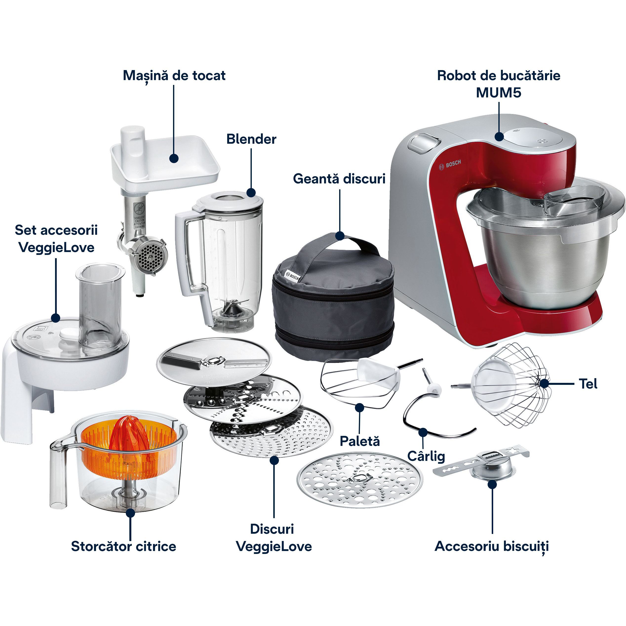 Fiecare are anumite preferințe în ceea ce privește pregătirea diferitelor compoziții. Dacă nu este deja inclus accesoriul de care ai nevoie, poți alege dintr-o gamă largă de accesorii opționale precum cel de înghețată, râșniță, accesoriu pentru fursecuri, mașină de tocat carne, Cube Cutter și altele. Bosch are accesoriile potrivite nevoilor tale.