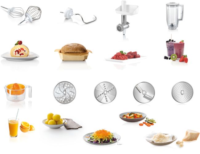 Fiecare are anumite preferințe în ceea ce privește pregătirea diferitelor compoziții. Dacă nu este deja inclus accesoriul de care ai nevoie, poți alege dintr-o gamă largă de accesorii opționale precum cel de înghețată, râșniță, accesoriu pentru fursecuri, mașină de tocat carne, Cube Cutter și altele. BOSCH are accesoriile potrivite nevoilor tale.