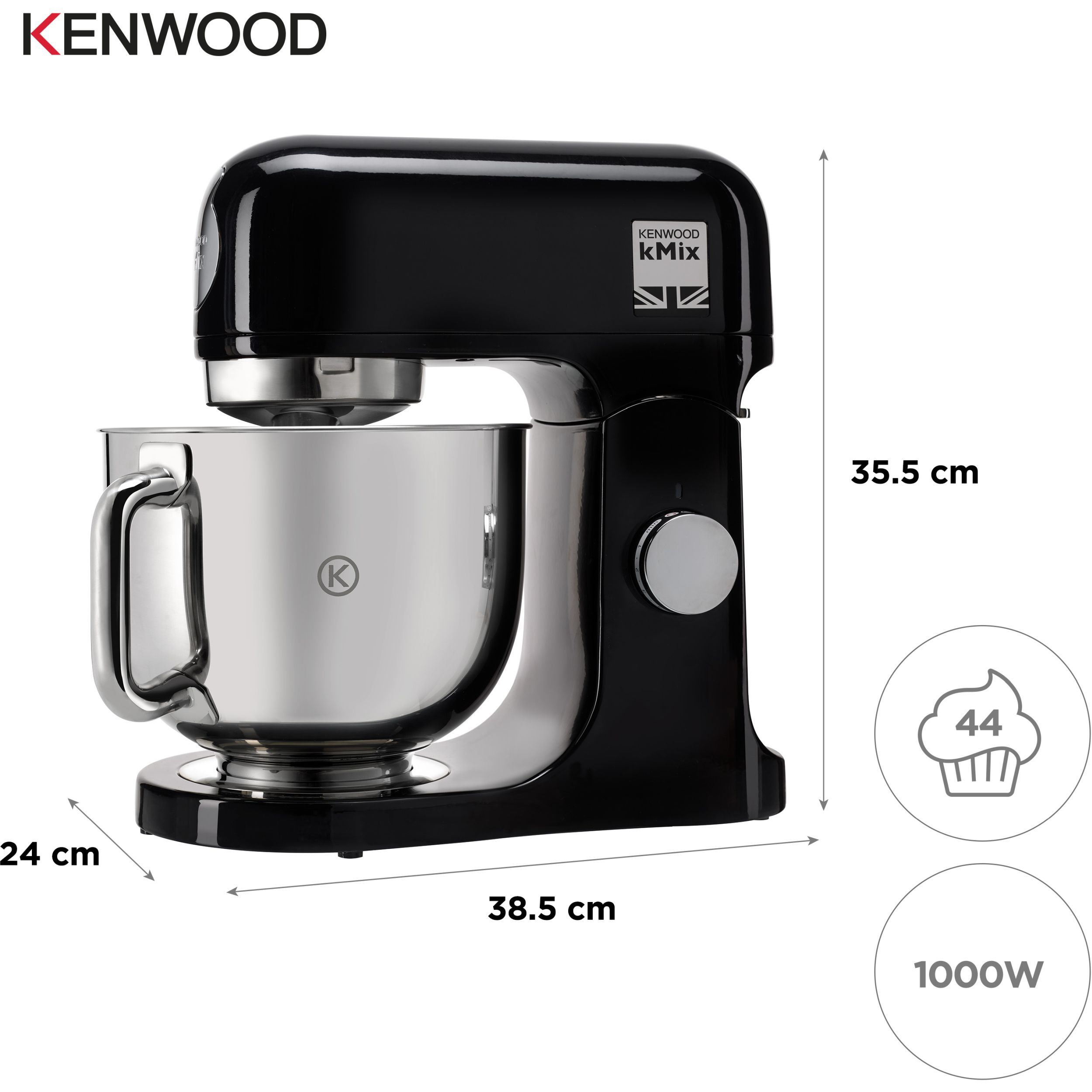 (EOL) Robot de bucătărie planetar KENWOOD kMix KMX750ABK - 0W20011421, 1000W (6 trepte și Turbo), Vas inox 5l, Set patiserie (tel 16 brațe, cârlig, paletă K), Soft Start, G9.26kg, Rich Black