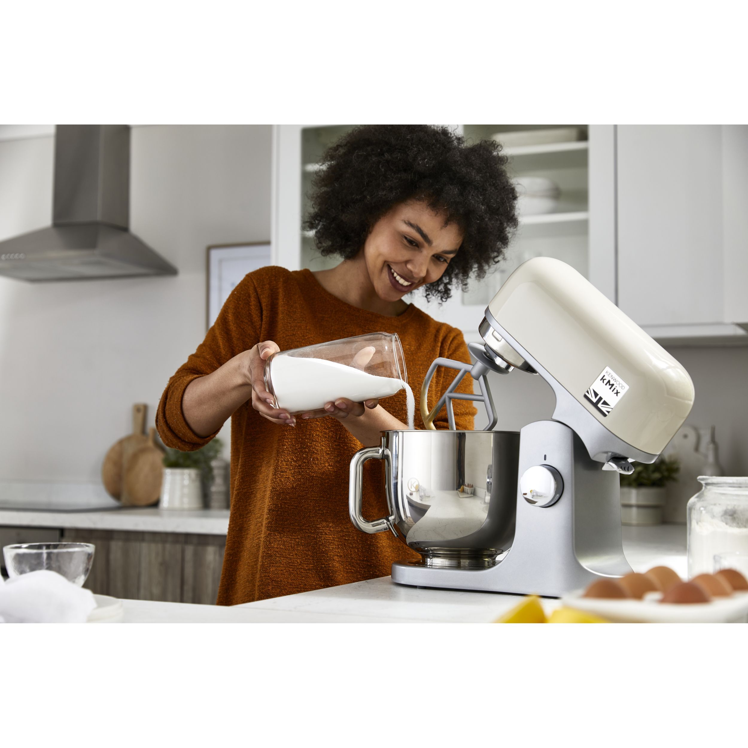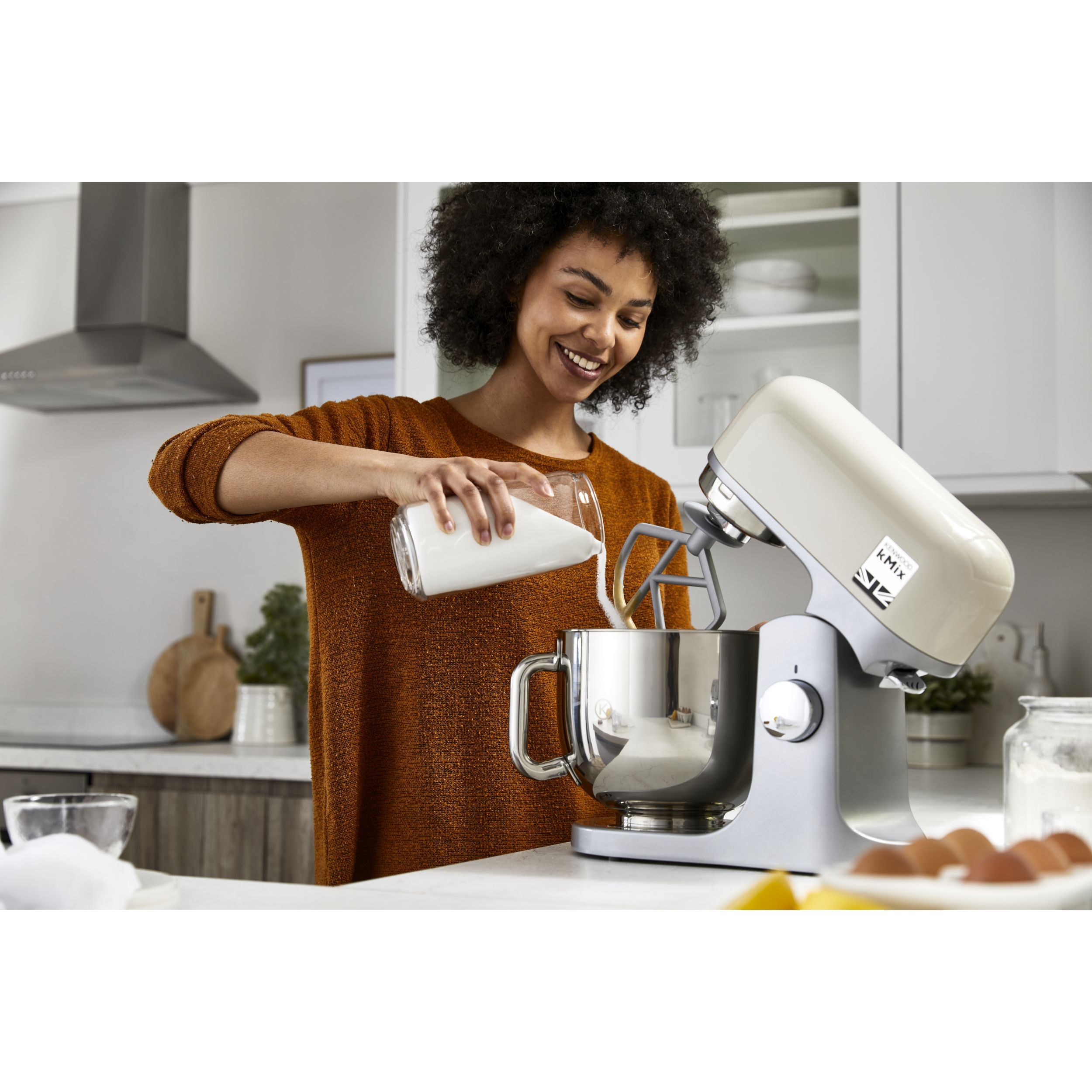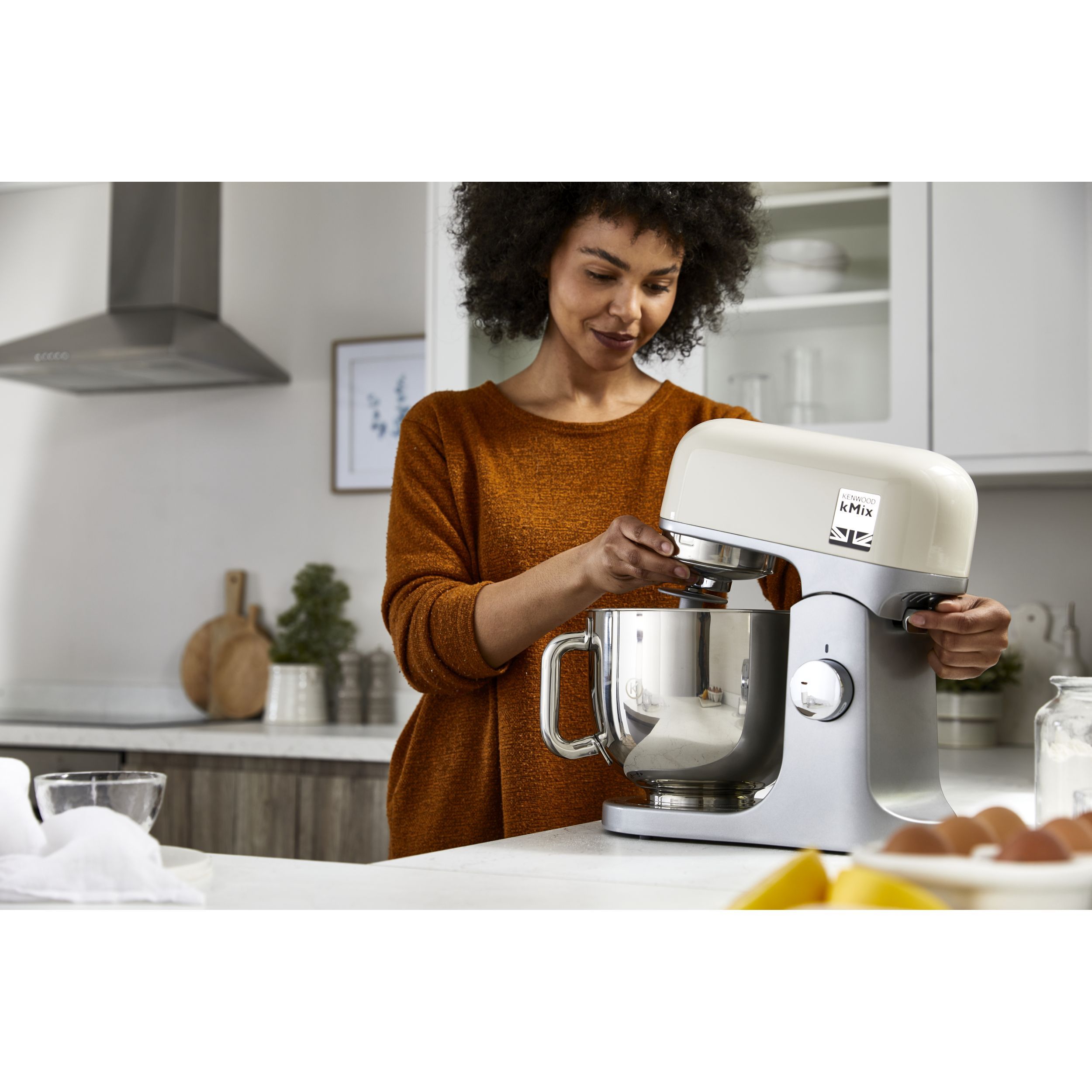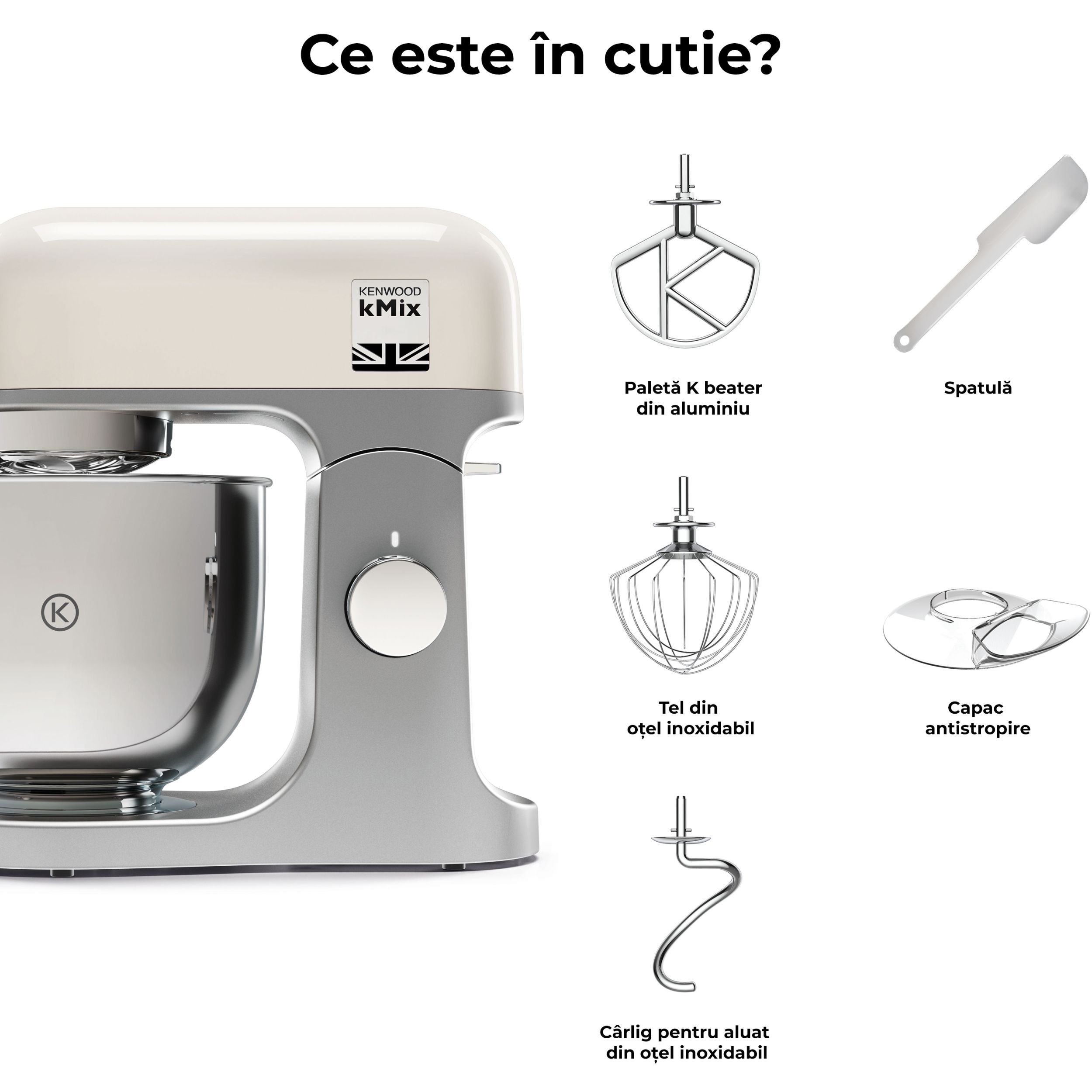 Robot de bucătărie planetar KENWOOD kMix KMX751ACR - 0W20011522, 1000W (6 trepte și Turbo), Vas inox 5l, Corp aluminiu turnat, Set patiserie (tel 16 brațe, cârlig, paletă K), G8.86kg, Calm Cream
