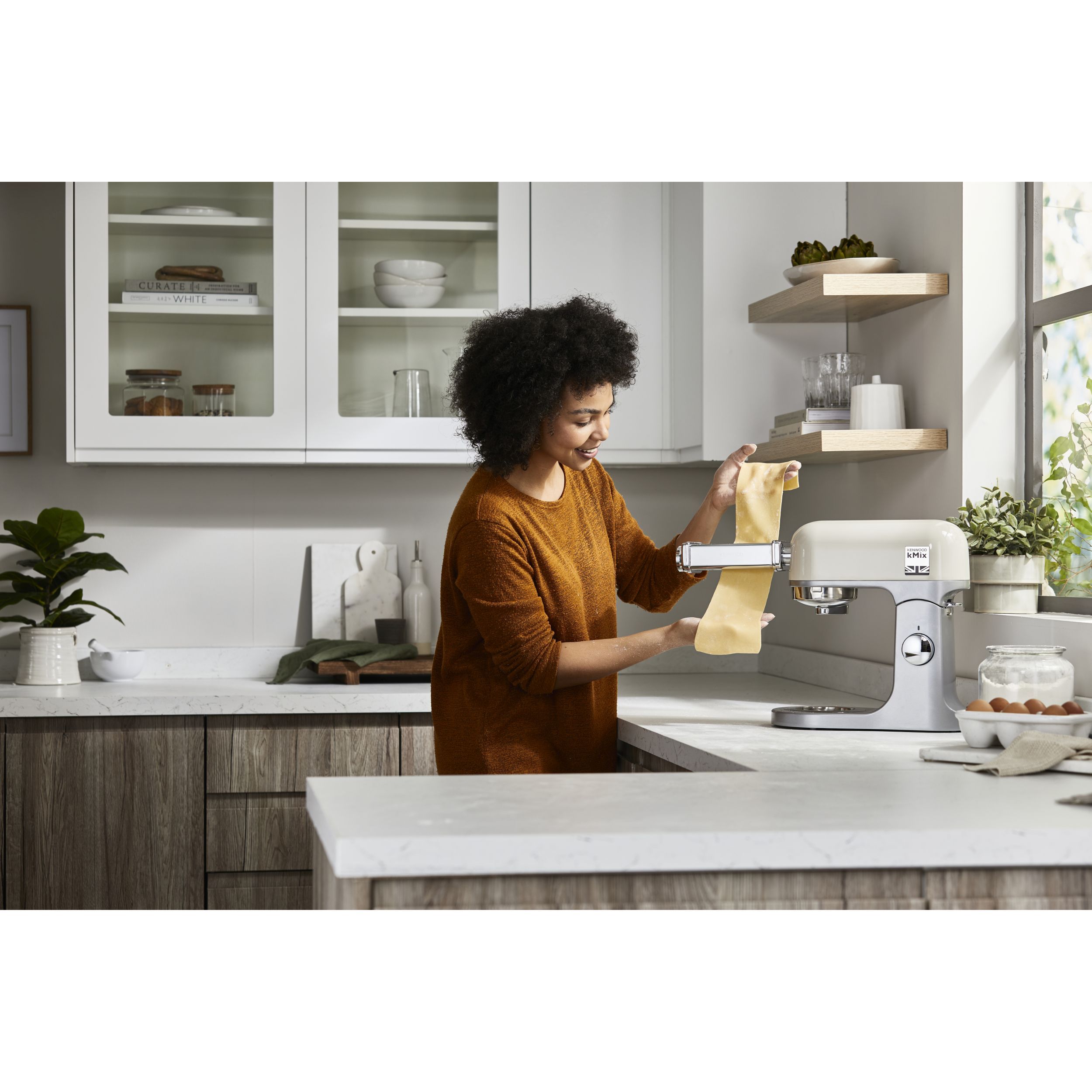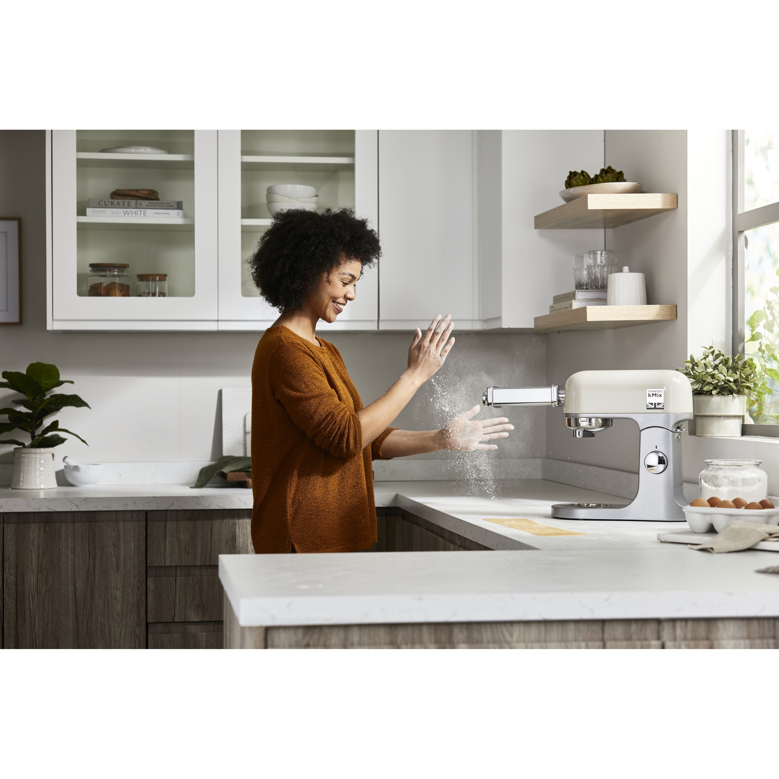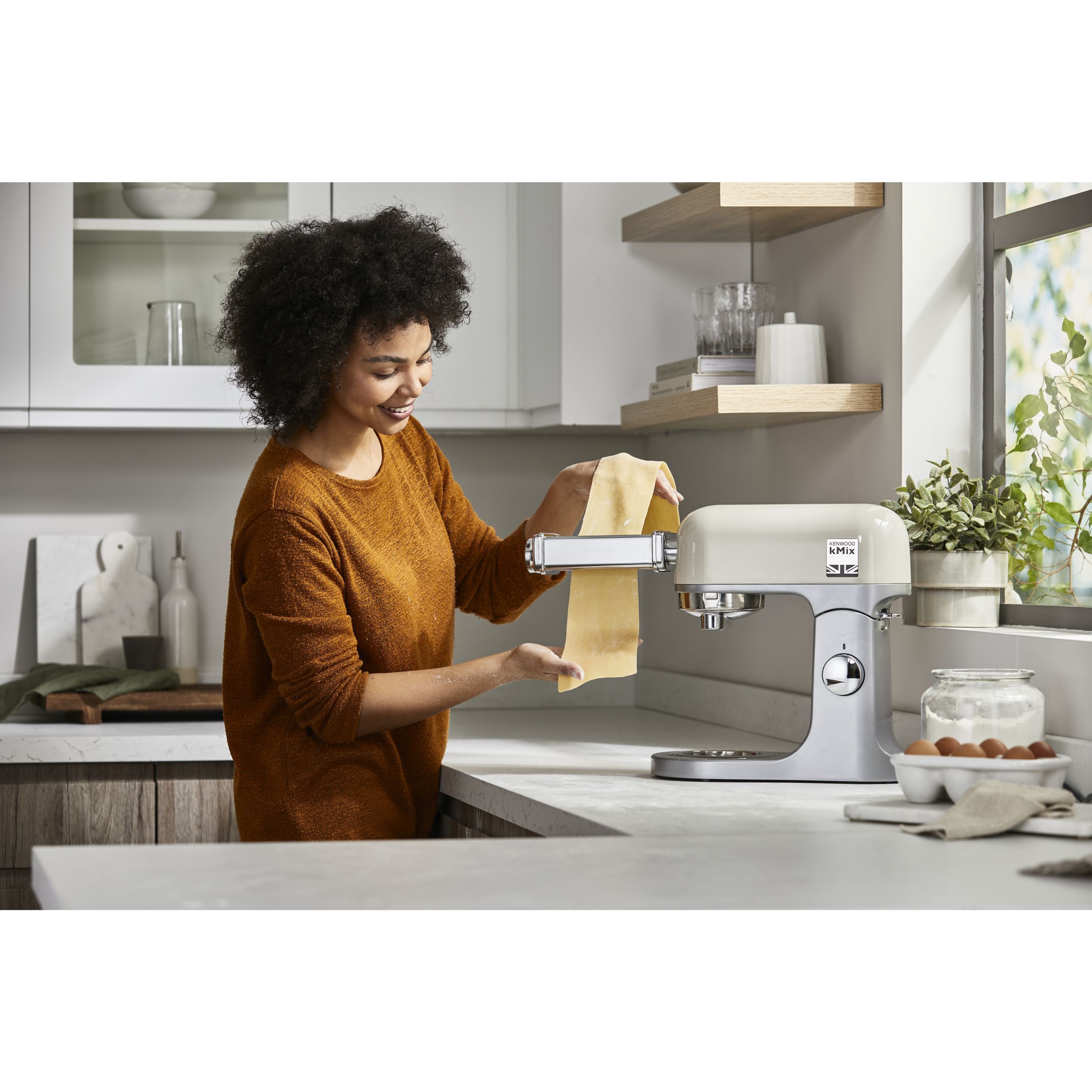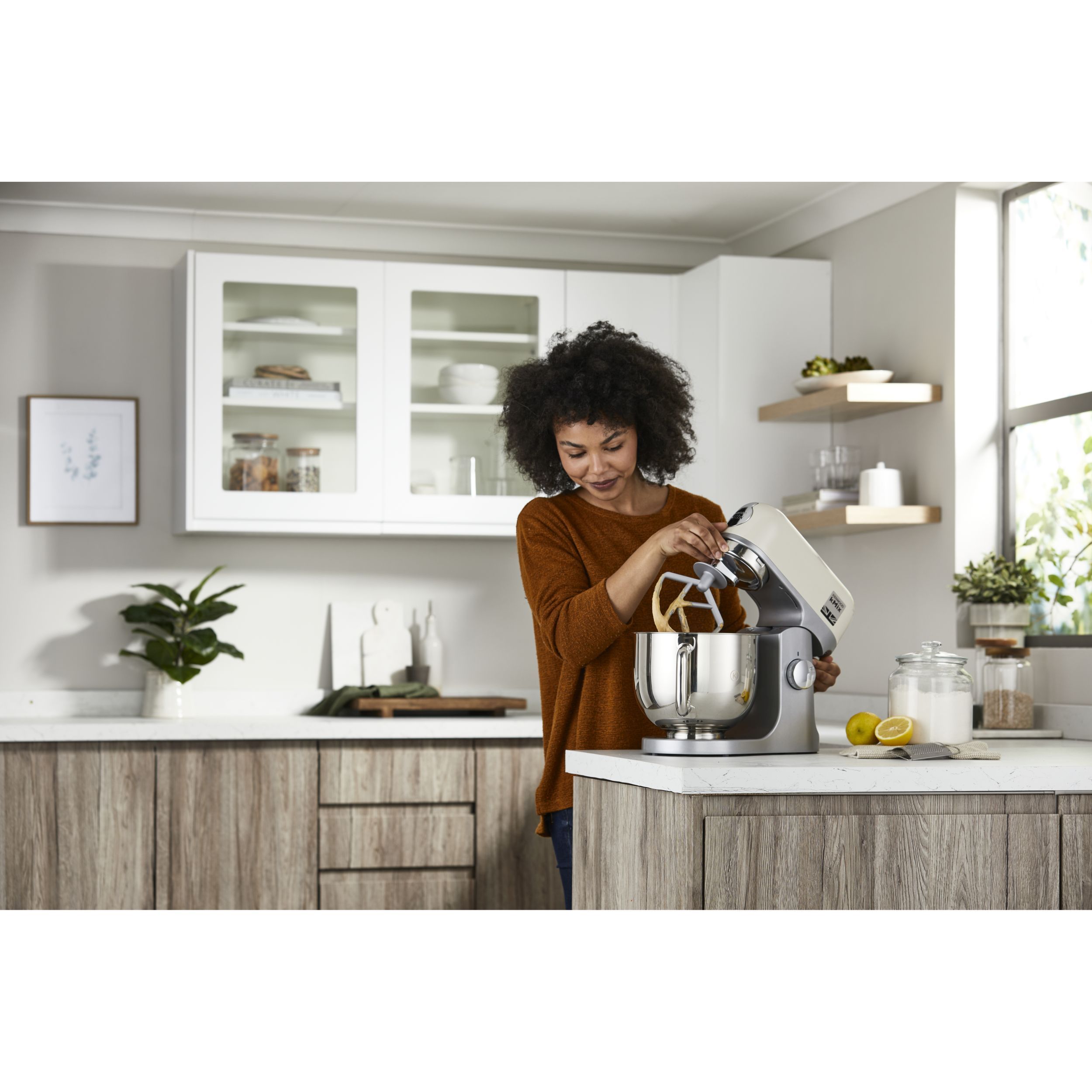 Robot de bucătărie planetar KENWOOD kMix KMX751ACR - 0W20011522, 1000W (6 trepte și Turbo), Vas inox 5l, Corp aluminiu turnat, Set patiserie (tel 16 brațe, cârlig, paletă K), G8.86kg, Calm Cream