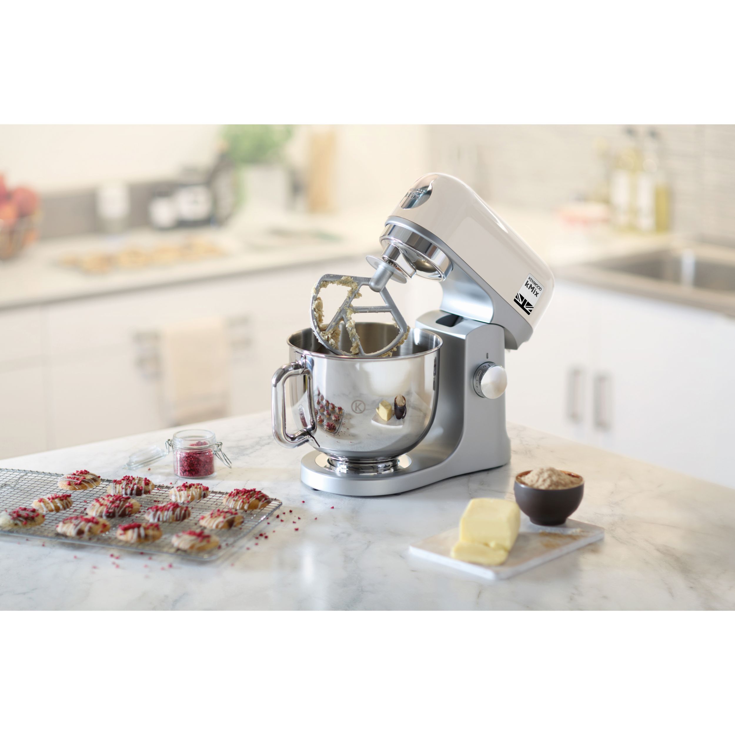 Îndrăzneț, strălucitor și de încredere - kMix are cu ce se mândri. Amestecați, bateți și frământați pentru a crea prăjituri, creme, pâine, biscuiți și multe altele. Alegeți din cele 4 culori uimitoare pentru a obține acea pată de strălucire performantă în bucătăria ta!