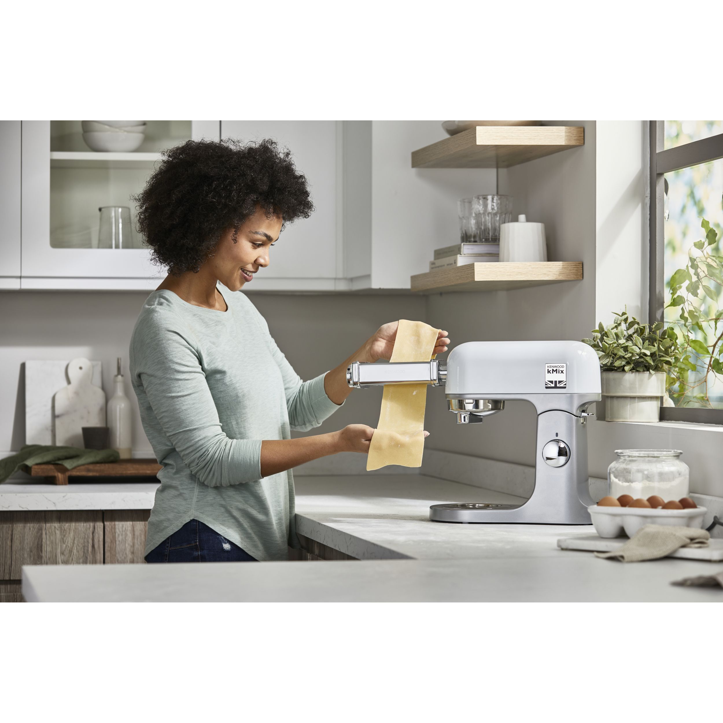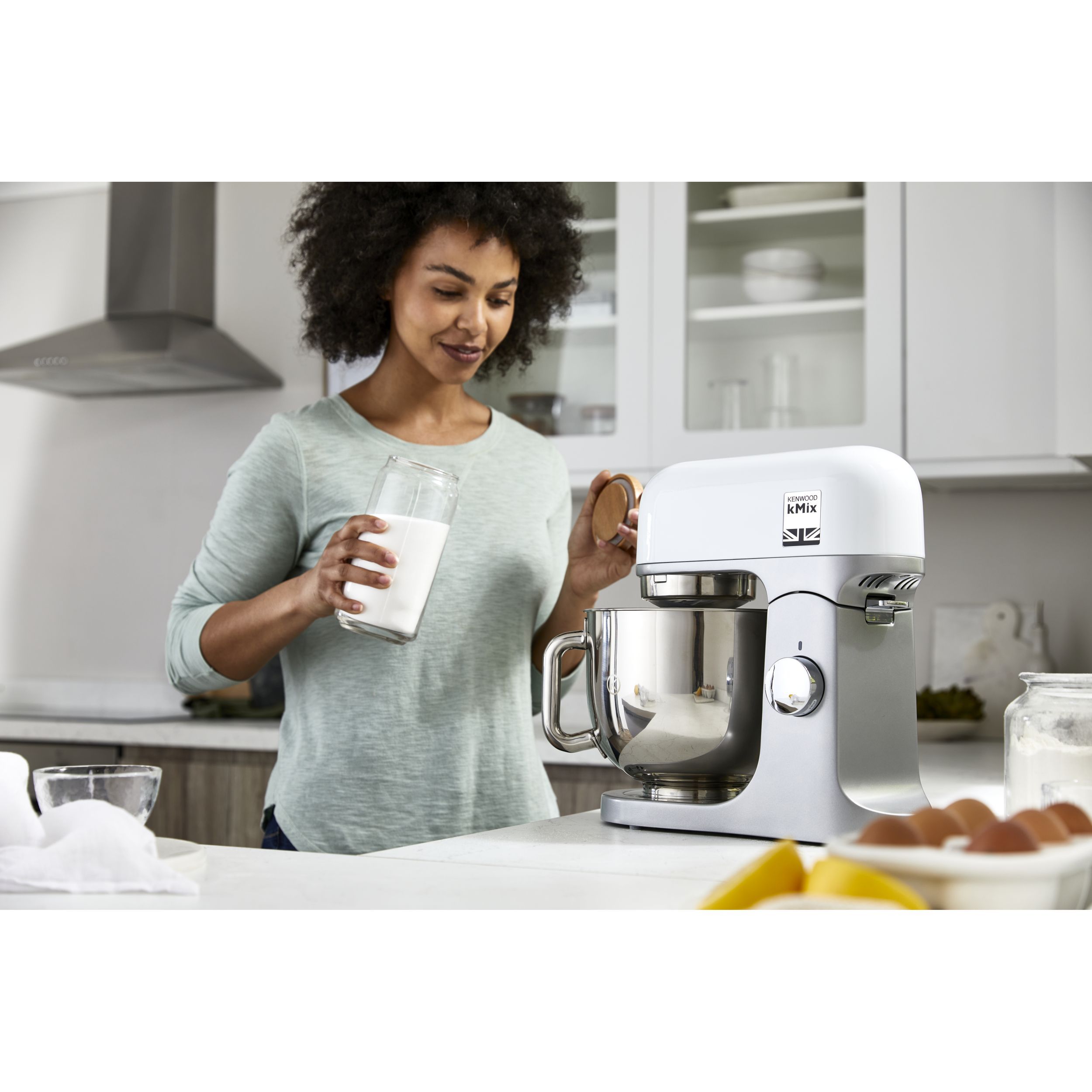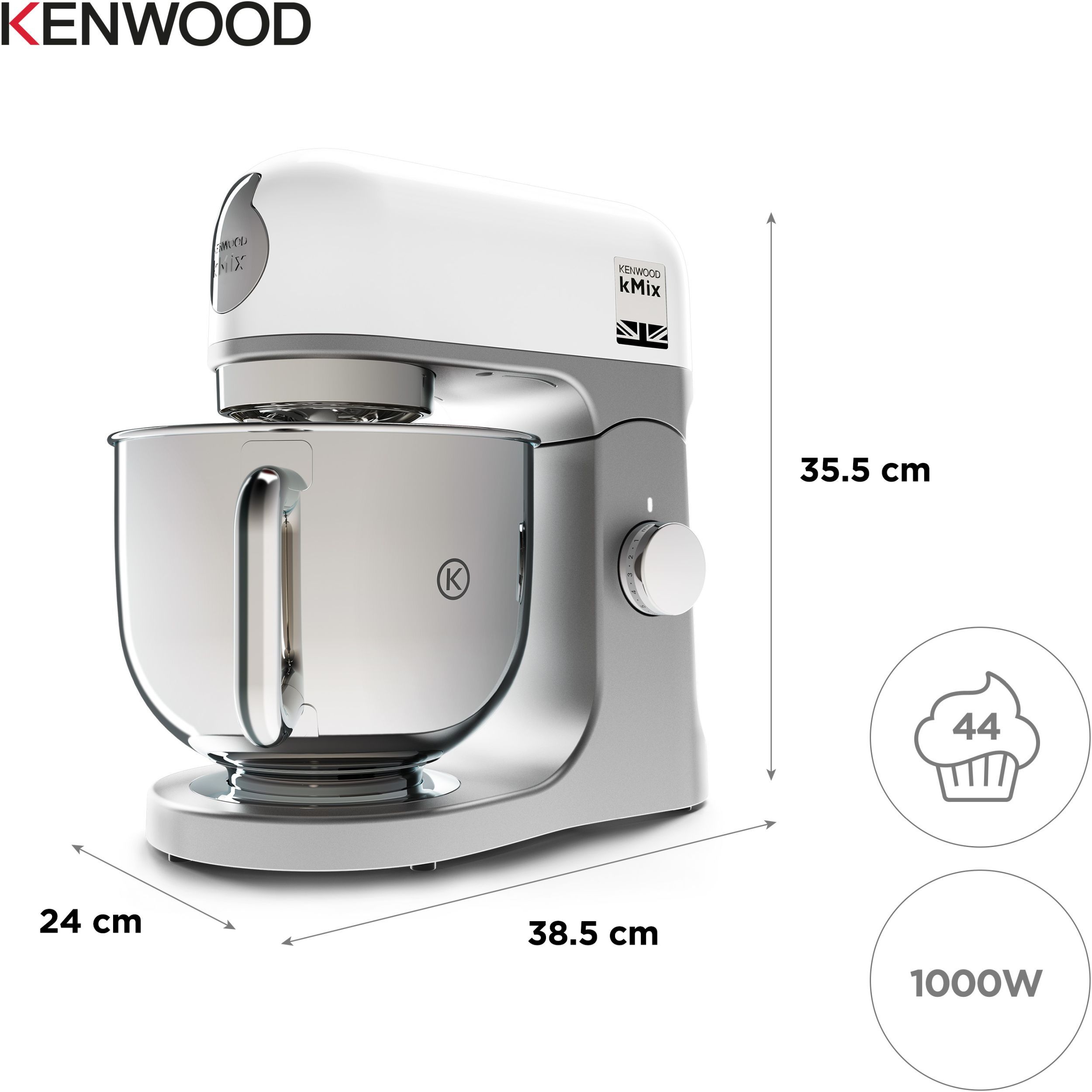 (EOL) Robot de bucătărie planetar KENWOOD kMix KMX750AAW - 0W20011426, 1000W (6 trepte și Turbo), Vas inox 5l, Set patiserie (tel 16 brațe, cârlig, paletă K), Soft Start, G9.26kg, All White