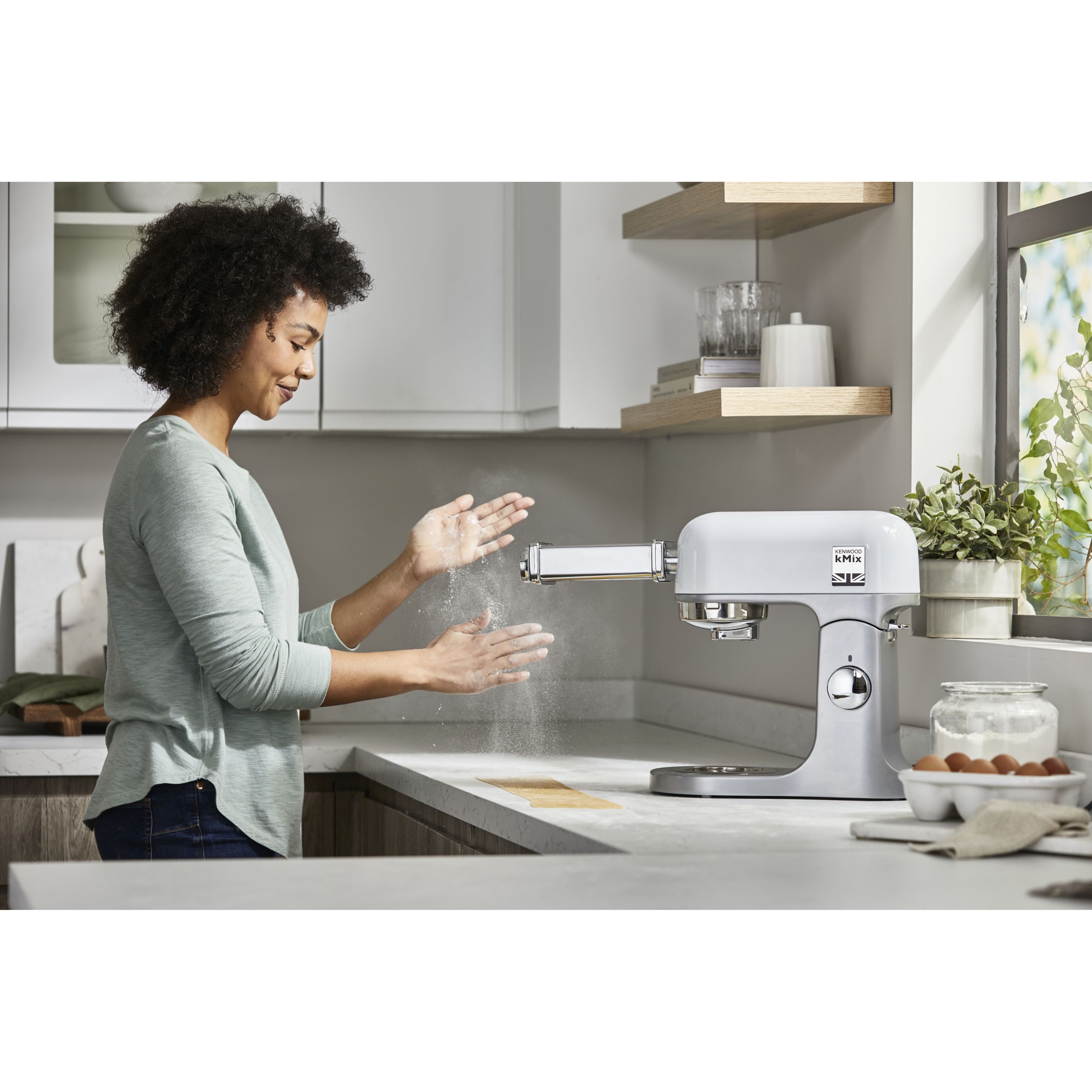 Robot de bucătărie planetar KENWOOD kMix Special Edition KMX760AGR - 0W20011442, 1000W (6 trepte și Turbo), Vas inox 5l, Set patiserie (tel 16 brațe, cârlig, paletă K), G9.3kg, Sage Green