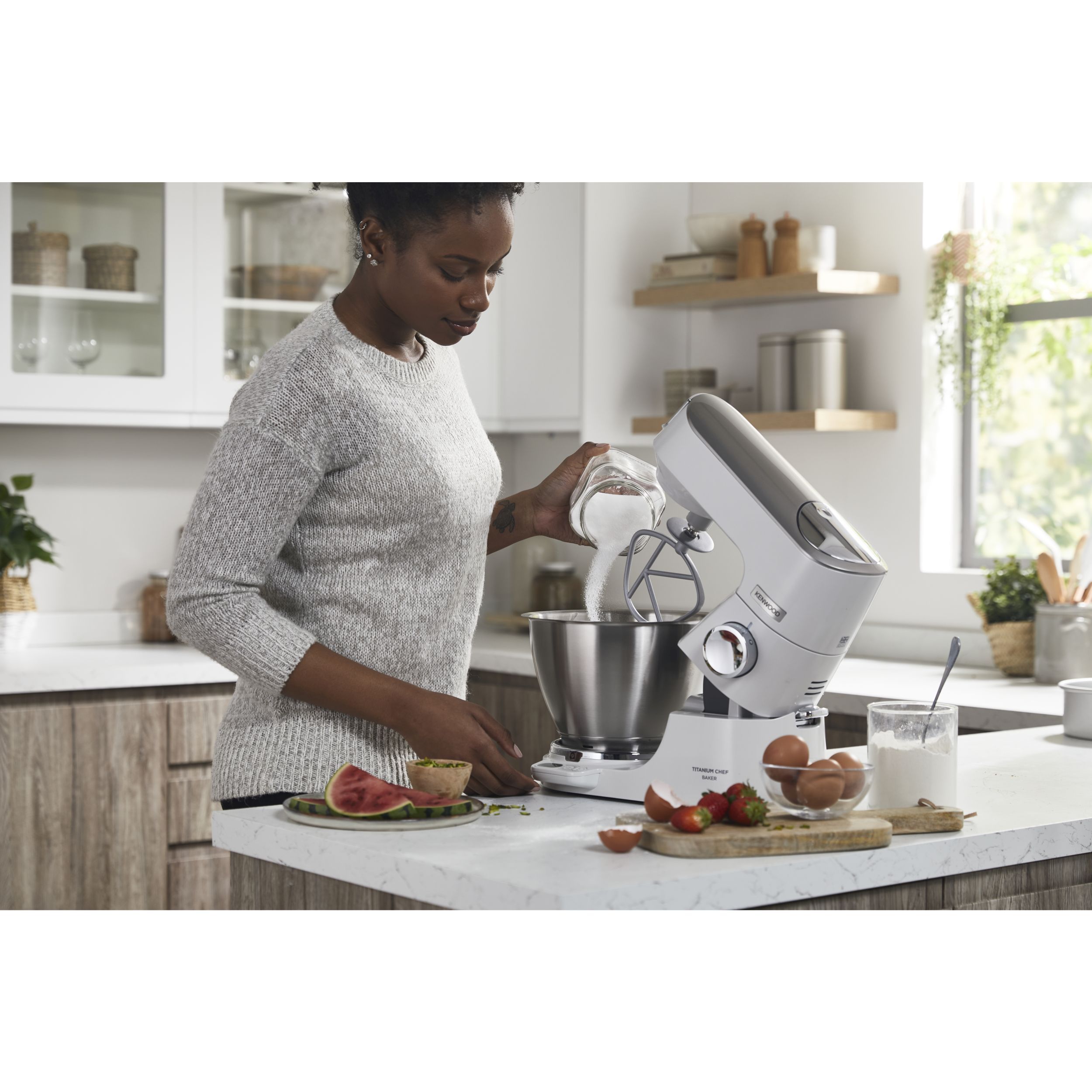 Precizia gătitului începe cu robotul de bucătărie KENWOOD Titanium Chef Baker. Gătitul devine o plăcere neîntreruptă atunci când cântăriți ingredientele direct în vas sau folosiți o funcție de pliere delicată pentru bezele sau mousse. În plus, vă puteți personaliza aparatul Chef Baker cu 8 culori diferite PopTops disponibile pentru achiziționare.