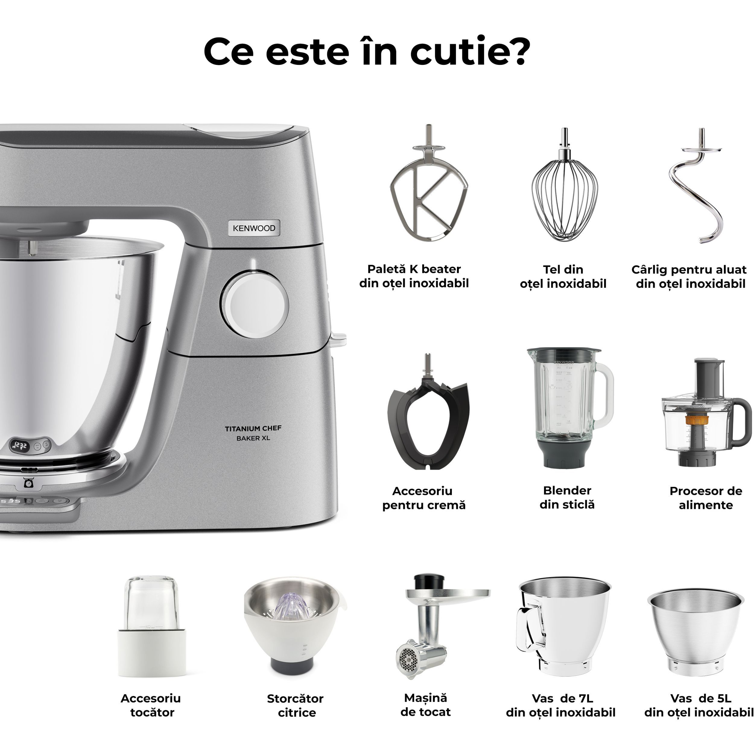 Precizia gătitului începe cu robotul de bucătărie KENWOOD Titanium Chef Baker XL. Gătitul devine o plăcere neîntreruptă atunci când cântăriți ingredientele direct în vas, folosiți un vas suplimentar și o funcție de pliere delicată pentru bezele sau mousse. Acesta este un aparat cu stil și substanță.