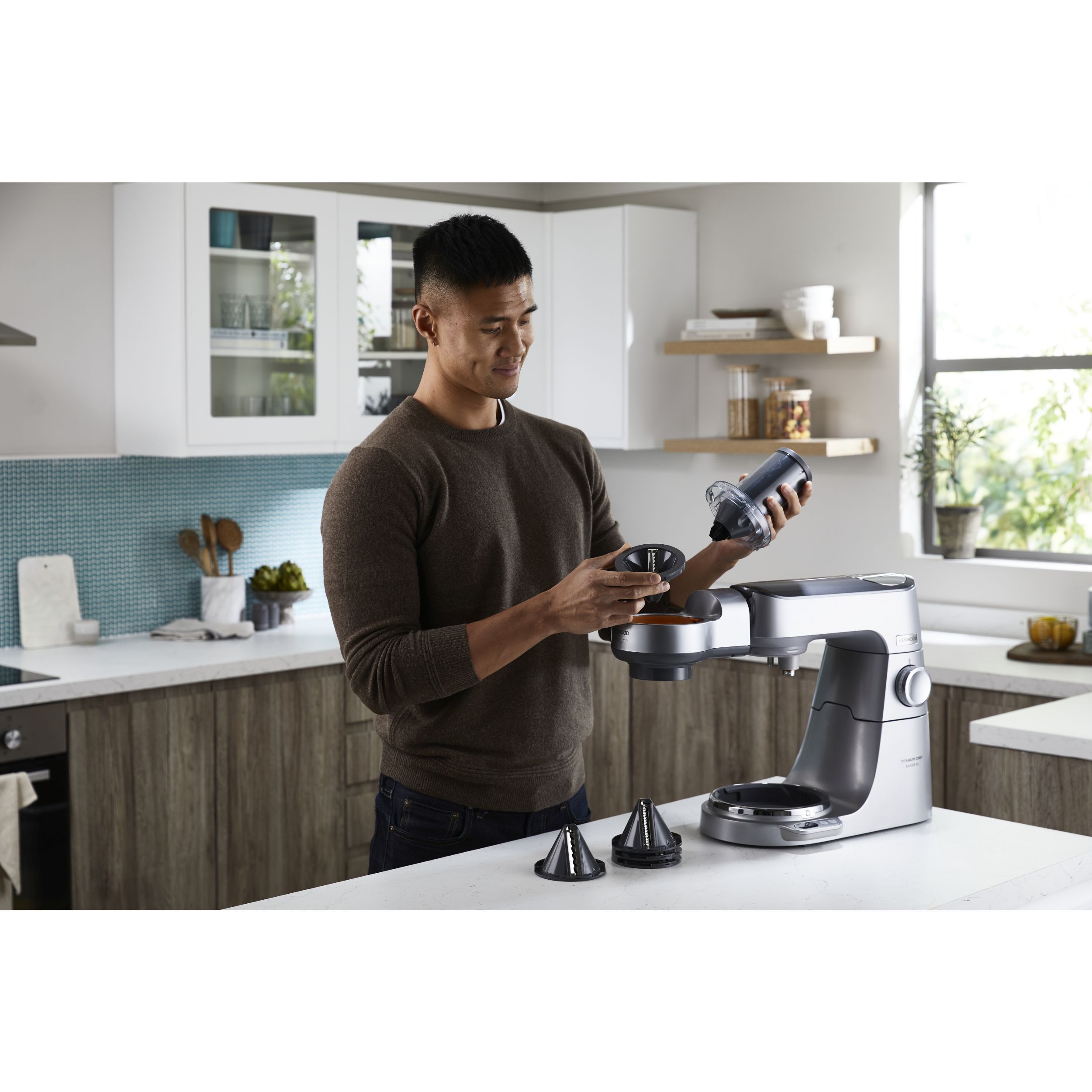 Robot de bucătărie planetar KENWOOD Titanium Chef Baker XL KVL85.704SI - 0W20011480, 1200W, 2 vase (7l/5l), Cântar integrat, Blender, Mașină de tocat, Procesor alimente, Storcător citrice, Tocător, Spatulă