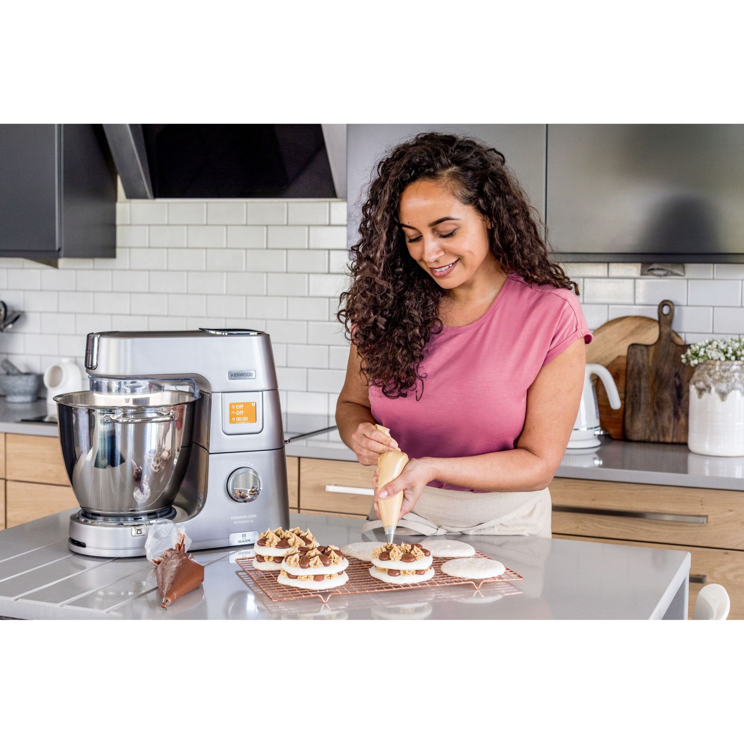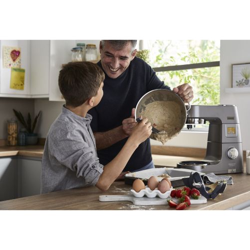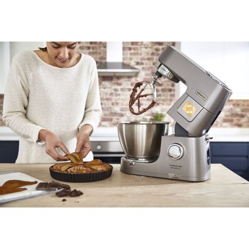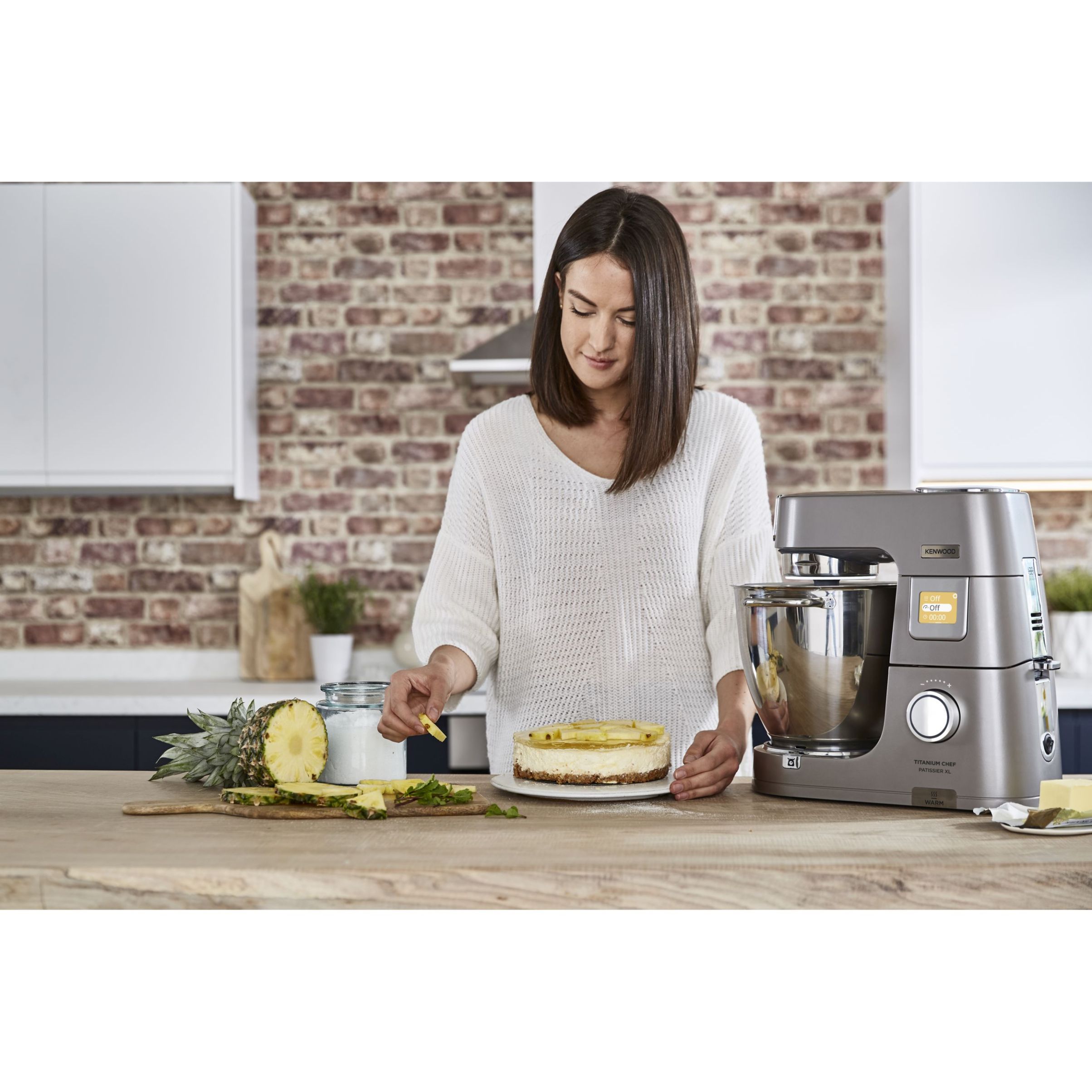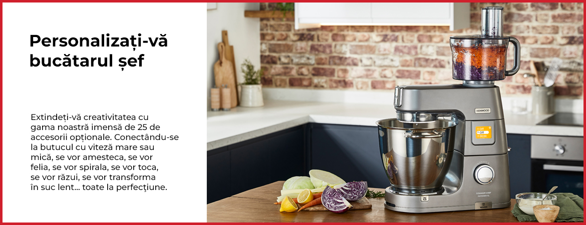 În lumea bucătăriei, inspirația și creativitatea sunt la fel de importante precum este și preparatul obținut. Astfel, robotul de bucătărie Titanium Chef Patissier XL reprezint un ajutor de nădejde în bucătărie, oferind versatilitate mâncărurilor. Chef Patissier XL este conceput pentru entuziaștii culinari care caută profesionalism și perfecțiune în bucătăria proprie. Robotul eficient, ergonomic și versatil este rezultatul anilor de cercetare în inginerie, deschizând noi orizonturi culinare în crearea unei game largi de preparate. Conectați-vă la aplicația mobilă KENWOOD World pentru inspirație culinară pas cu pas, topiți rapid ciocolata cu ajutorul sistemului de încălzire și măsurați ingredientele direct în vasul robotului cu cântarul EasyWeigh încorporat. Robust și rezistent, Titanium Chef Patissier XL va sta în siguranță pe blatul de lucru chiar și atunci cand framântați cele mai mari cantități de aluat, iar sistemul de iluminare al vasului vă ajuta să aveți 100% control asupra preparatelor.
