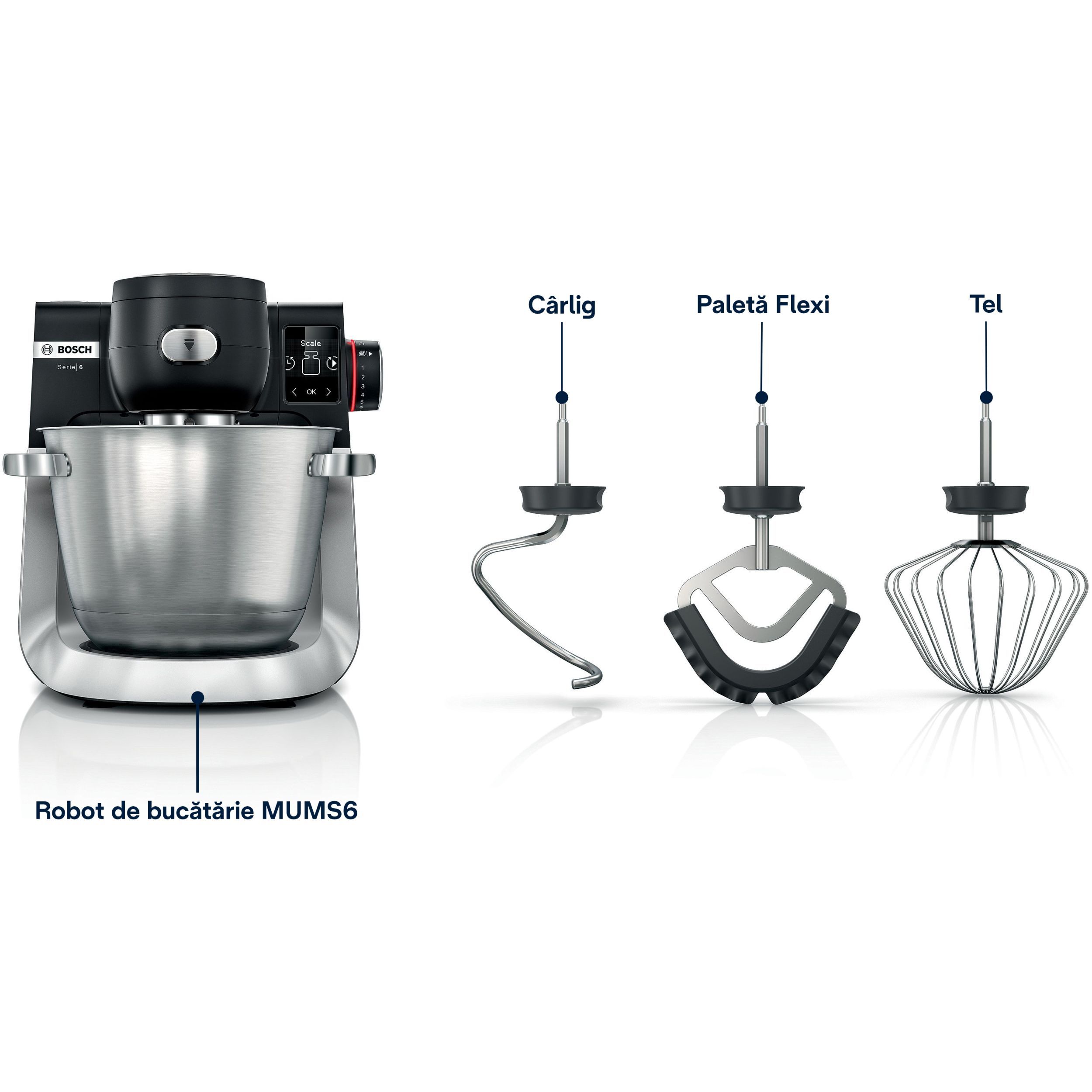 Set profesional de patiserie - Set de patiserie inclus. Ideile creative de preparare necesită accesorii potrivite. Setul profesional de patiserie asigură rezultate perfecte și o manevrare ușoară: un tel de amestecare cu margine din silicon, tel pentru bătut, cârlig de frâmântat. Aceste accesorii pot fi spălate în mașina de spălat vase.