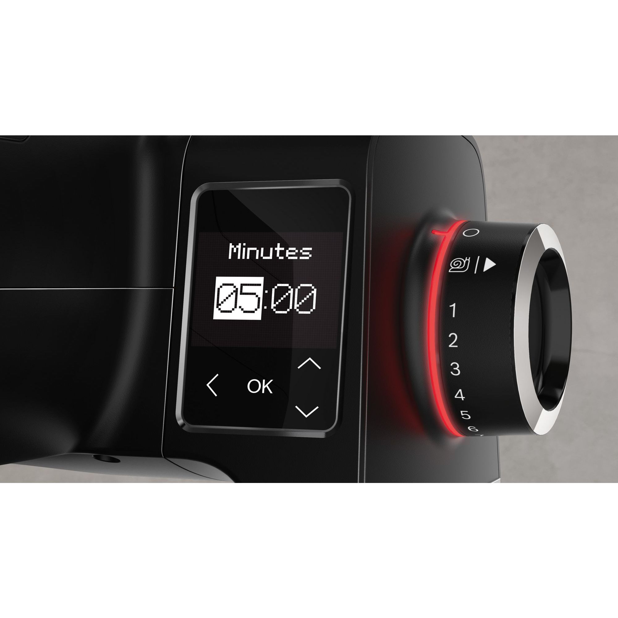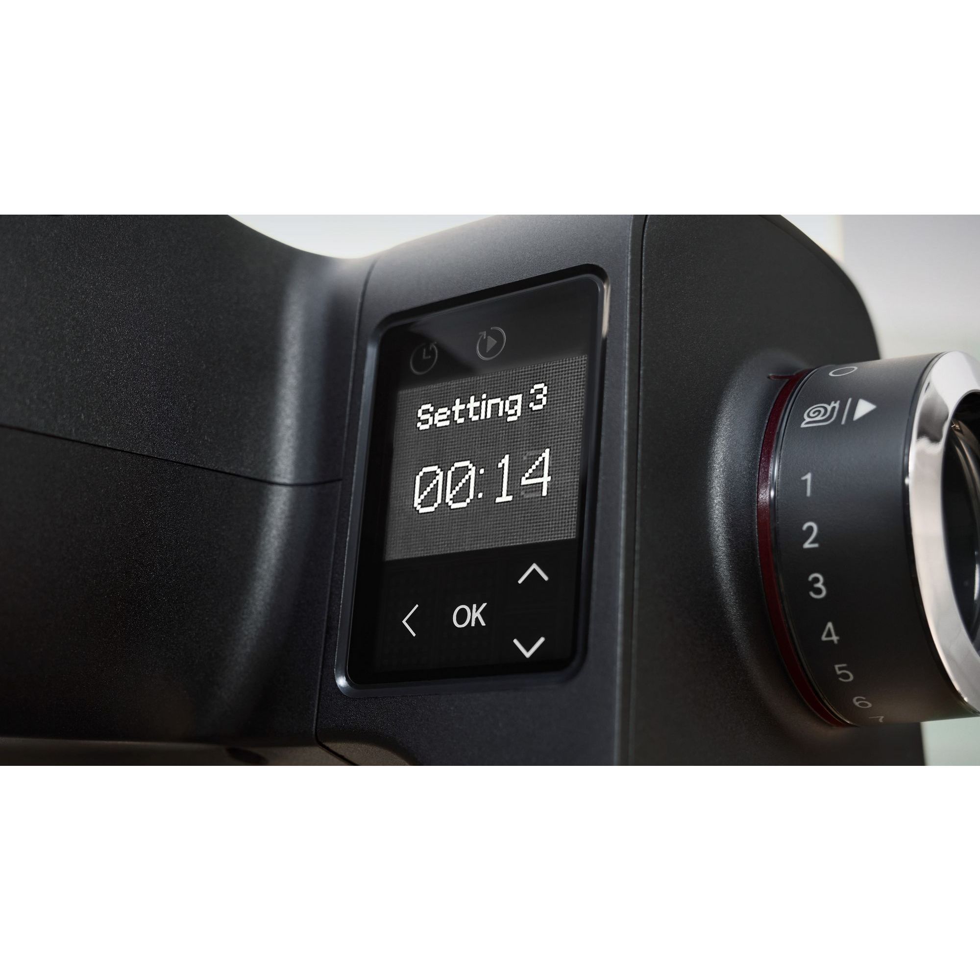 Cântar integrat: afișare de mare precizie, în trepte de 1 gram. Cântărește suplimentar ml, ml lapte, ml ulei, g, oz & lbs. Poți cântări ingredientele direct în bol sau accesorii sau direct pe robot.