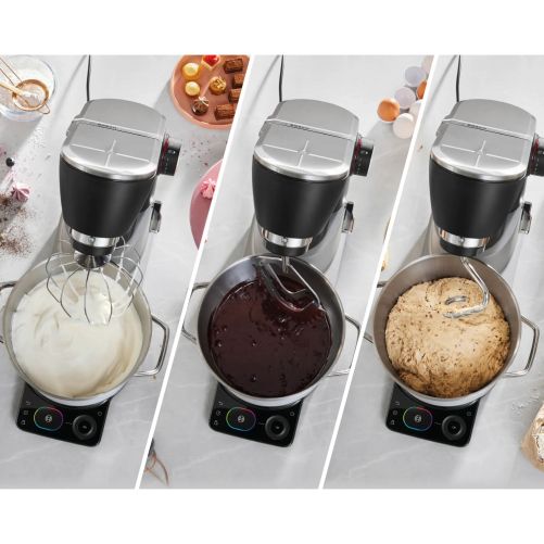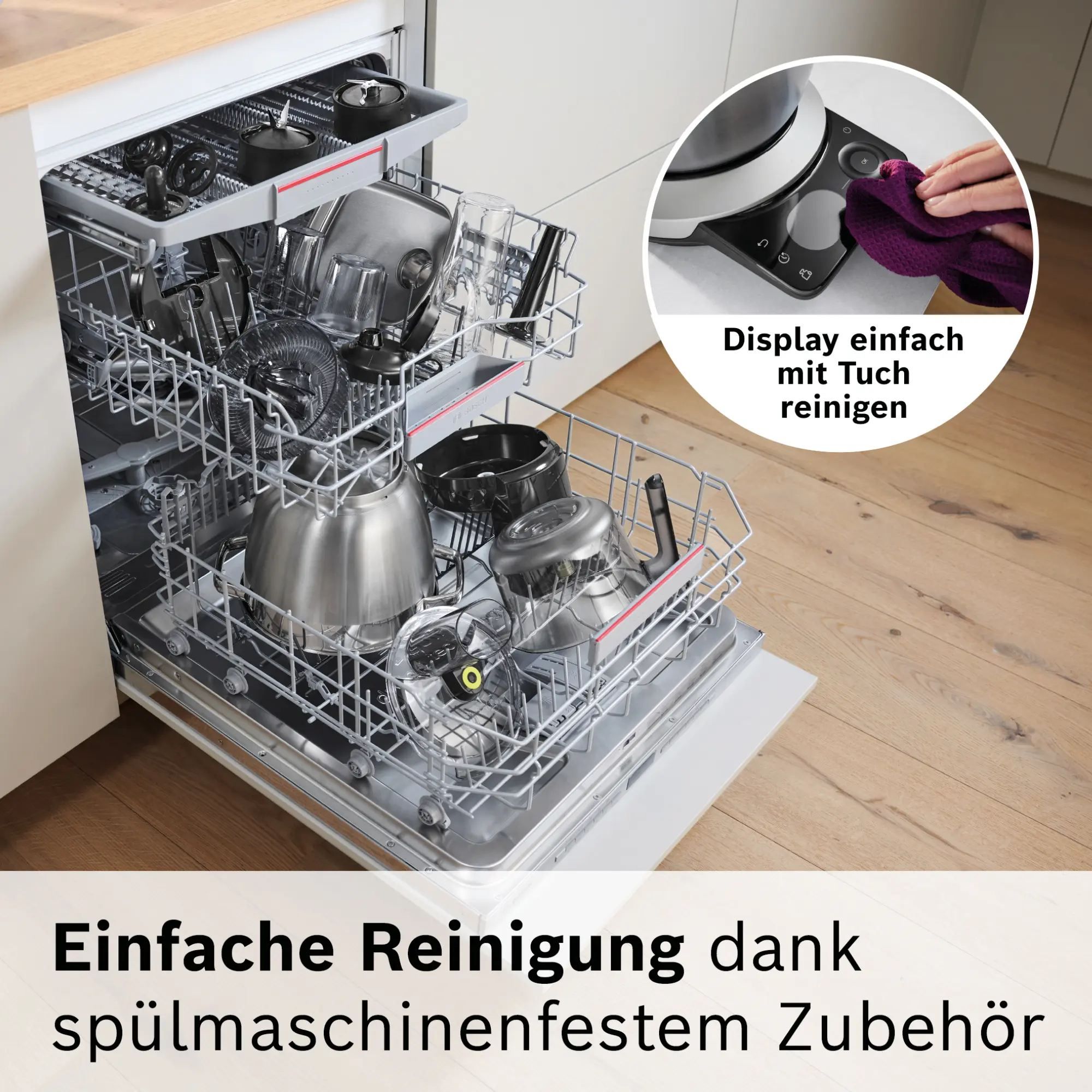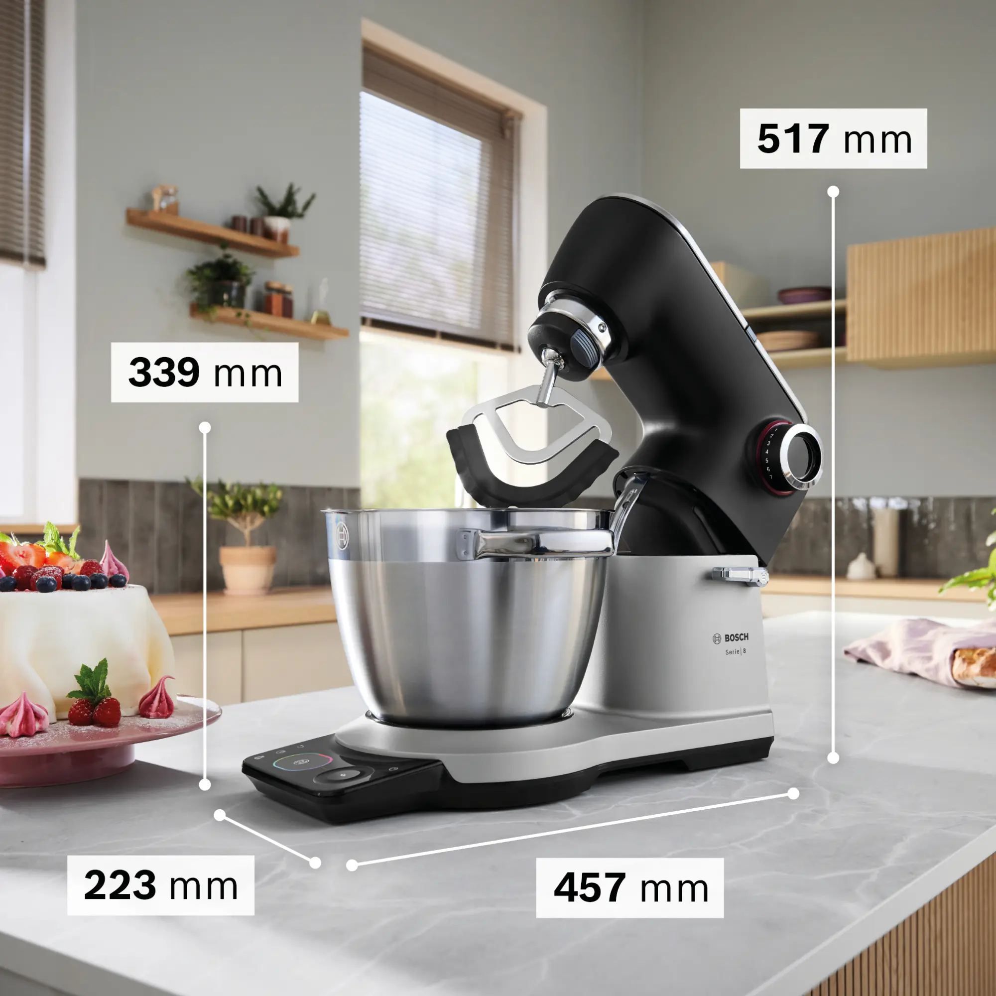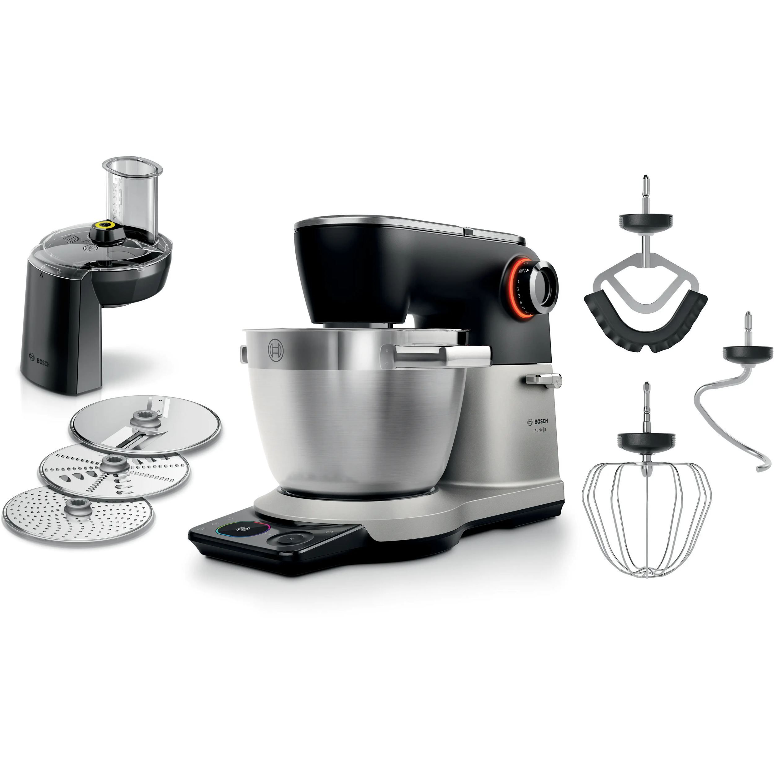 Robot de bucătărie planetar BOSCH Serie 8 MUMS8 Scale MUMS8ZS13, 1800W (7 trepte), Bol inox șlefuit 6l cu mânere, Set patiserie, Cântar, Cronometru, SoftStart, AirCooling, Carcasă metalică, Pearl Silver