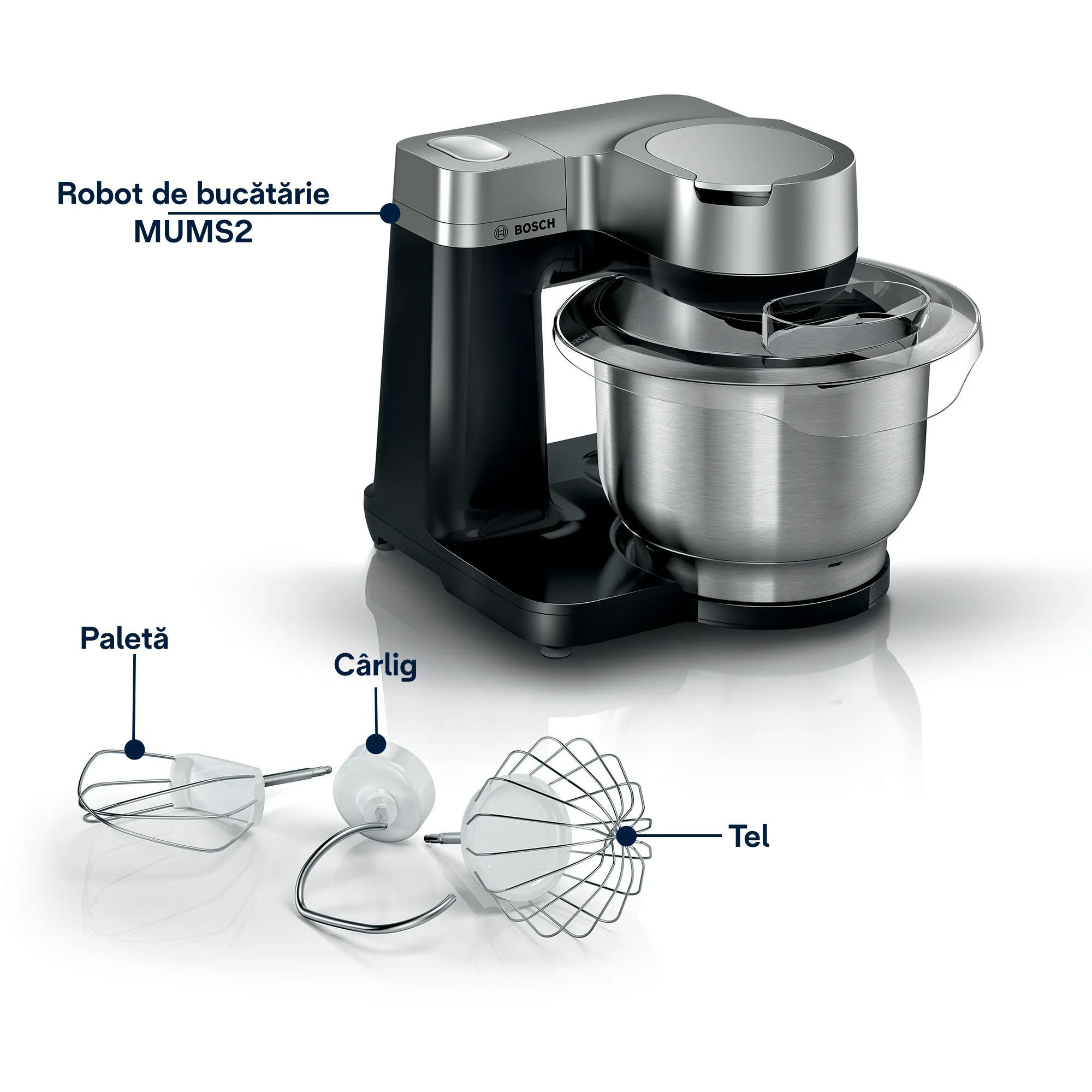 Robotul MUM Serie 2 a fost conceput pentru a se potrivi în orice bucătărie, dar și pentru a face față celor mai mari provocări. Se potrivește celor care caută versatilitate și calitate într-un robot de bucătărie cu dimensiuni compacte.