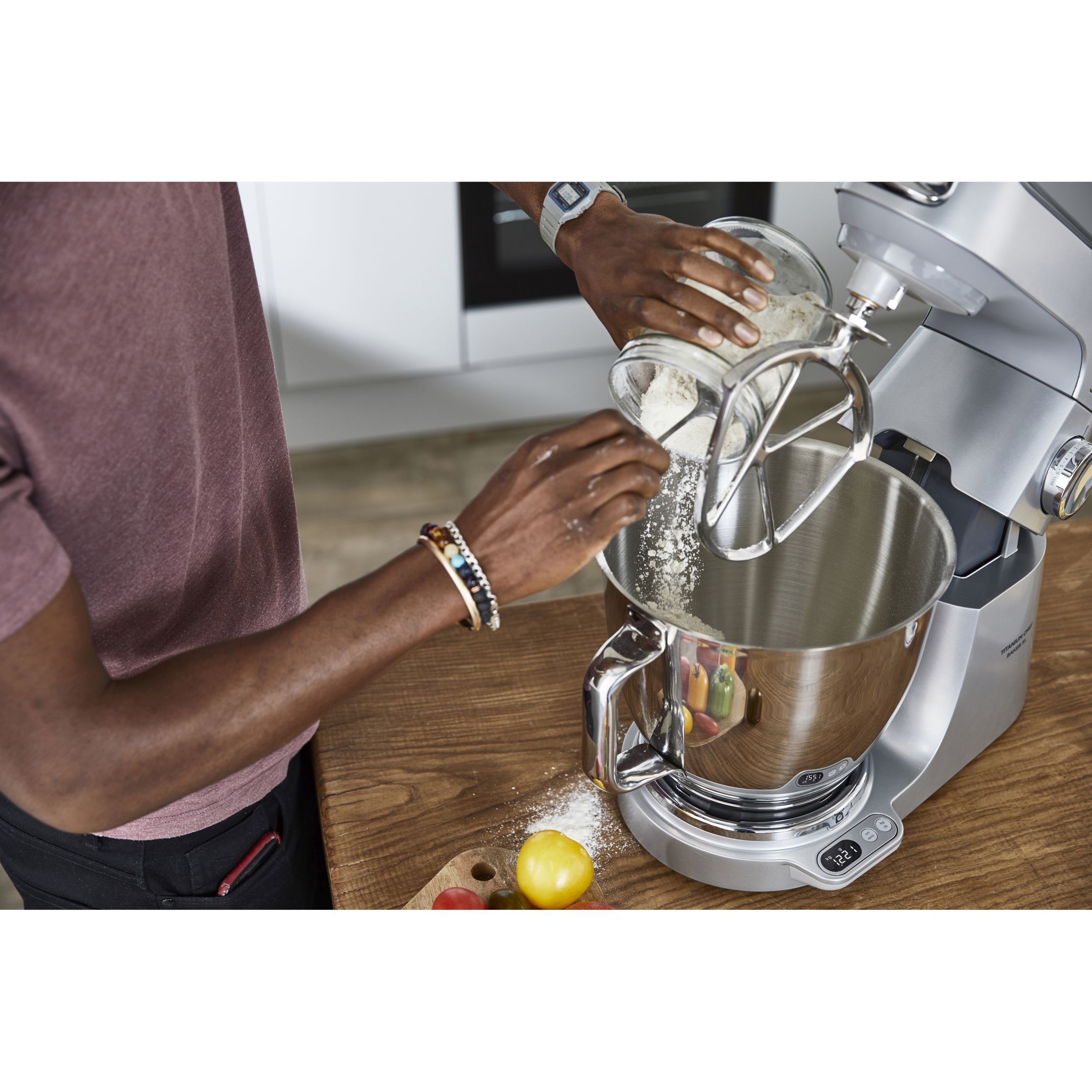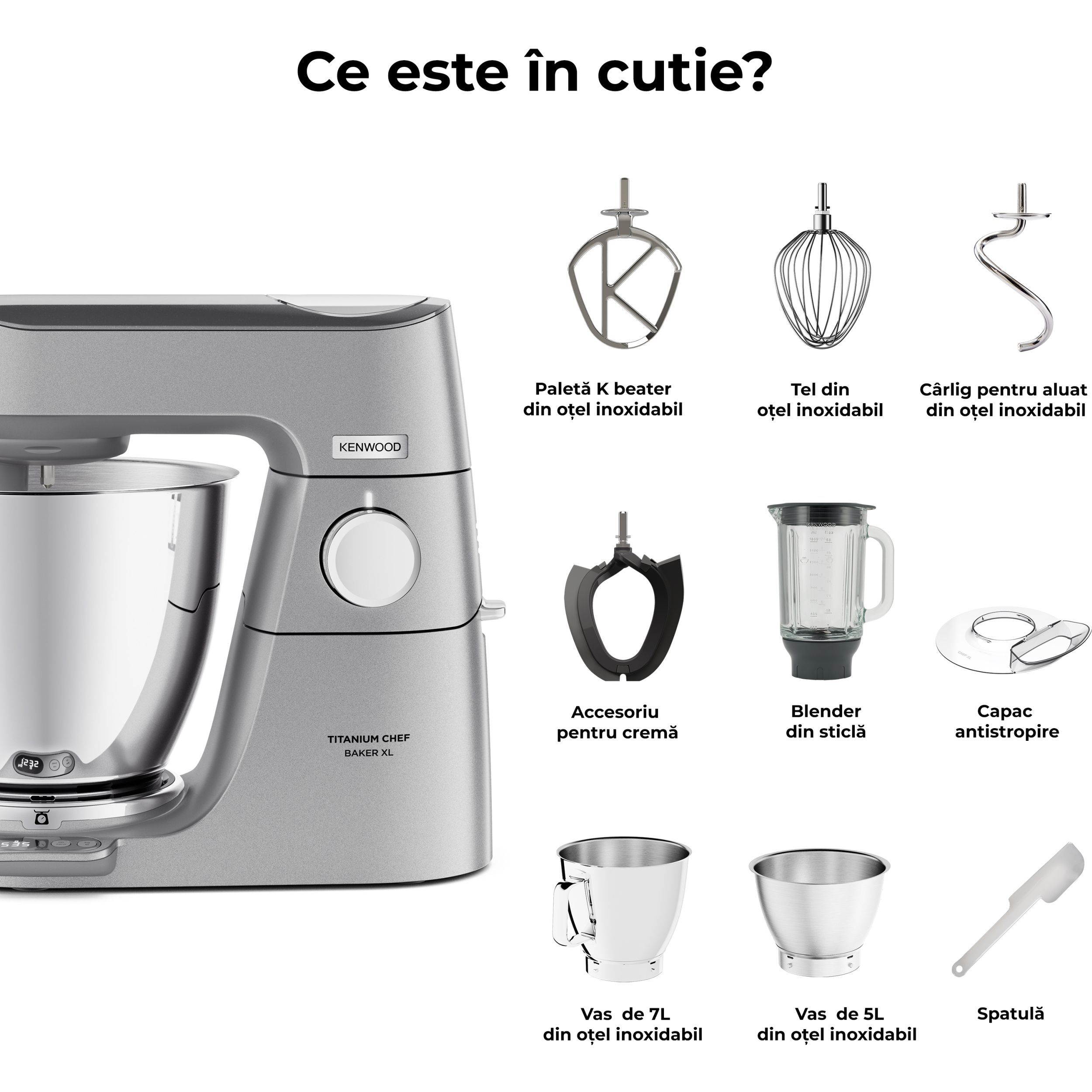 Precizia gătitului începe cu robotul de bucătărie KENWOOD Titanium Chef Baker XL. Gătitul devine o plăcere neîntreruptă atunci când cântăriți ingredientele direct în vas, folosiți un vas suplimentar și o funcție de pliere delicată pentru bezele sau mousse. Acesta este un aparat cu stil și substanță.