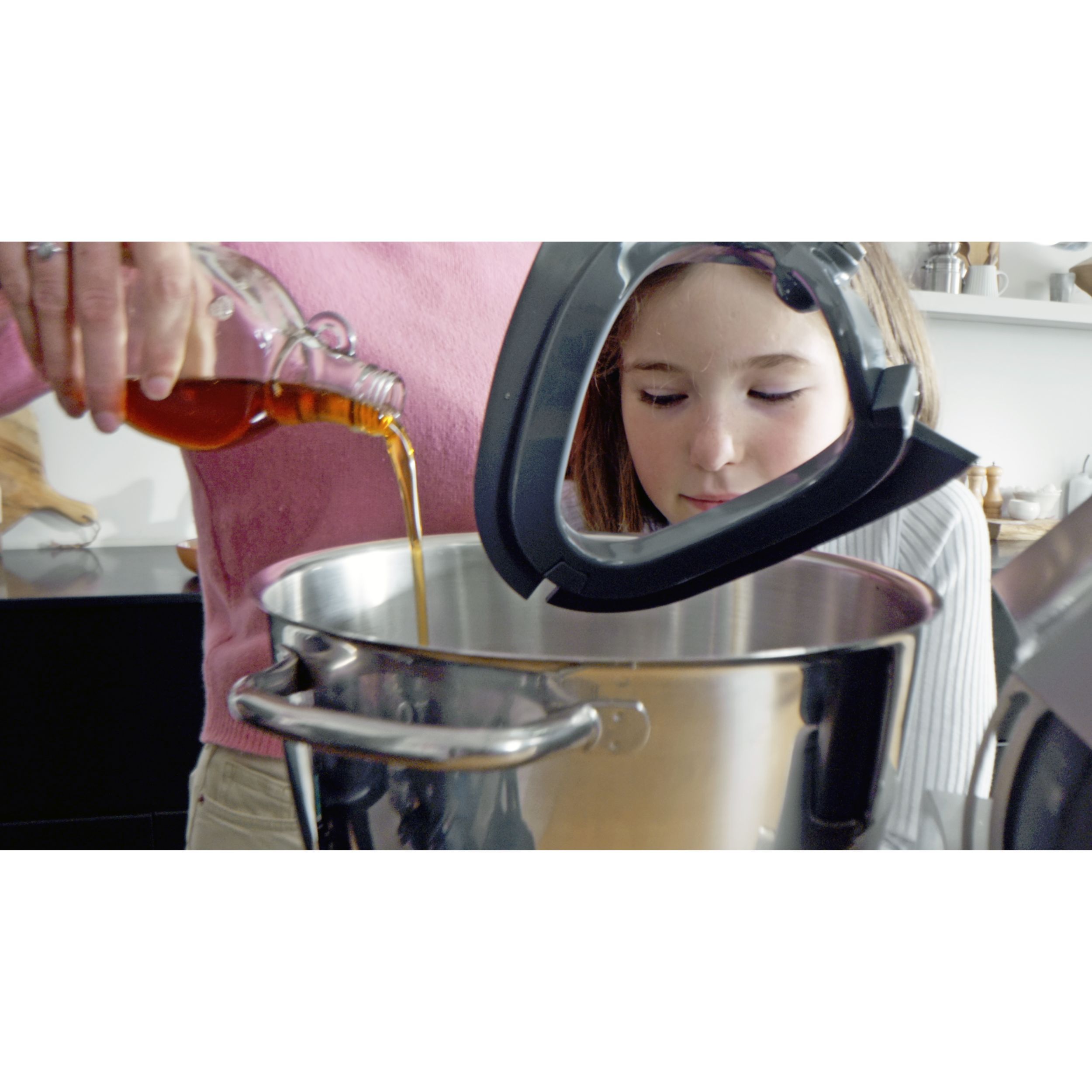Atunci când rețeta dumneavostră are nevoie de două vase, încapsulat în vasul de 7L EasyWarm este un vas de mixare de 5L. Ambele încap în aparat, fără reglaje, pentru un gătit perfect. Schimbaţi vasul, continuaţi să creaţi.