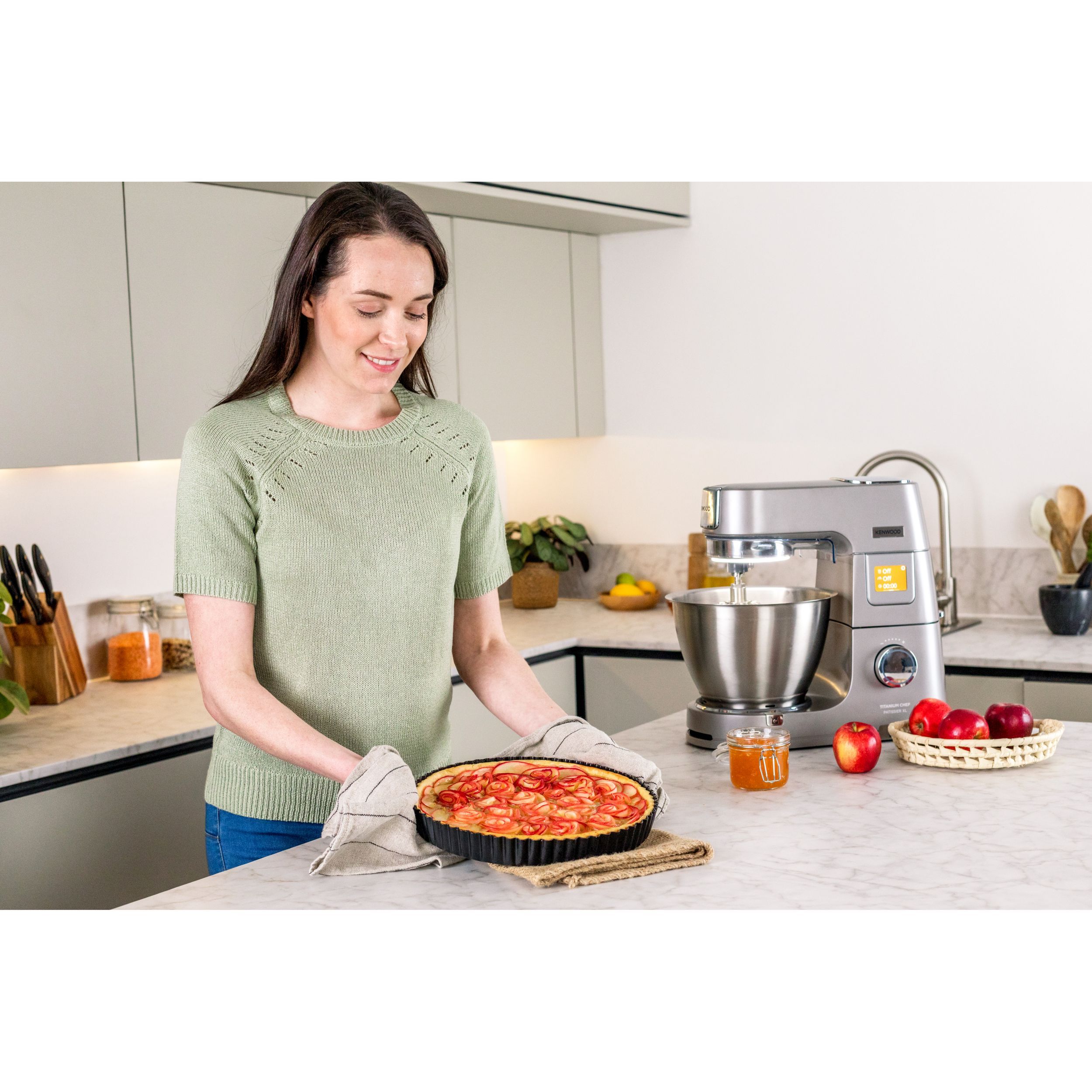 În lumea bucătăriei, inspirația și creativitatea sunt la fel de importante precum este și preparatul obținut. Astfel, robotul de bucătărie Titanium Chef Patissier XL reprezint un ajutor de nădejde în bucătărie, oferind versatilitate mâncărurilor. Chef Patissier XL este conceput pentru entuziaștii culinari care caută profesionalism și perfecțiune în bucătăria proprie. Robotul eficient, ergonomic și versatil este rezultatul anilor de cercetare în inginerie, deschizând noi orizonturi culinare în crearea unei game largi de preparate. Conectați-vă la aplicația mobilă KENWOOD World pentru inspirație culinară pas cu pas, topiți rapid ciocolata cu ajutorul sistemului de încălzire și măsurați ingredientele direct în vasul robotului cu cântarul EasyWeigh încorporat. Robust și rezistent, Titanium Chef Patissier XL va sta în siguranță pe blatul de lucru chiar și atunci cand framântați cele mai mari cantități de aluat, iar sistemul de iluminare al vasului vă ajuta să aveți 100% control asupra preparatelor.