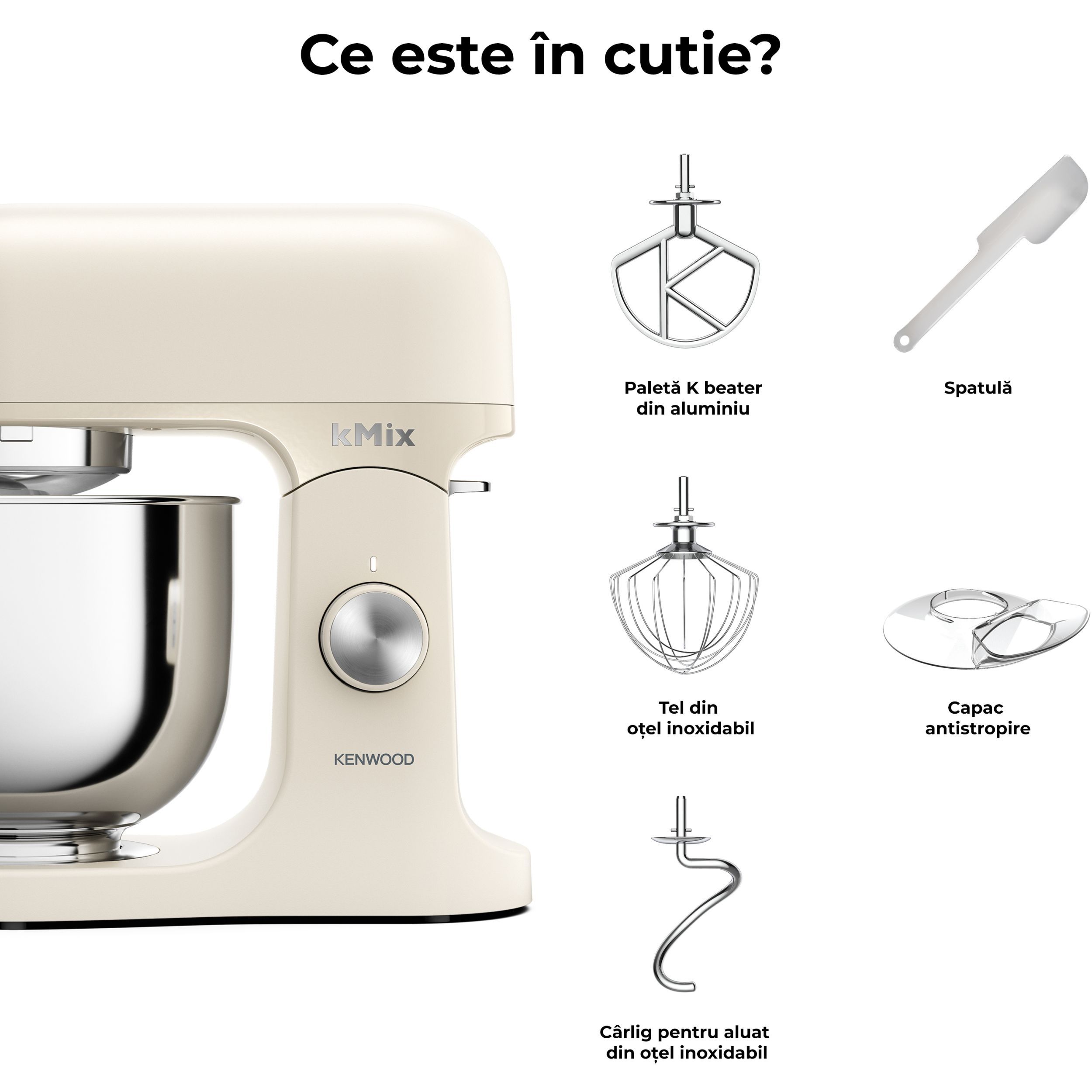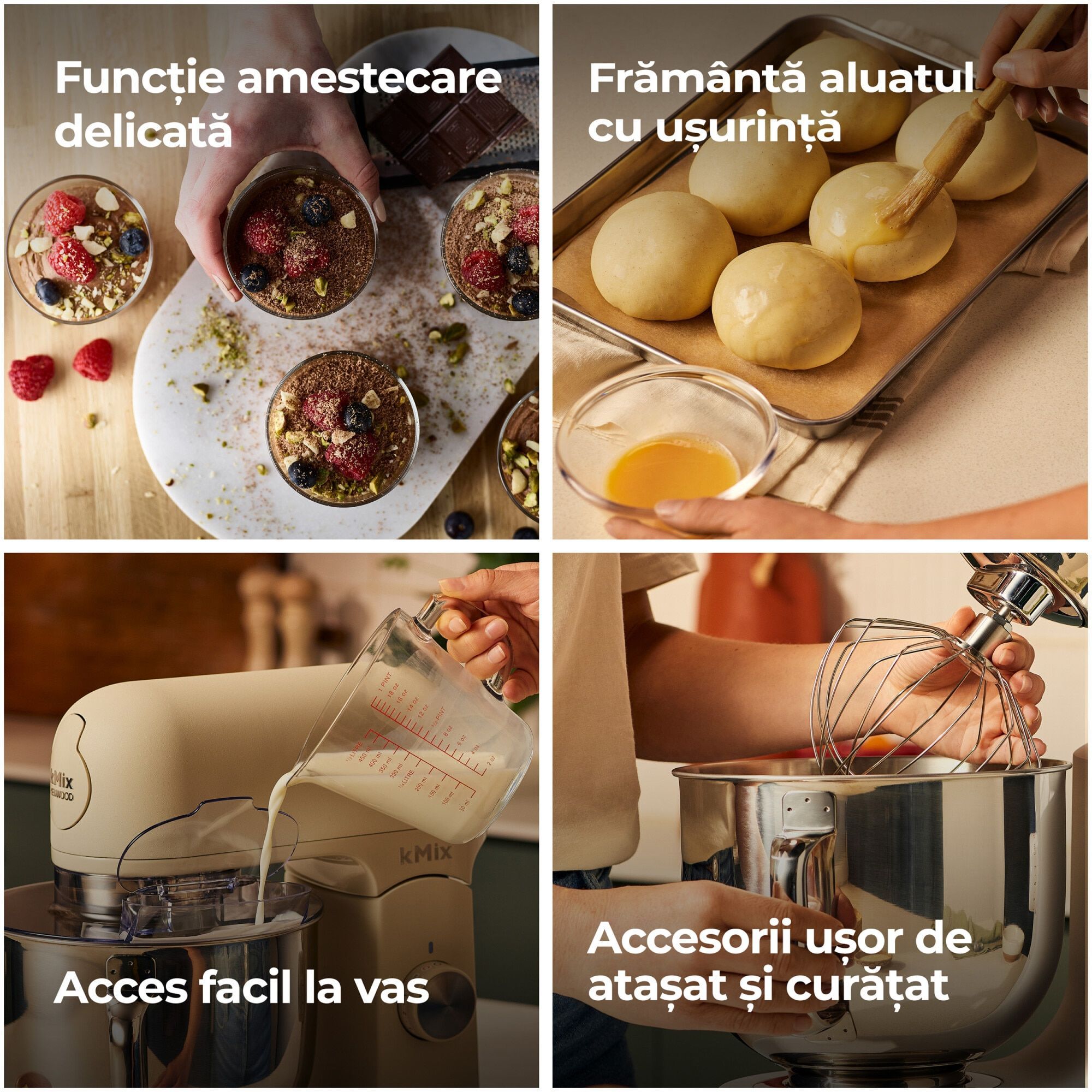 Fiți relaxați în bucătărie cu kMix. Amestecați, bateți și frământați pentru a crea prăjituri, creme, pâine, biscuiți și multe altele. Bucurați-vă de toată performanța așteptată de la Kenwood, într-o gamă de patru culori uimitoare, create pentru a ieși în evidență.