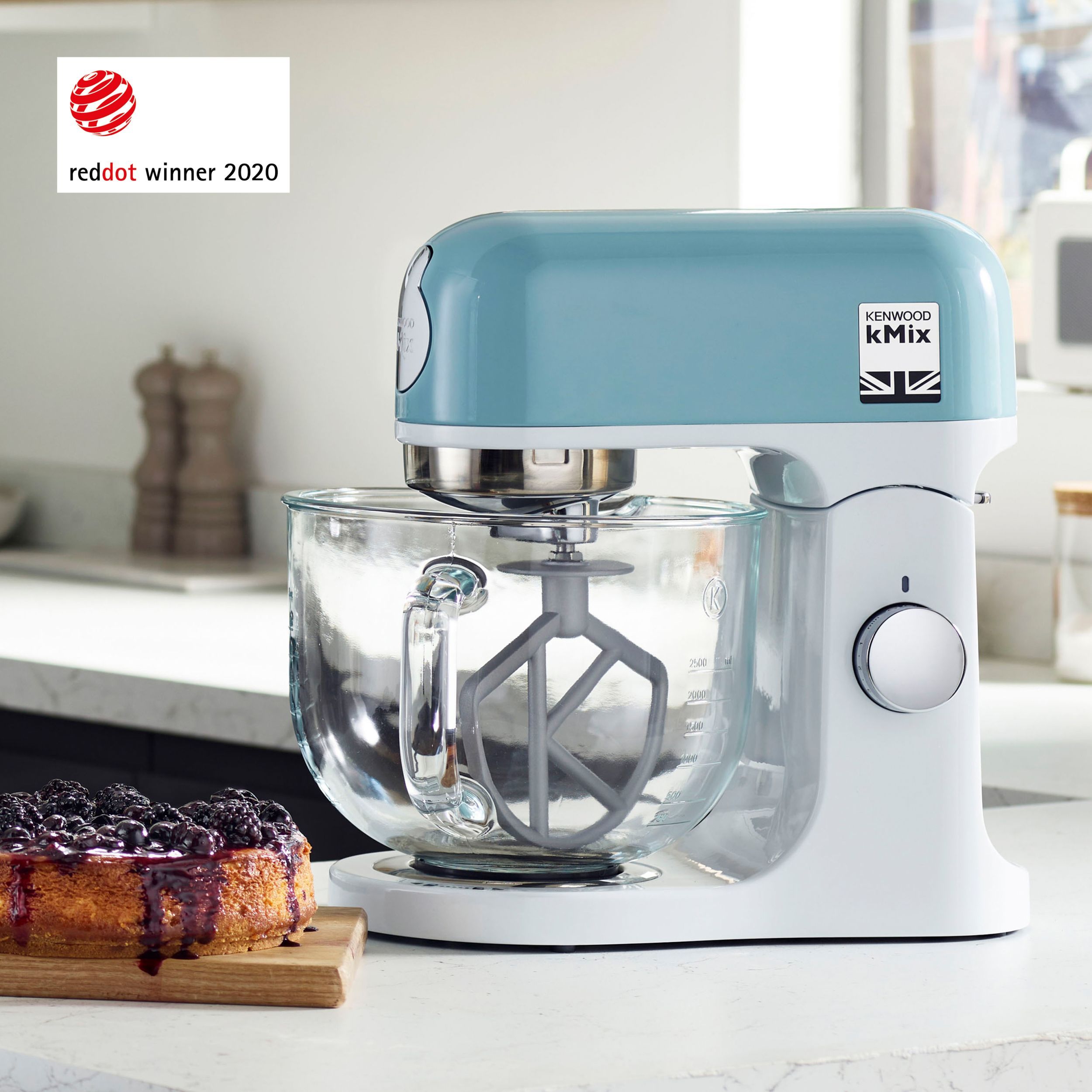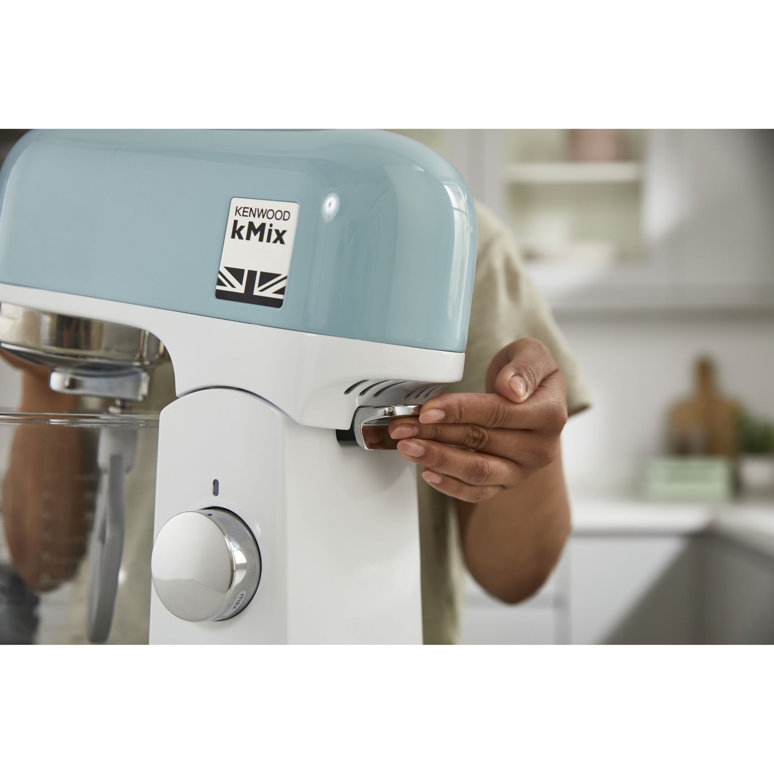 Robot de bucătărie planetar KENWOOD kMix KMX754APB - 0W20011488, 1000W (6 trepte și Turbo), Vas sticlă 5l, Set patiserie (tel 16 brațe, cârlig, paletă K), Soft Start, G11.19kg, Pastel Blue