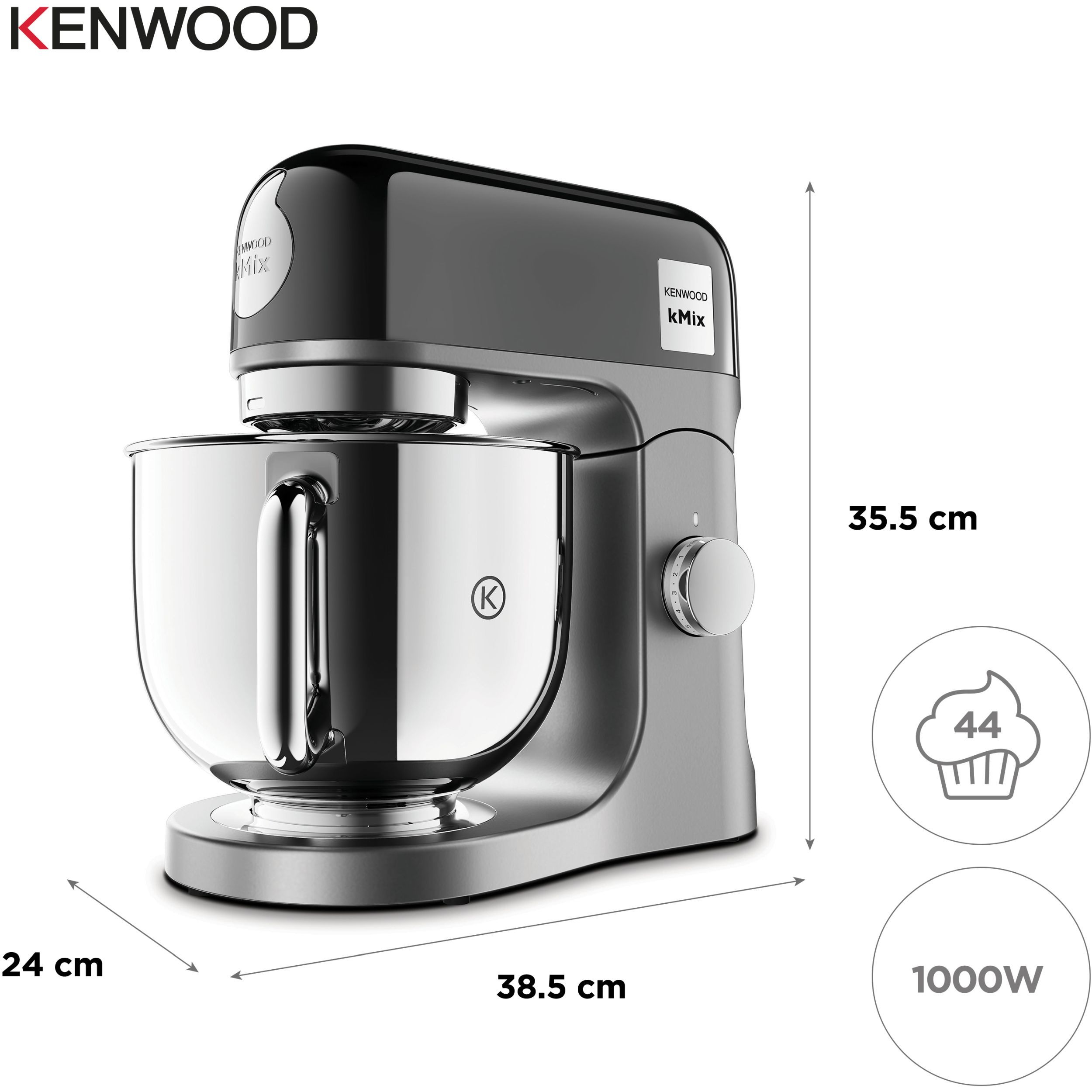 Robot de bucătărie planetar KENWOOD kMix Special Edition KMX760ABC - 0W20011396, 1000W (6 trepte și Turbo), Vas inox 5l, Set patiserie (tel 16 brațe, cârlig, paletă K), G9.3kg, Black Chrome