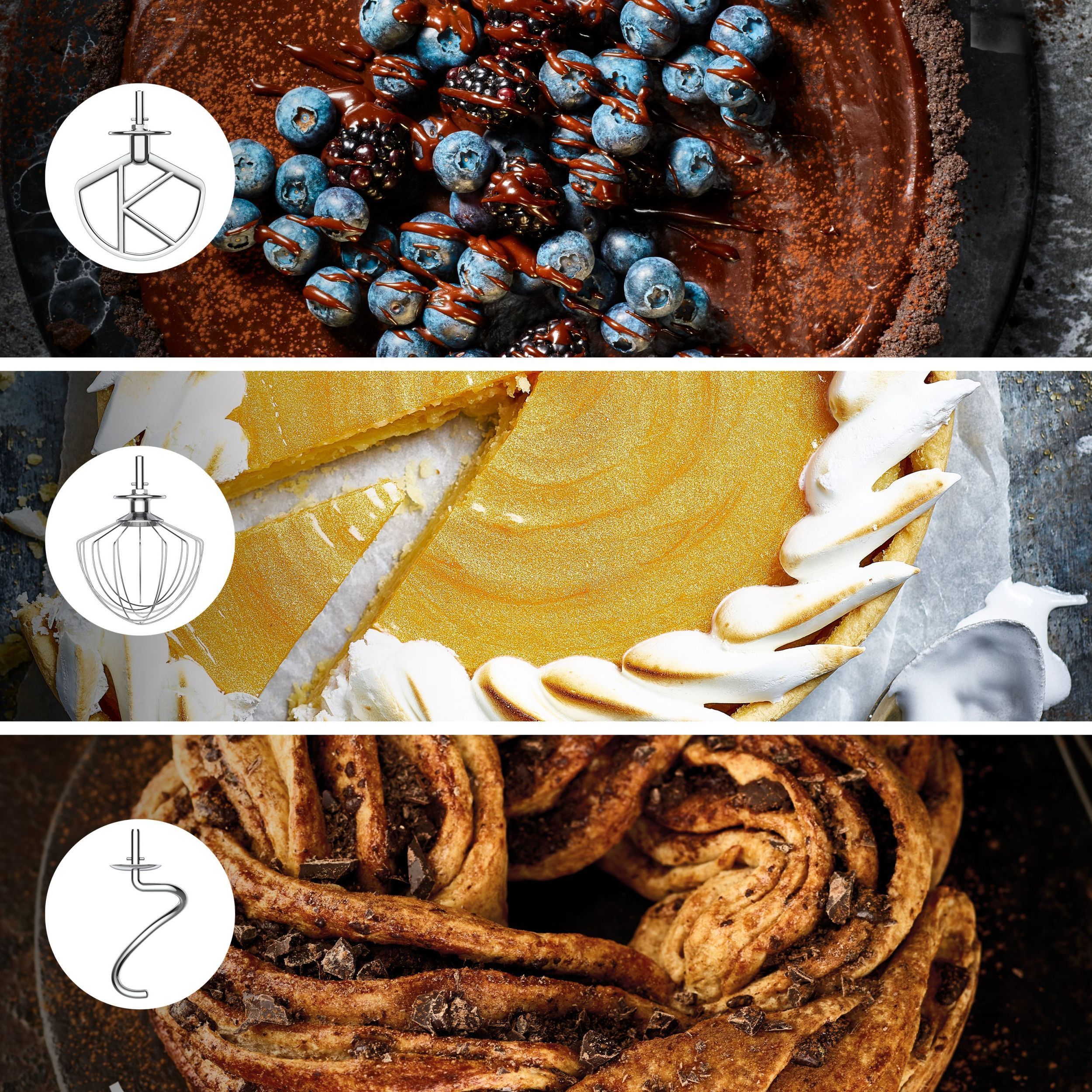 Amestecați, frământați și bateți fără griji știind că veți obține rezultate uimitoare de fiecare dată. Motorul de 1000W face față oricărei provocări, de la un aluat proaspăt pentru pâine, până la cantități mici de albușuri de ou.