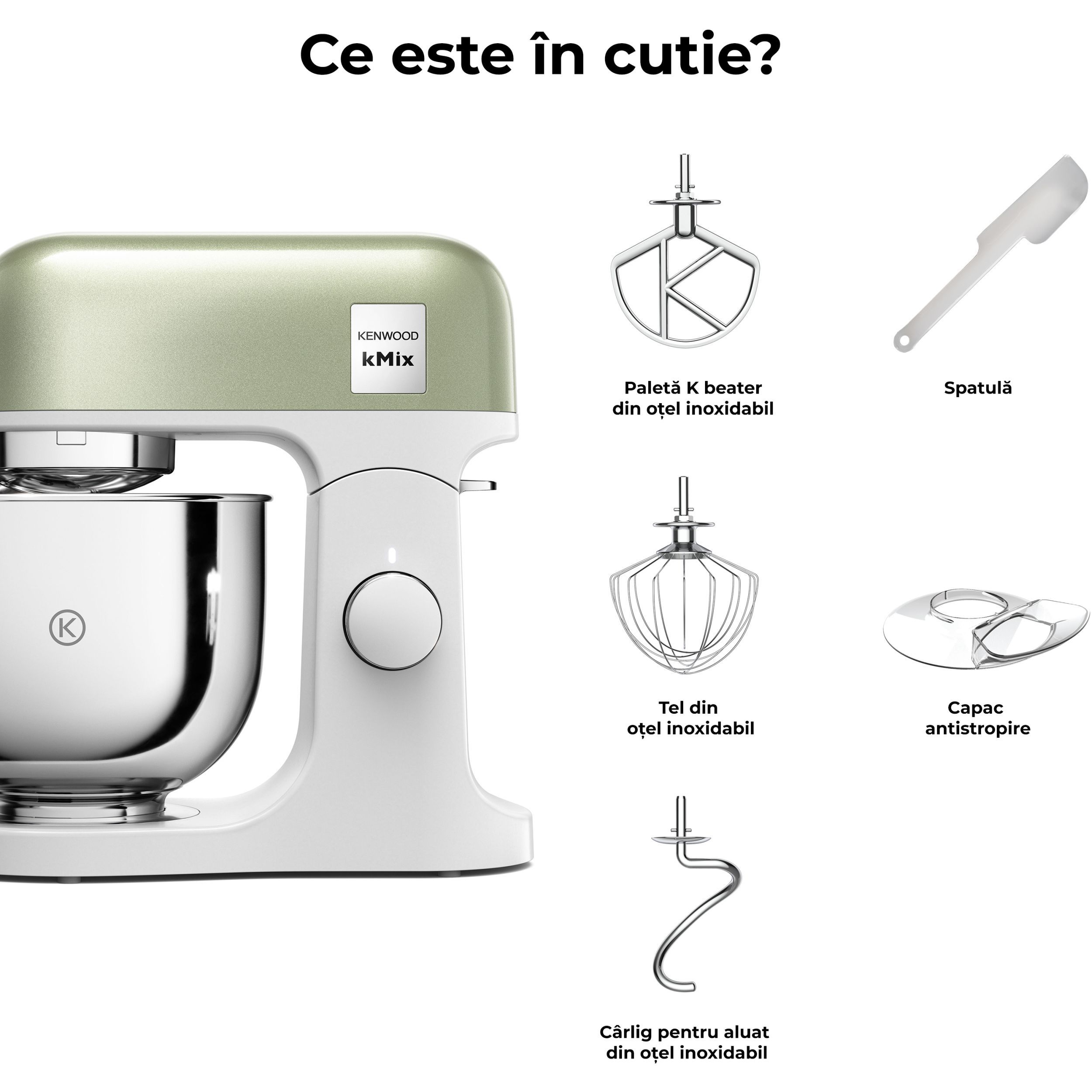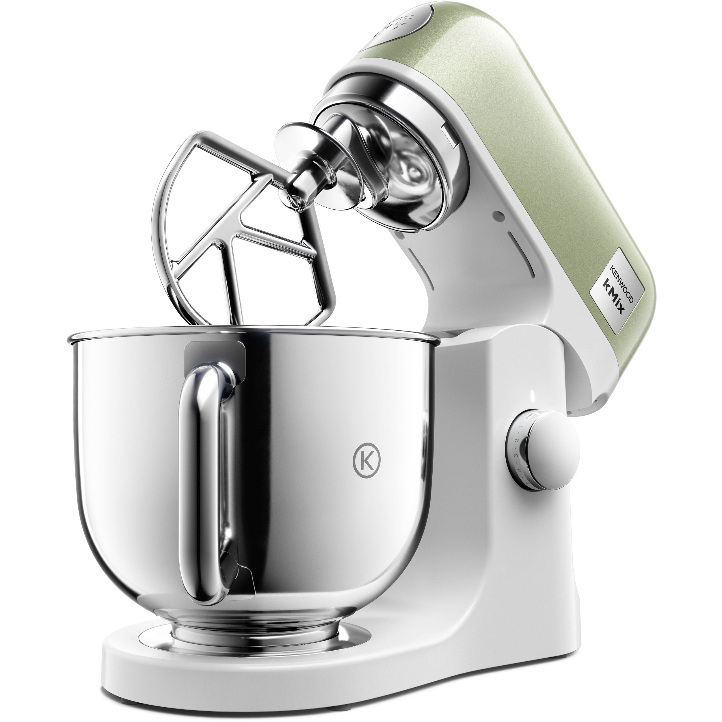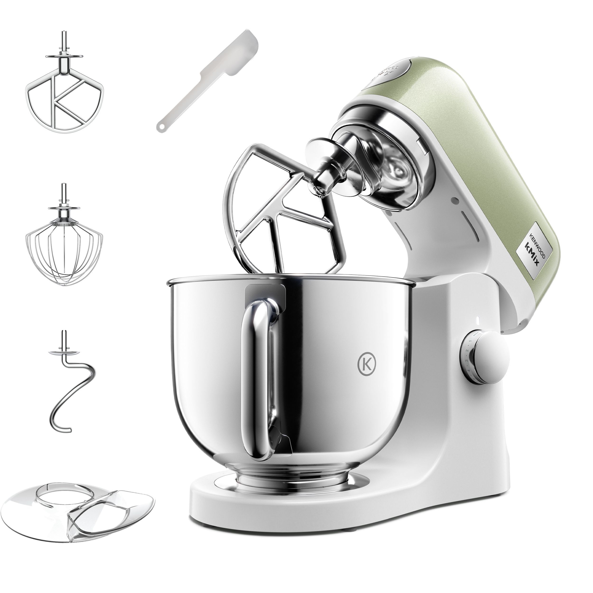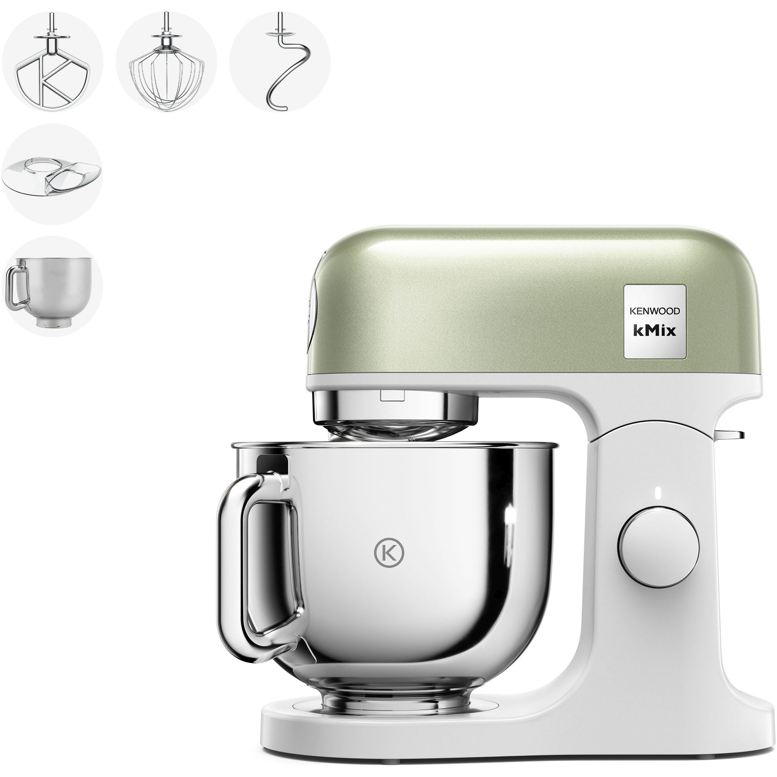 Robot de bucătărie planetar KENWOOD kMix Special Edition KMX760AGR - 0W20011442, 1000W (6 trepte și Turbo), Vas inox 5l, Set patiserie (tel 16 brațe, cârlig, paletă K), G9.3kg, Sage Green