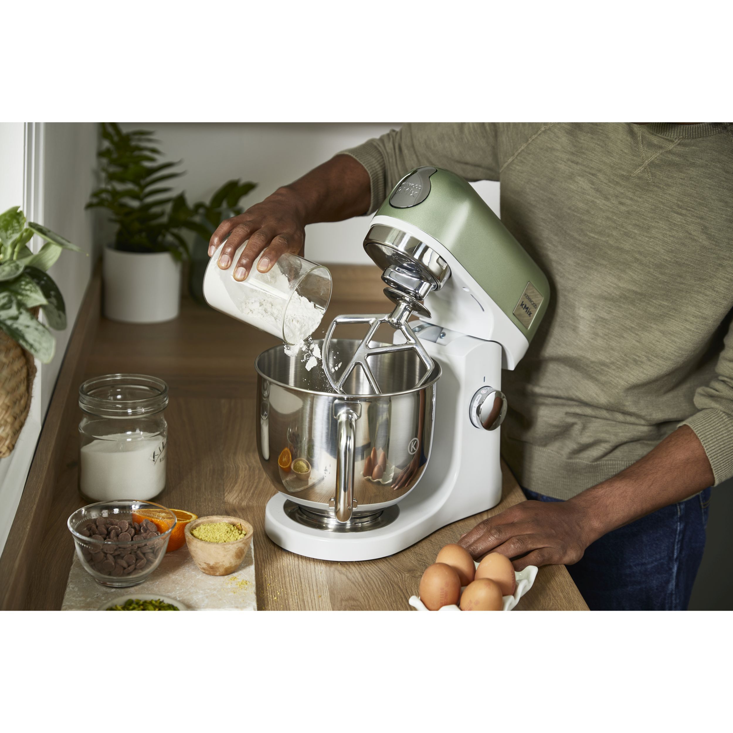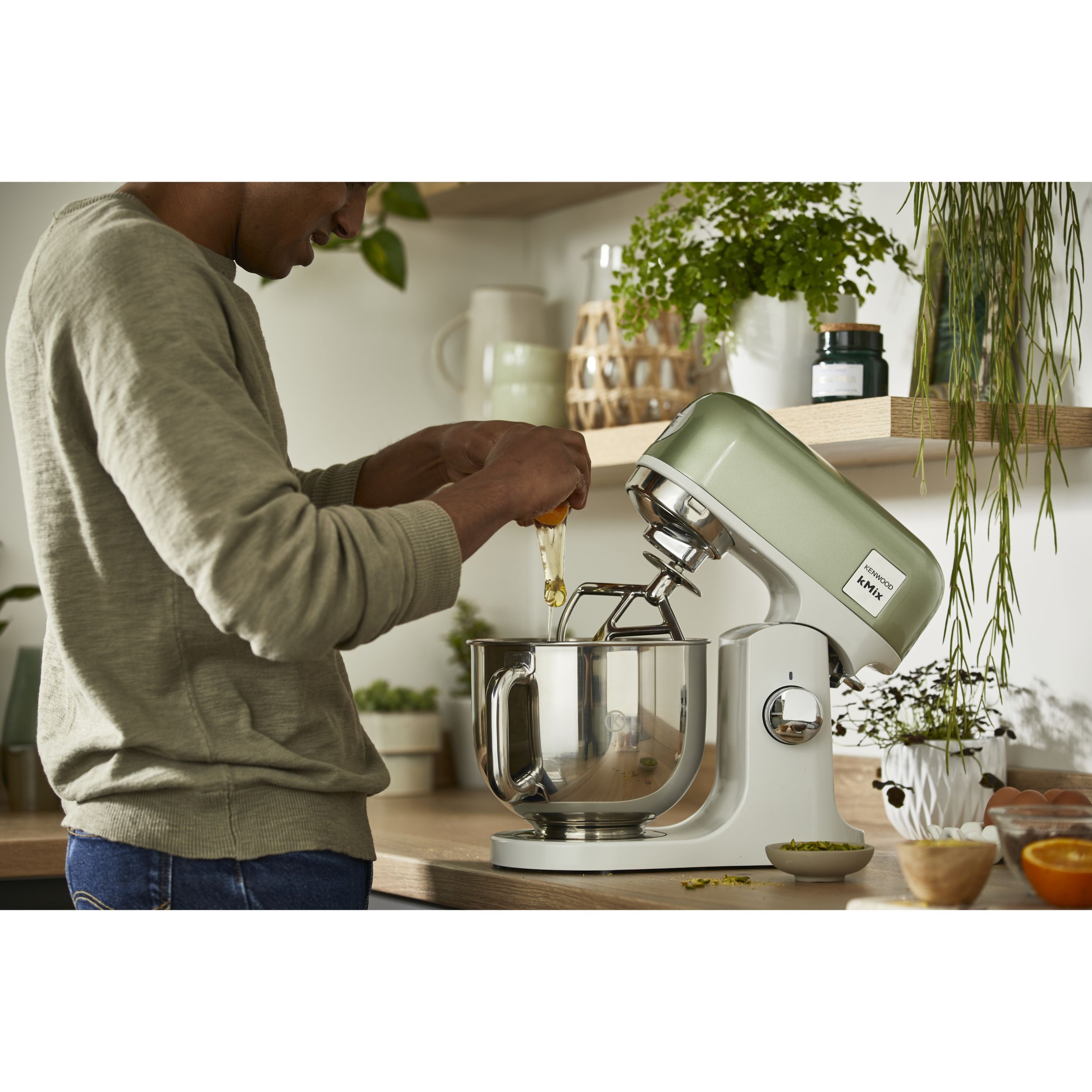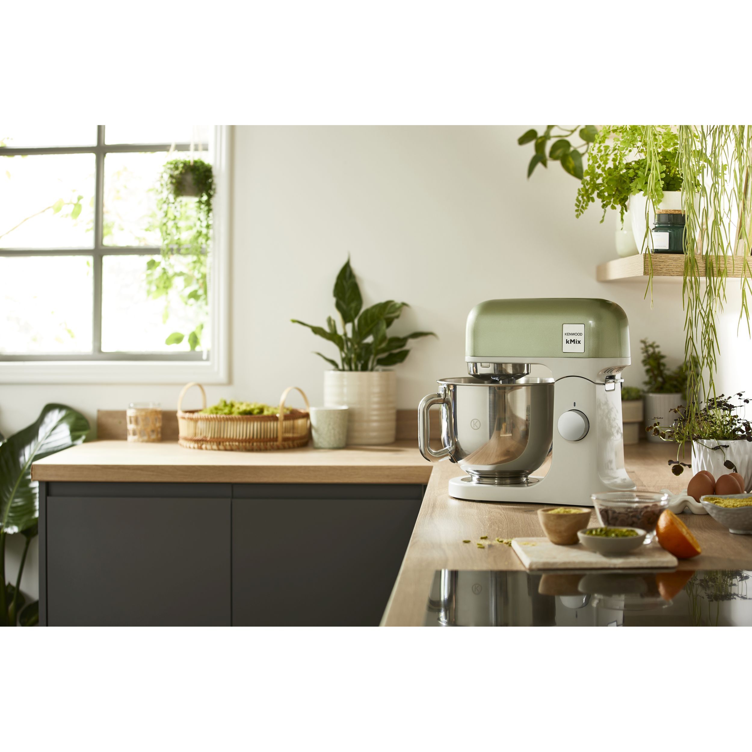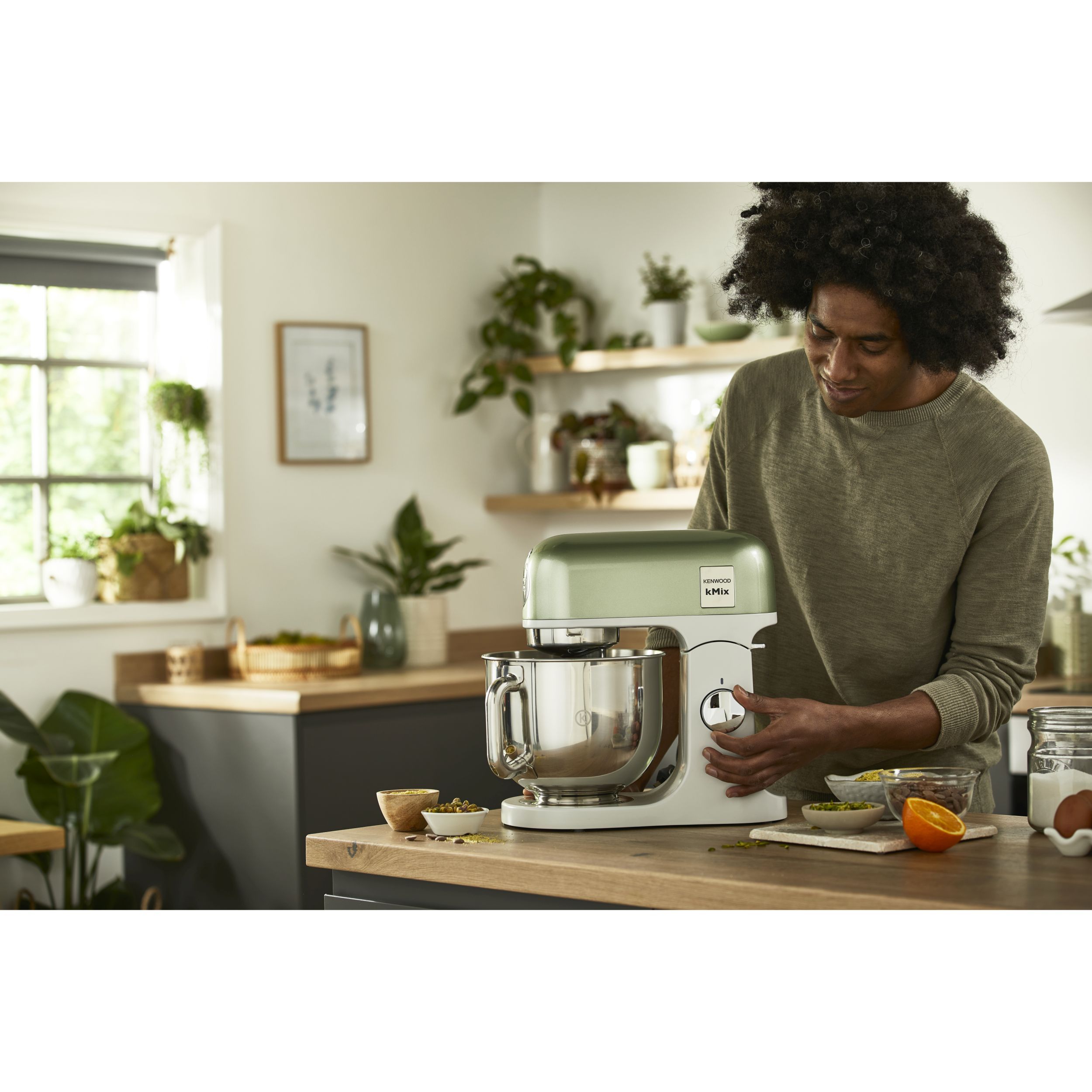 Robot de bucătărie planetar KENWOOD kMix Special Edition KMX760AGR - 0W20011442, 1000W (6 trepte și Turbo), Vas inox 5l, Set patiserie (tel 16 brațe, cârlig, paletă K), G9.3kg, Sage Green