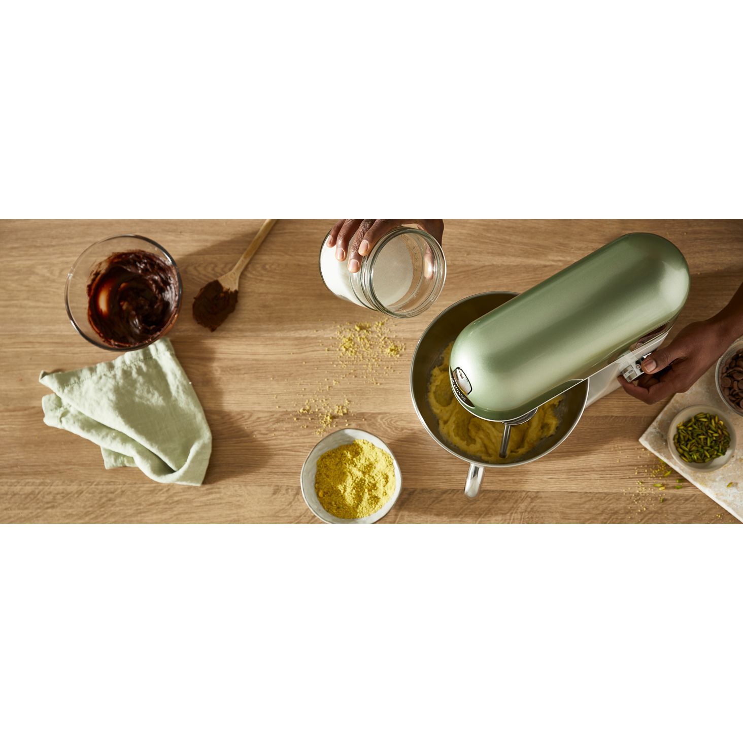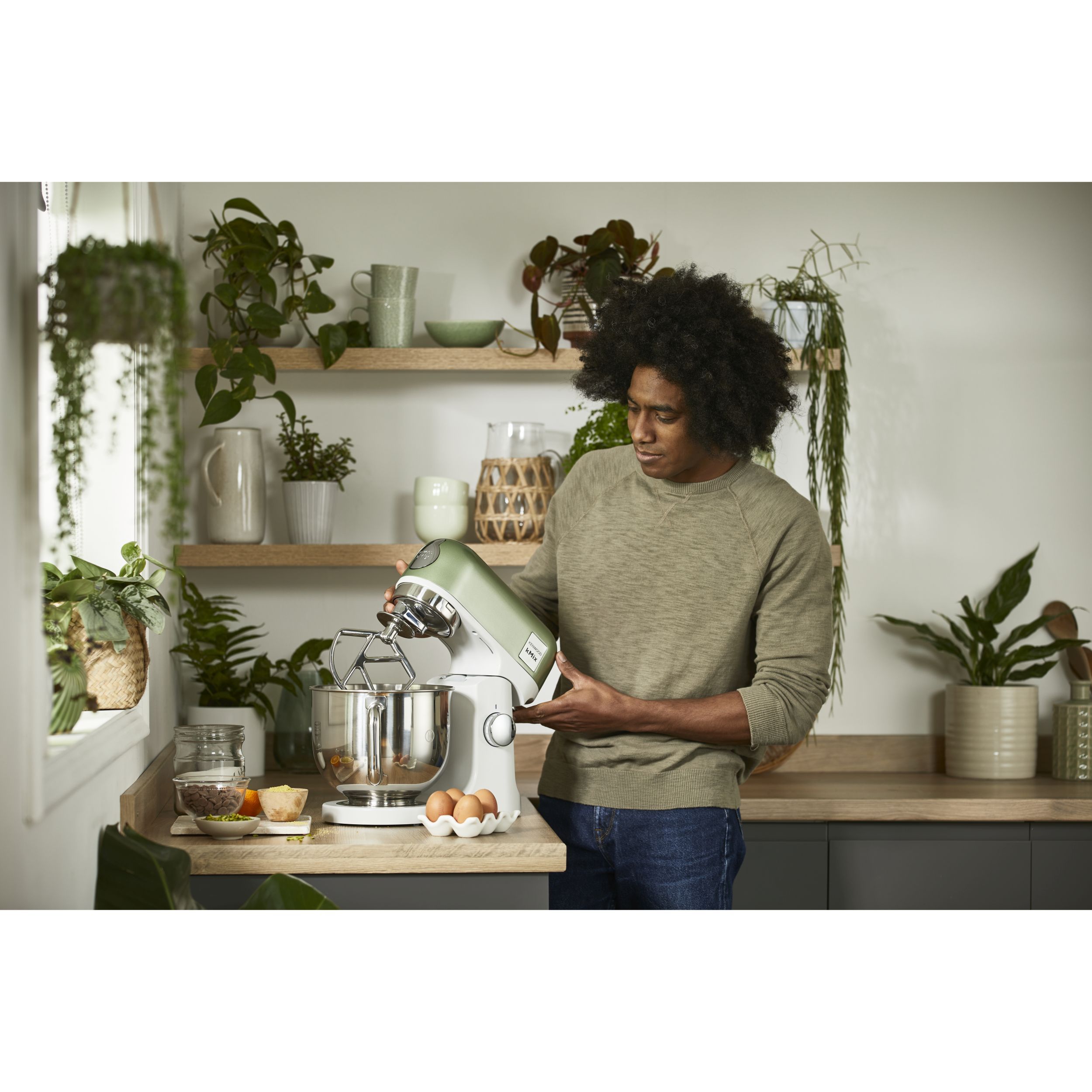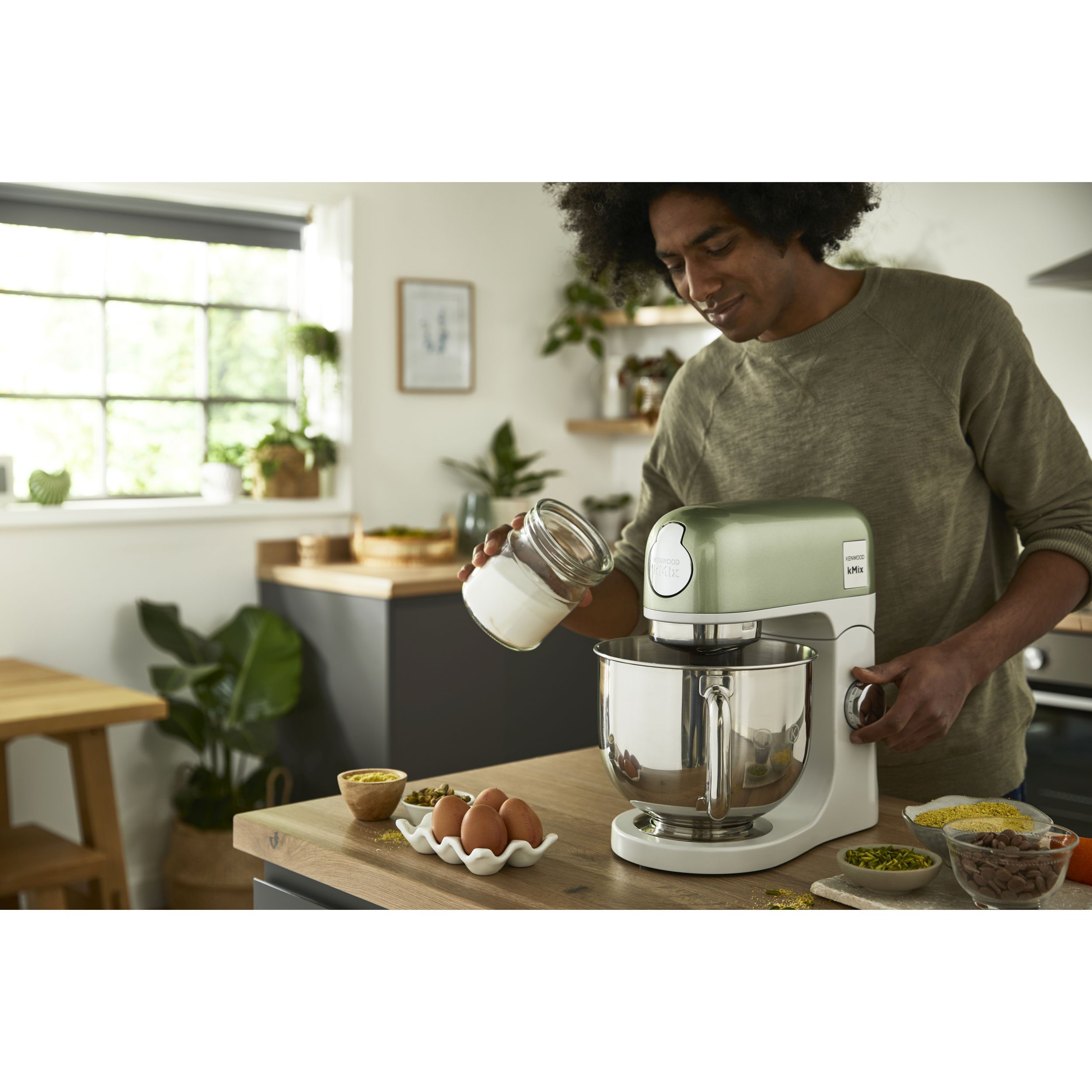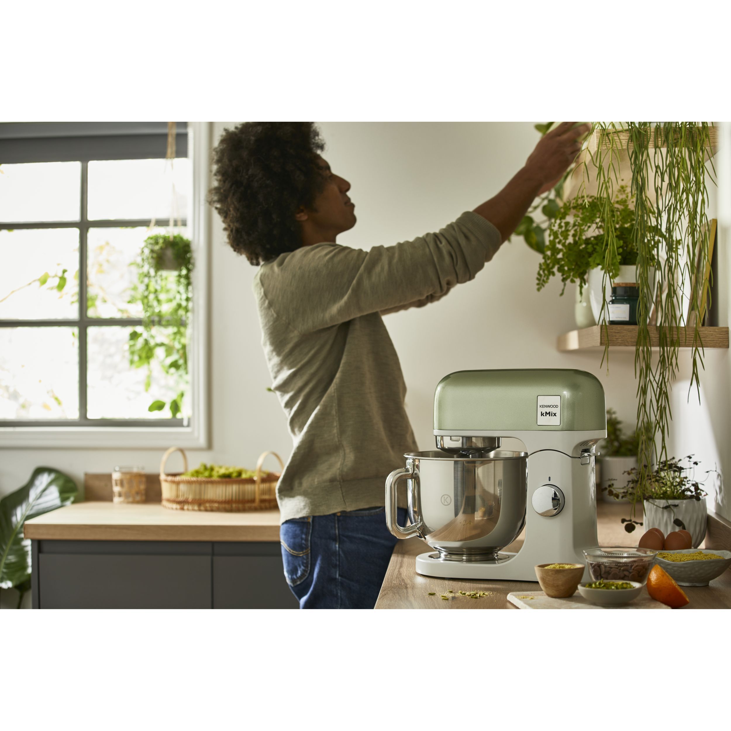 Robot de bucătărie planetar KENWOOD kMix Special Edition KMX760AGR - 0W20011442, 1000W (6 trepte și Turbo), Vas inox 5l, Set patiserie (tel 16 brațe, cârlig, paletă K), G9.3kg, Sage Green