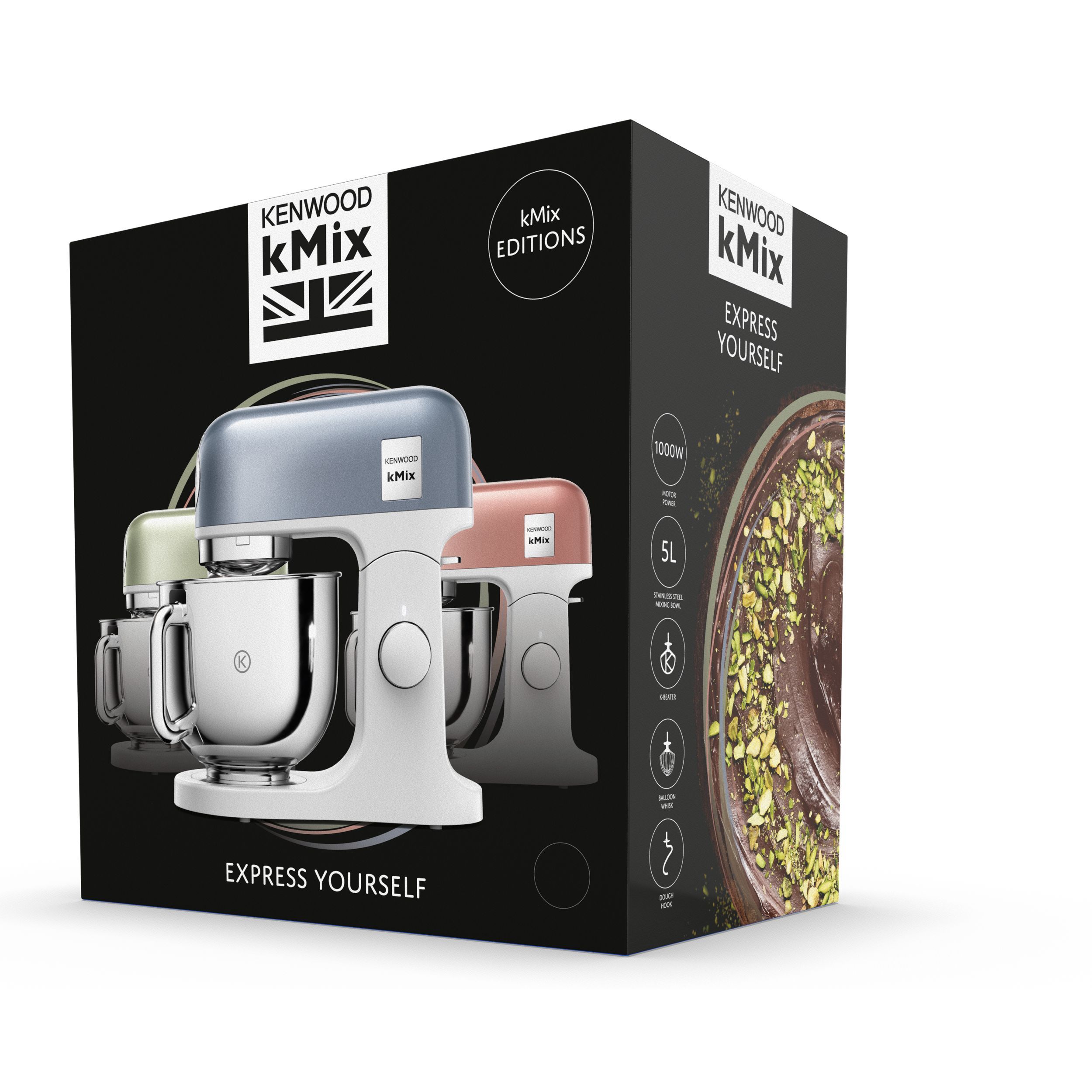 Robot de bucătărie planetar KENWOOD kMix Special Edition KMX760ACH - 0W20011397, 1000W (6 trepte și Turbo), Vas inox 5l, Set patiserie (tel 16 brațe, cârlig, paletă K), G9.3kg, Chrome