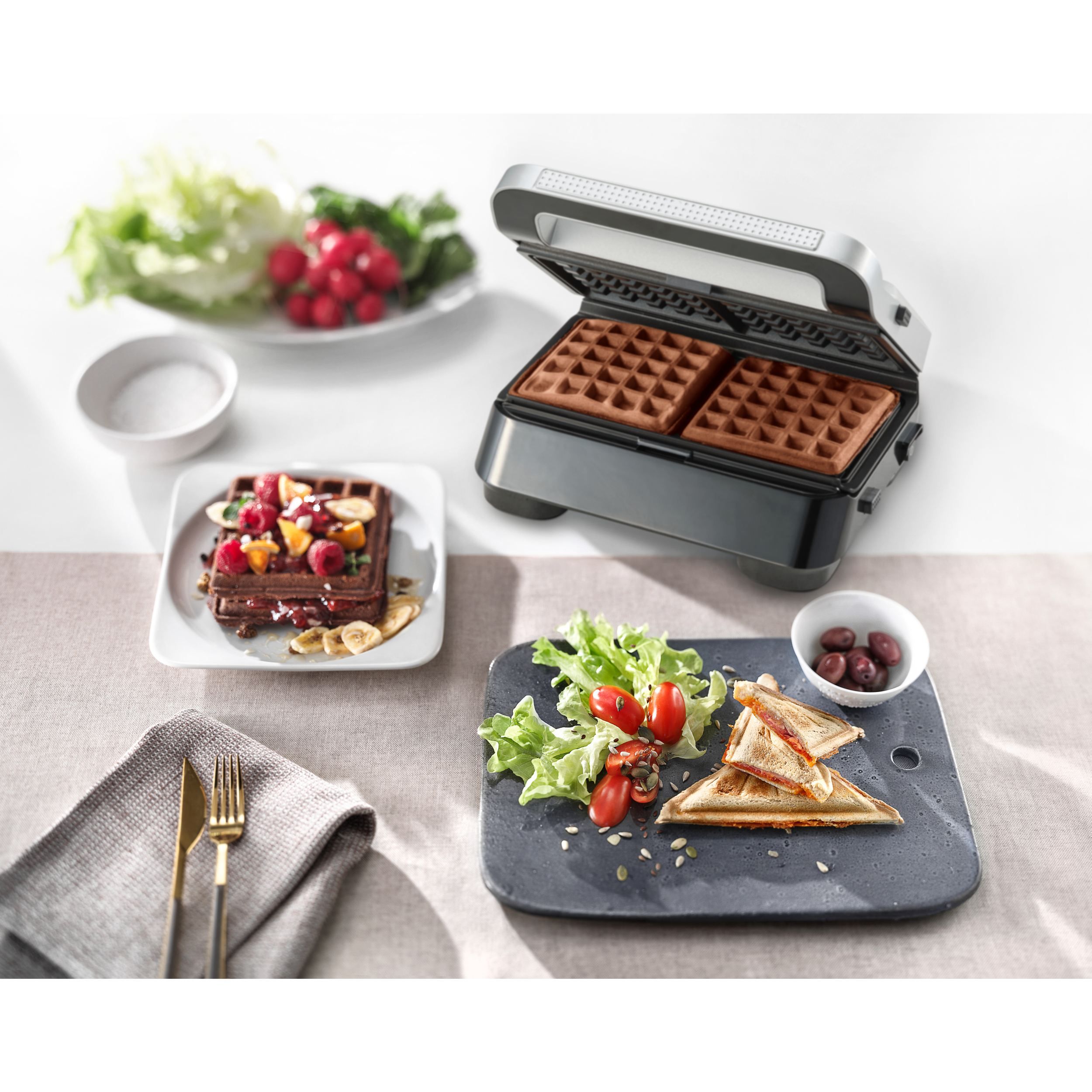 Plăcile pentru sandvișuri sunt proiectate pentru a sigila brânza topită și alte ingrediente în pâinea prăjită, datorită formei sale emblematice speciale de sandviș.