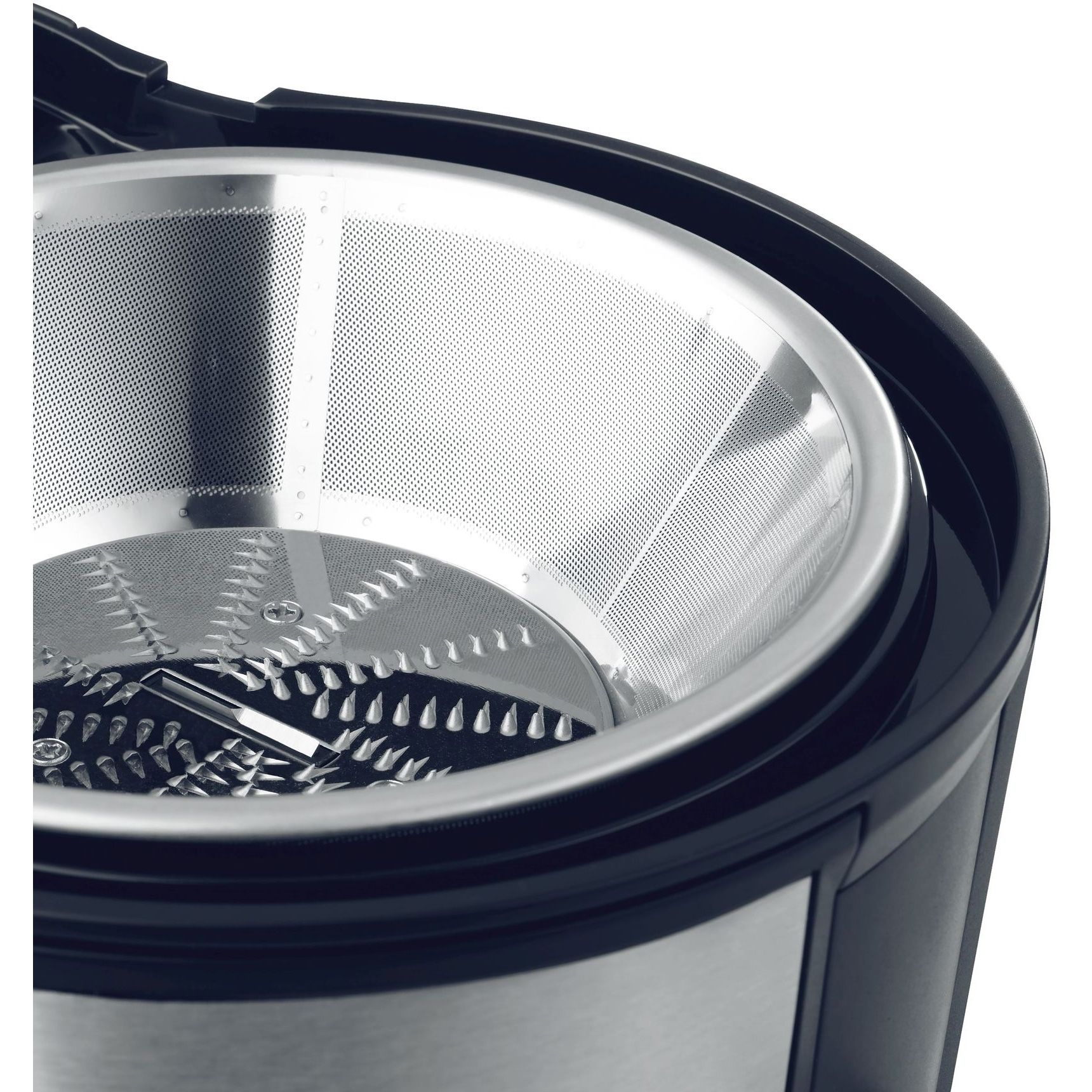Confort. Conul de scurgere cu funcţie DripStop previne picurarea sucului şi contribuie la menţinerea curăţeniei pe blatul de bucătărie după stoarcerea fructelor şi legumelor. Recipient mare pentru reziduuri, detaşabil, cu o capacitate de 2 litri. Carcasă şi con de scurgere din inox. 2 viteze selectabile pentru fructe tari şi moi. Eliminarea automată a pulpei reziduale. Depozitare ușoară: compartiment pentru stocare cablu.