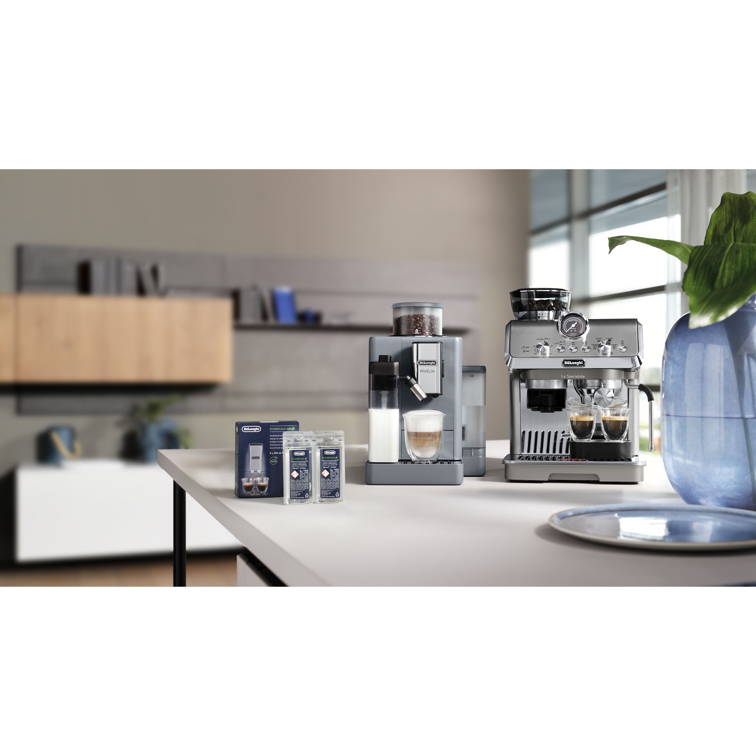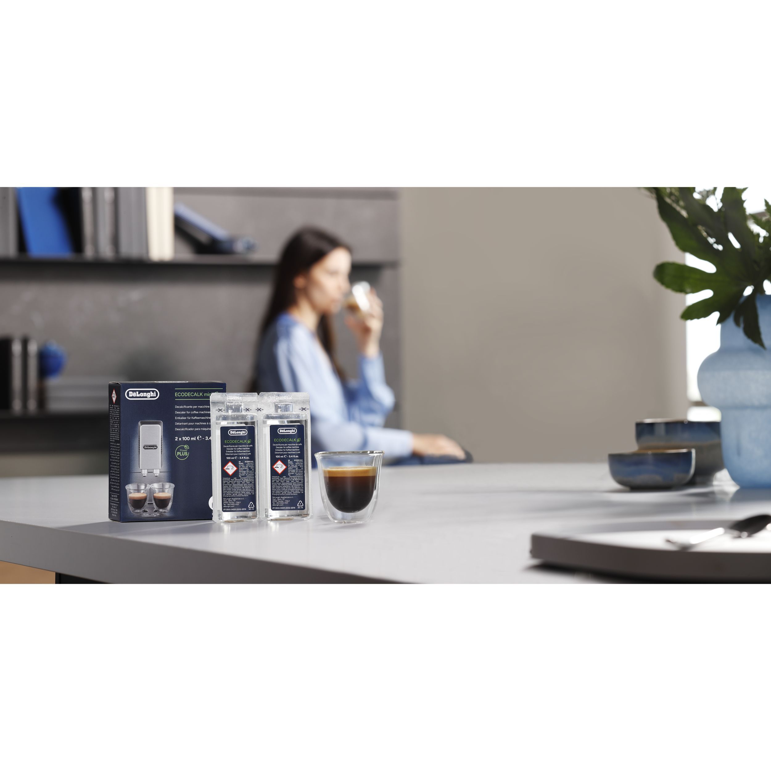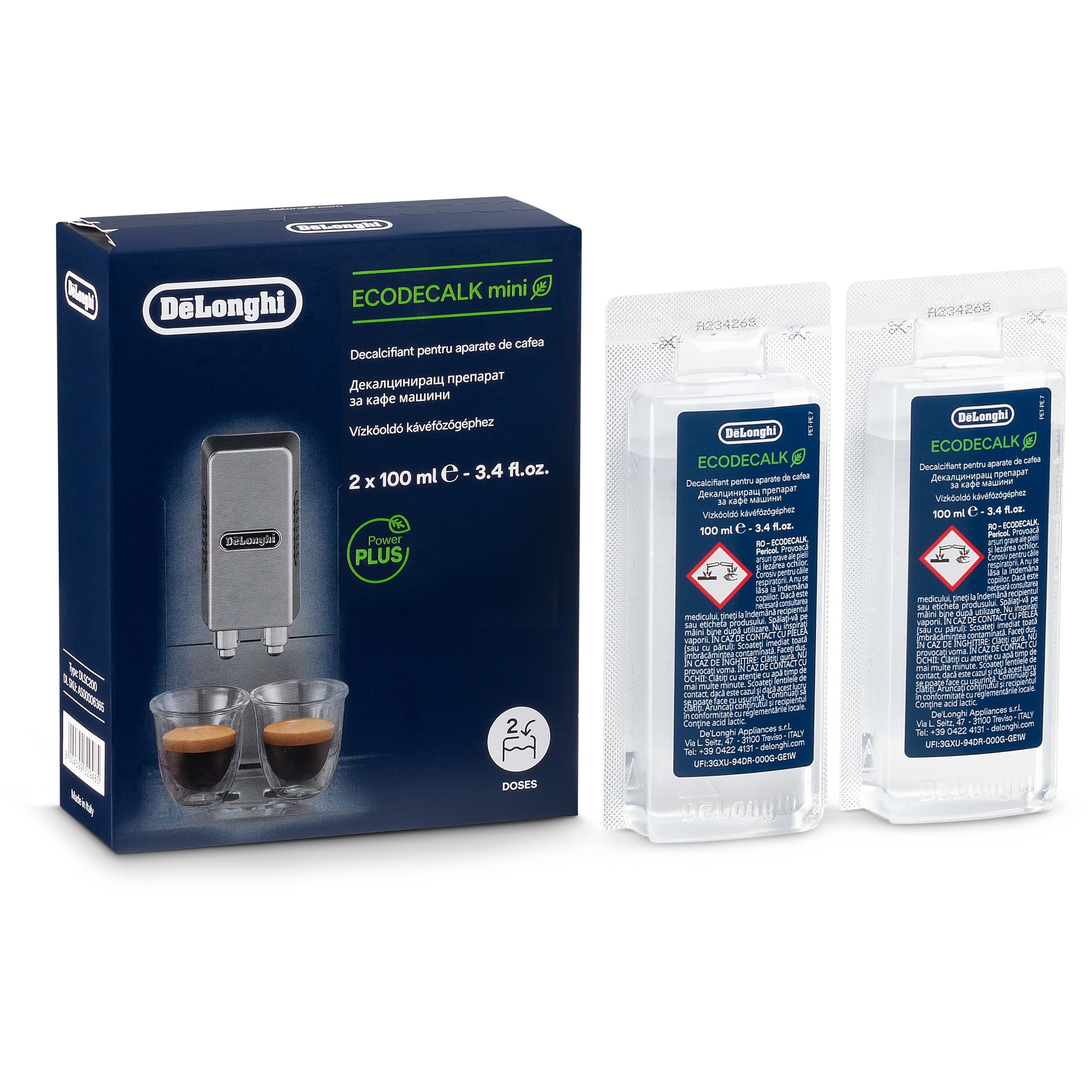 EcoDecalk este decalcifiantul recomandat de De’Longhi pentru toate espressoarele sale. Formula sa este perfect echilibrată, fiind concepută pentru a fi mai puternică împotriva depunerilor de calcar și mai delicată cu espressoarele, comparativ cu decalcifianții tradiționali pe bază de acid citric. Acest decalcifiant ecologic utilizează acid lactic natural din plante, care nu poluează mediul înconjurător.