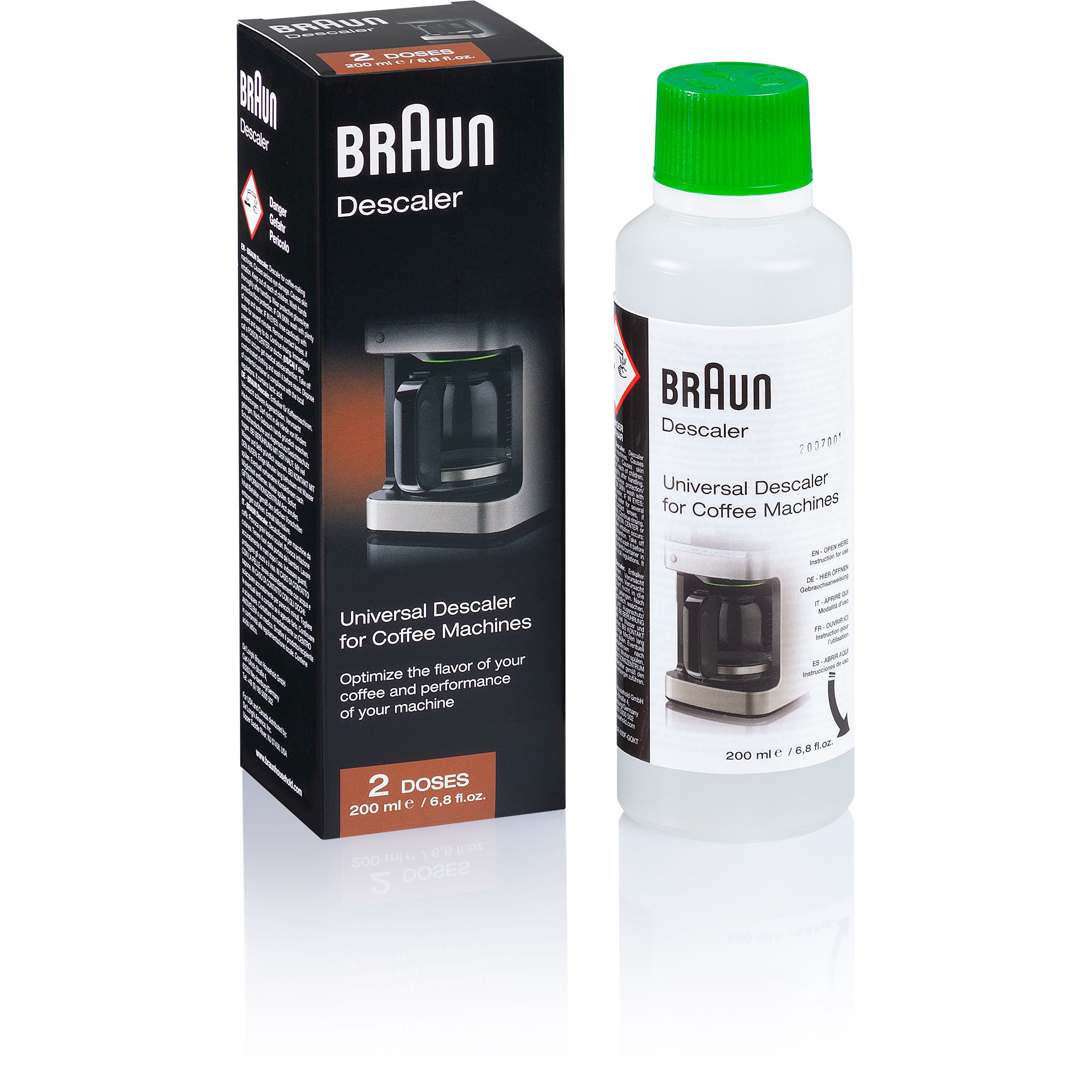 Detartrant BRAUN BRSC013 - AX13210013, Capacitate 200ml, 2 cicluri detartrare, Elimină reziduurile de calcar, Extinde durata de viață, Îmbunătățește gustul cafelei