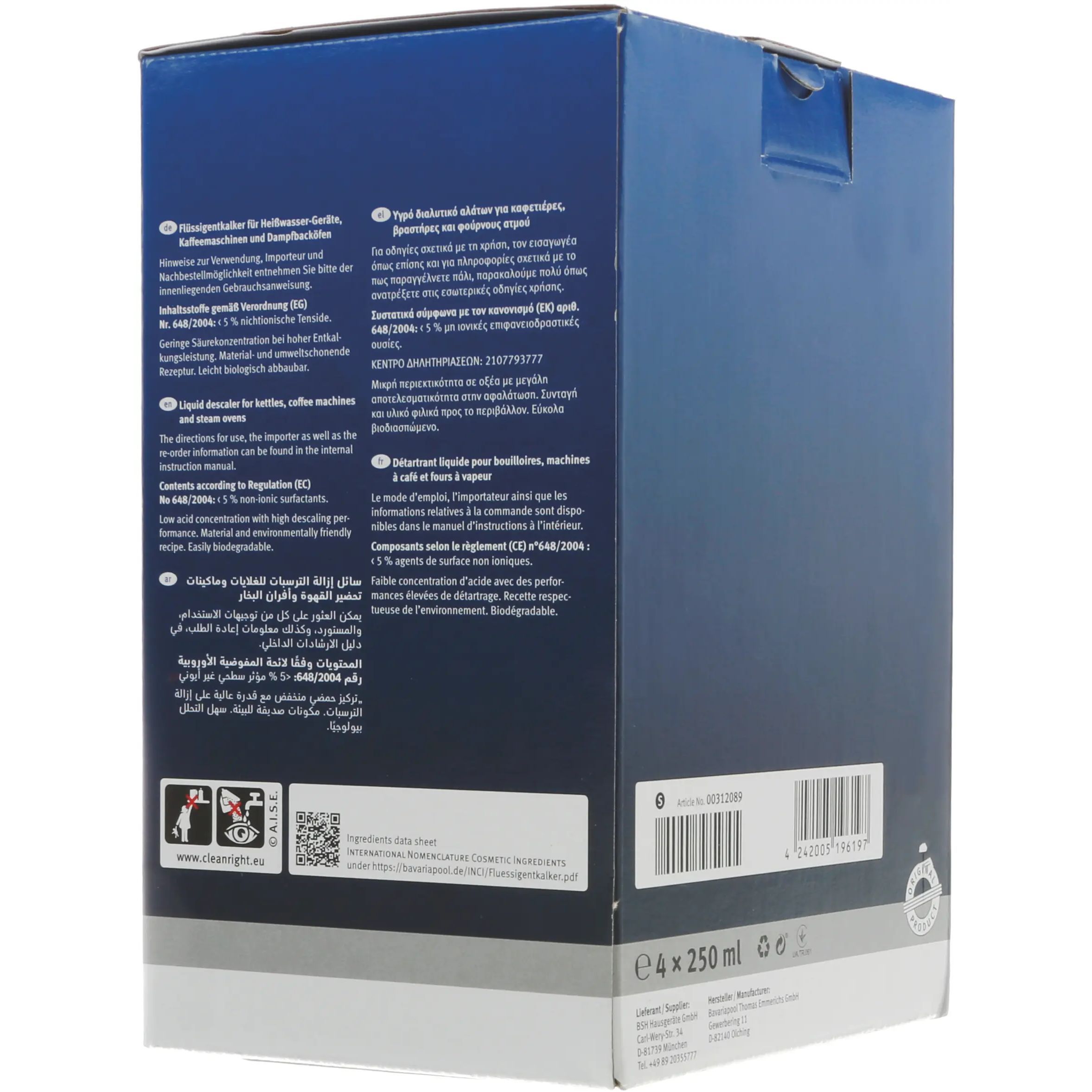 Lichid de decalcifiere pentru fierbătoare de apă, aparate de cafea și cuptoare cu aburi