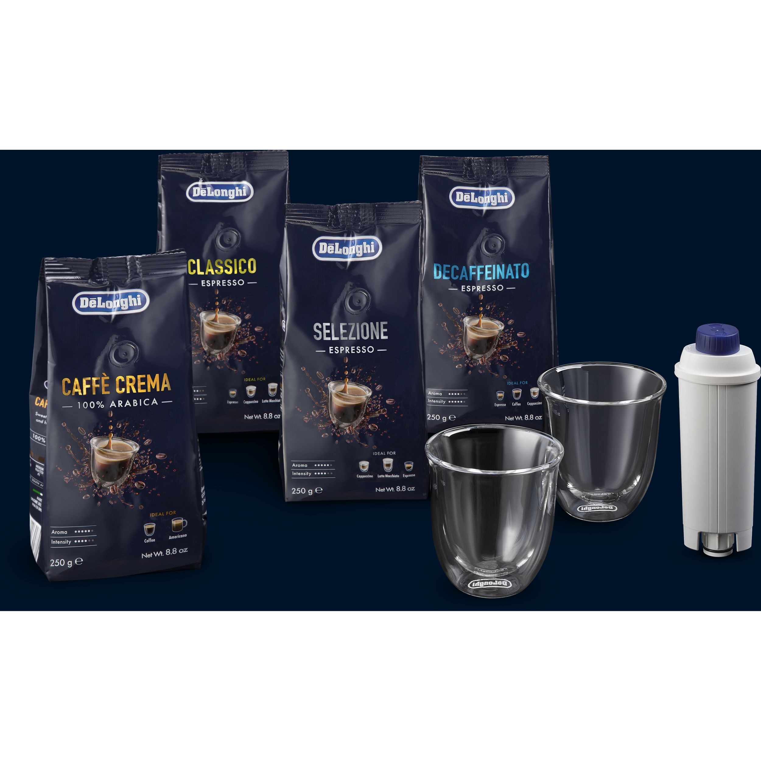 Pentru rezultate optime, utilizați doar filtrul de apă original DeLonghi. Ideal pentru toate cespressoarele De'Longhi, ajută la prelungirea duratei de viață a aparatului dvs. și asigură un gust autentic al cafelei.