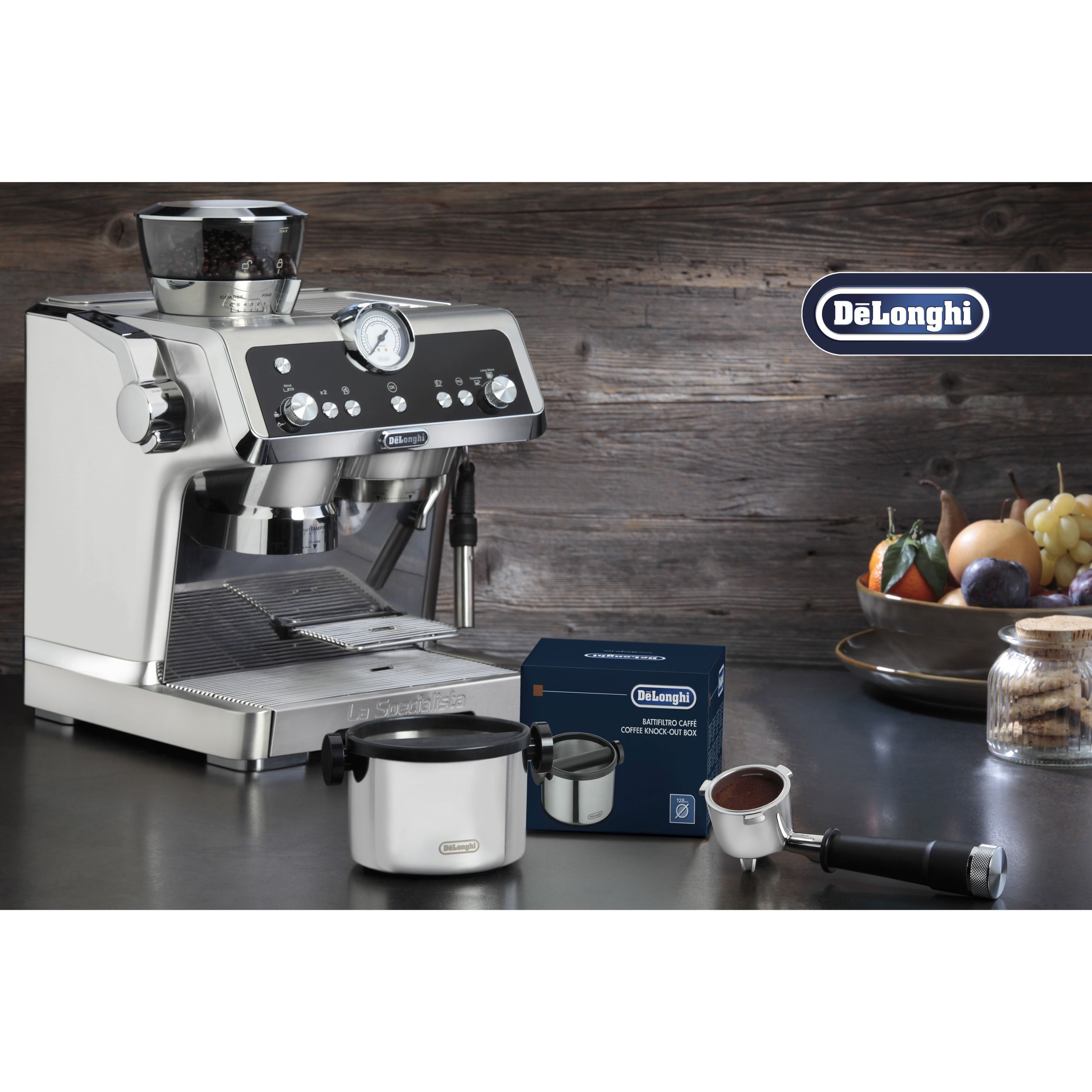 Eliminați cu ușurință cafeaua măcinată folosită cu ajutorul knock box-ului pentru zaț De'Longhi.