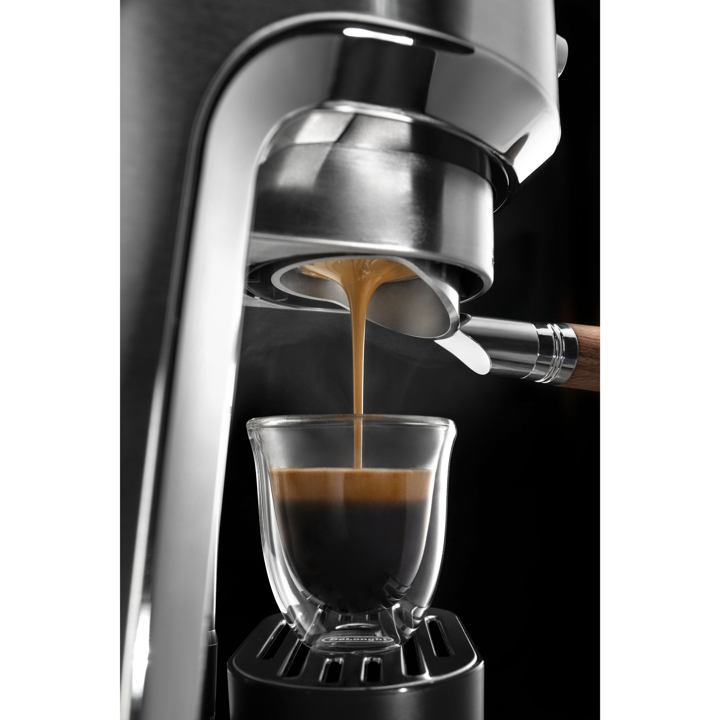 • Portafiltrul de 51mm cu un coș dublu oferă versatilitate și precizie. Folosiți-l cu tampere De'Longhi pentru o configurație espresso ideală.