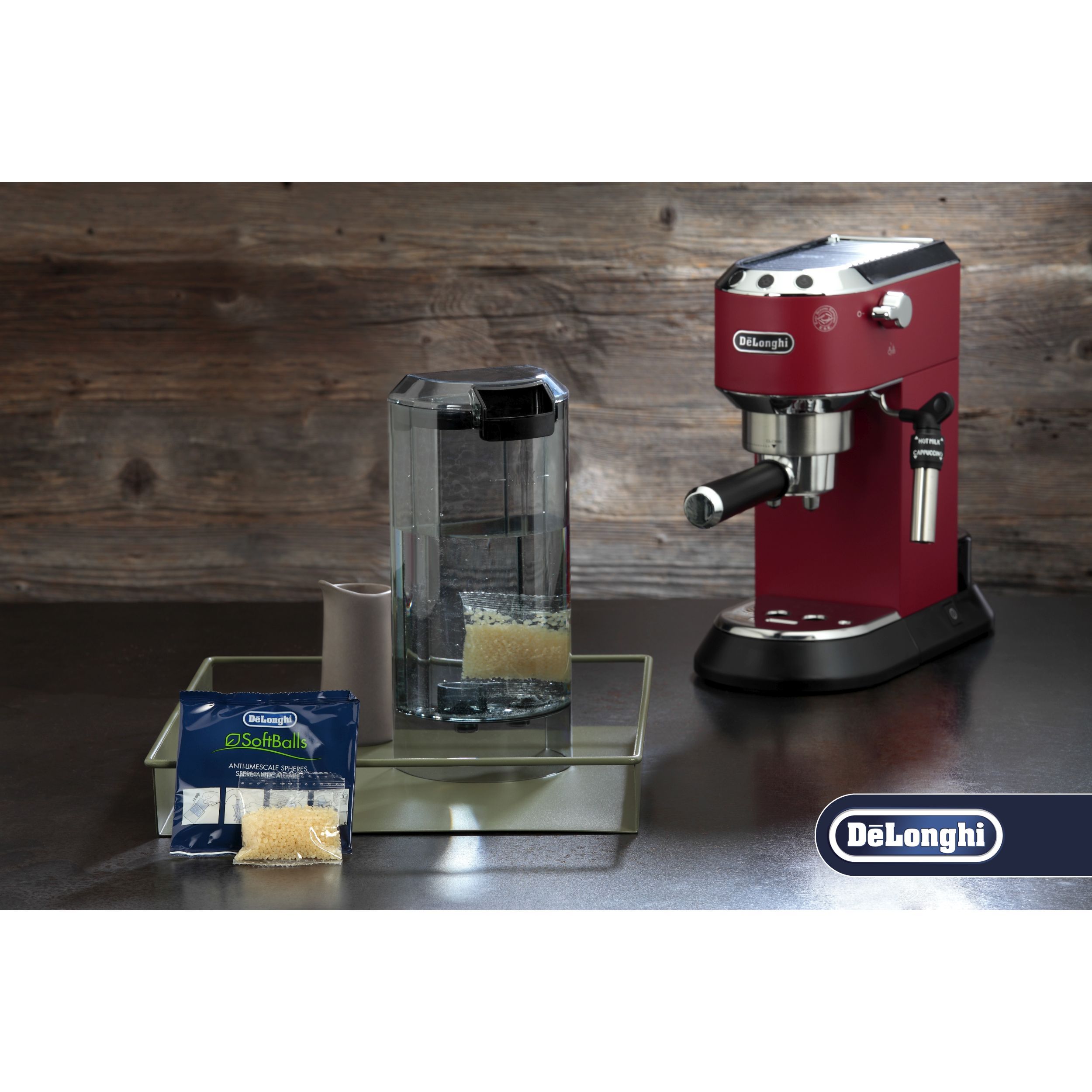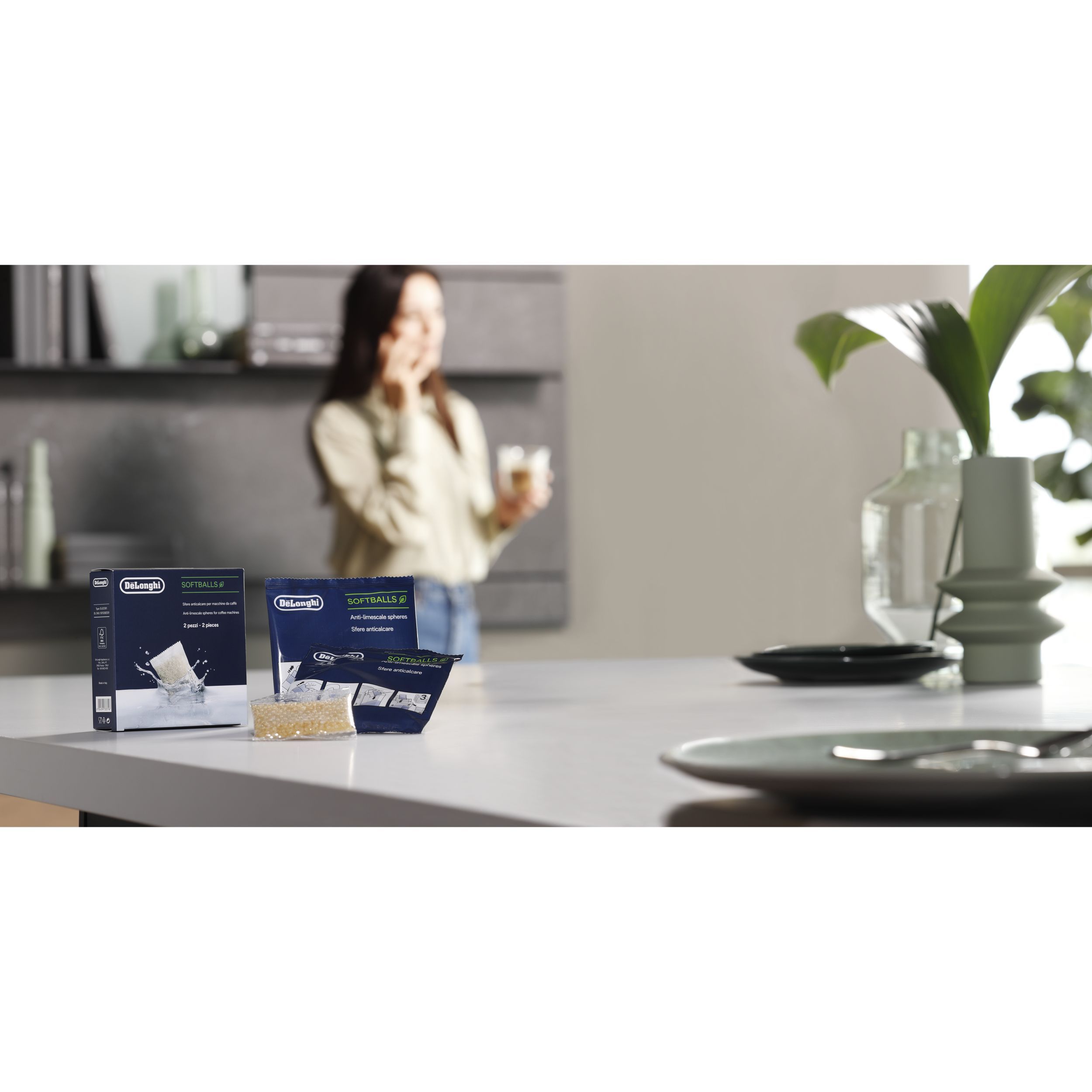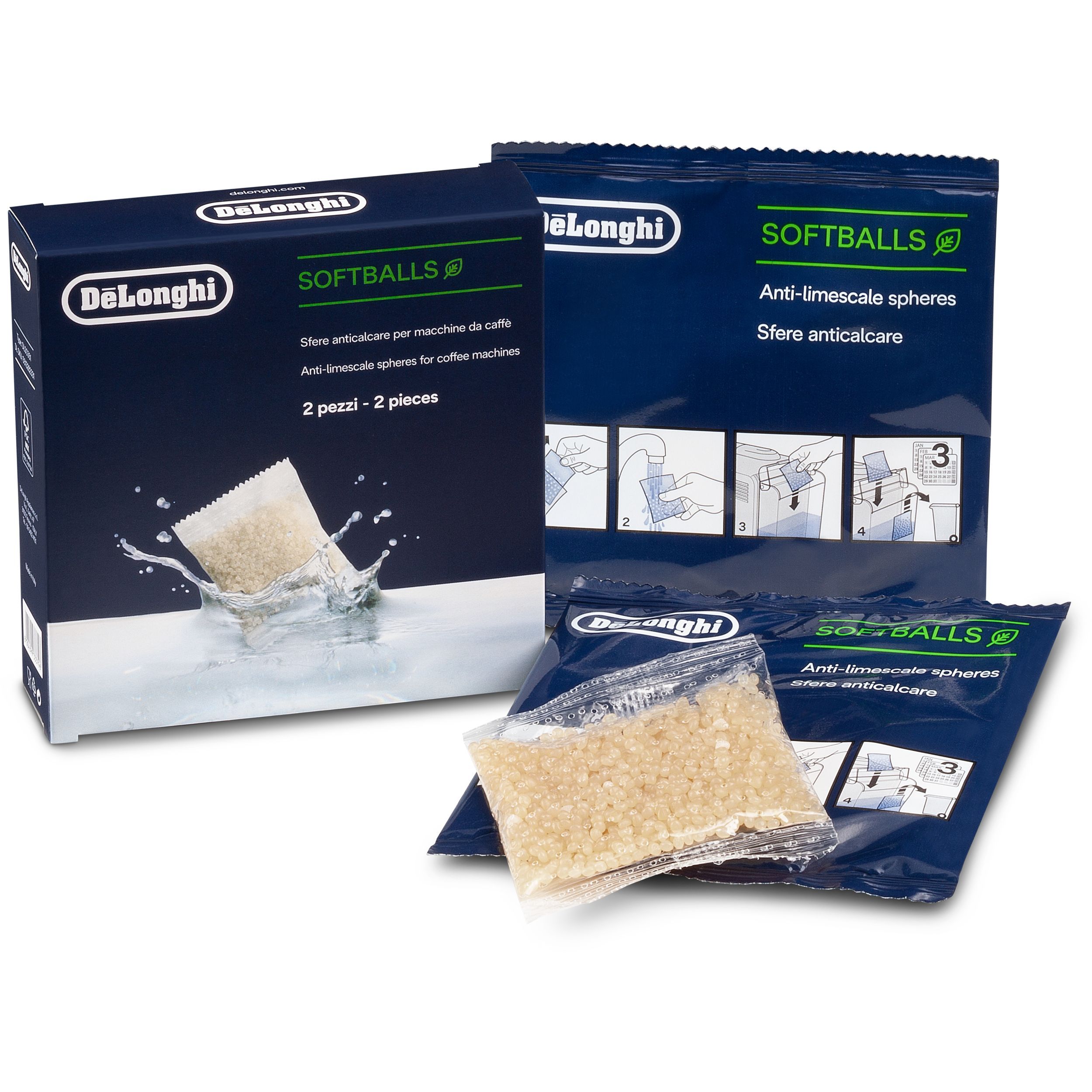 Sferele anticalcar SoftBalls de la De'Longhi reprezintă o modalitate inovatoare de a preveni acumularea de depuneri de calcar în cafetierele cu rezervoare de apă. Sferele anticalcar reduc duritatea apei fără a modifica conținutul ionilor de calciu și magneziu, asigurând o cafea cremoasă și aromată și prelungind durata de viață a cafetierei. Fiecare doză acționează timp de 3 luni, iar sferele SoftBalls sunt complet reciclabile. Cutia conține 2 pachete cu sfere anticalcar.